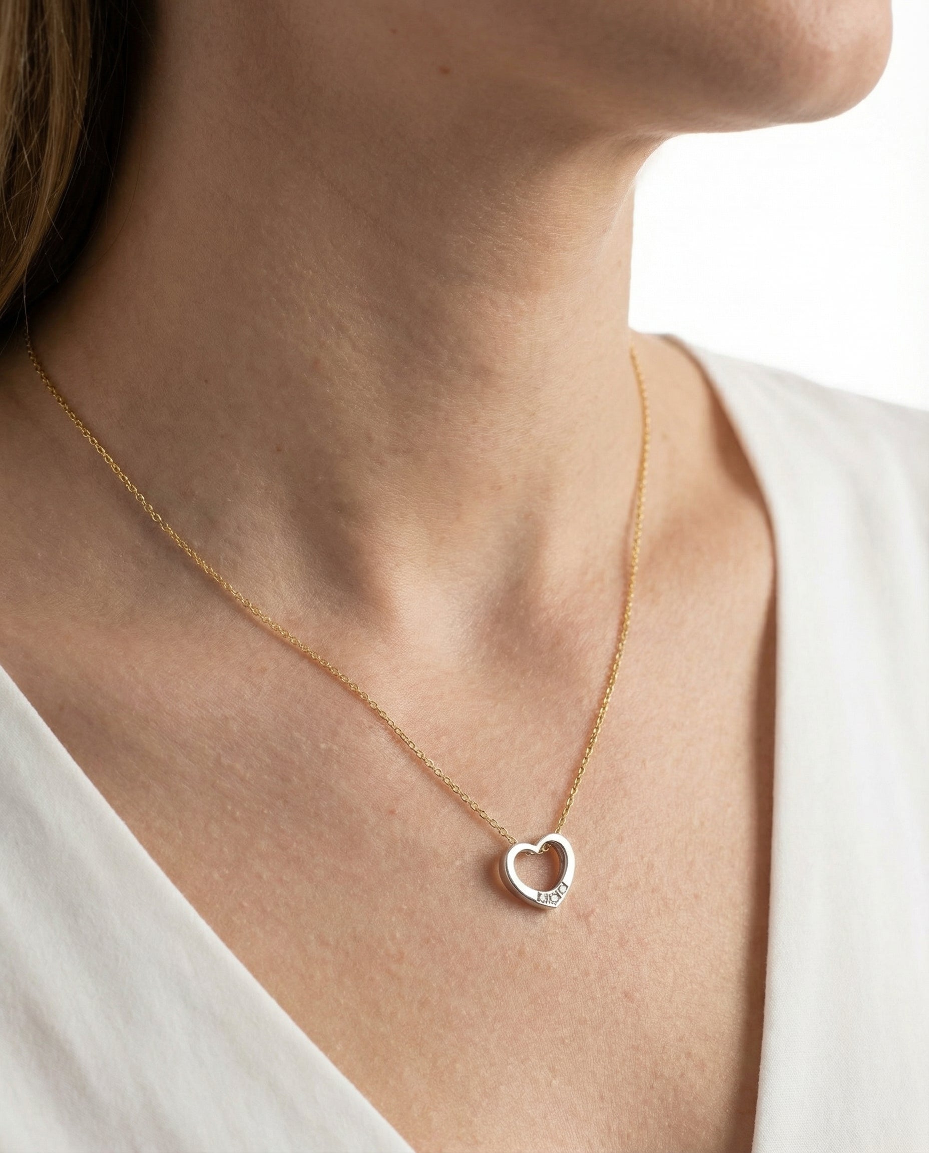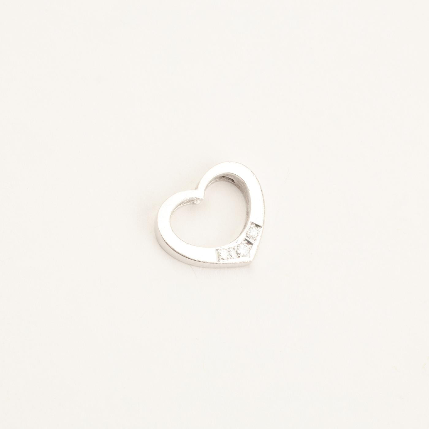 Hjerte vedhæng i 14K hvidguld med en diamant (0.05 ct), 1.4 cm