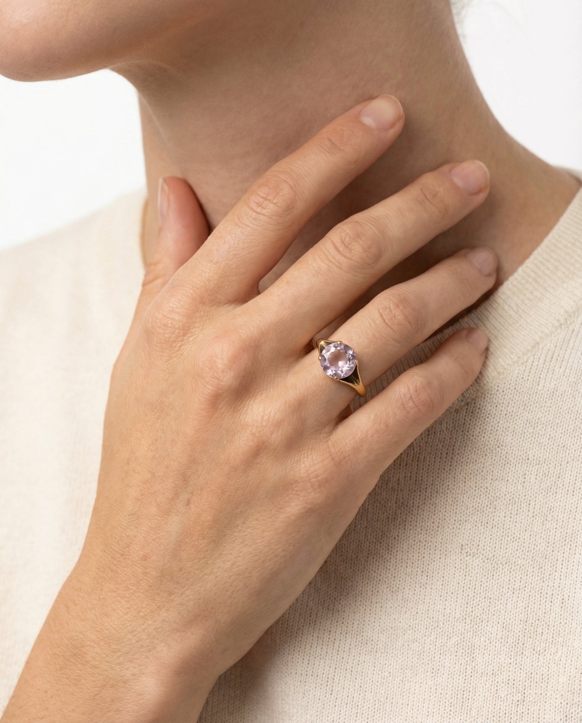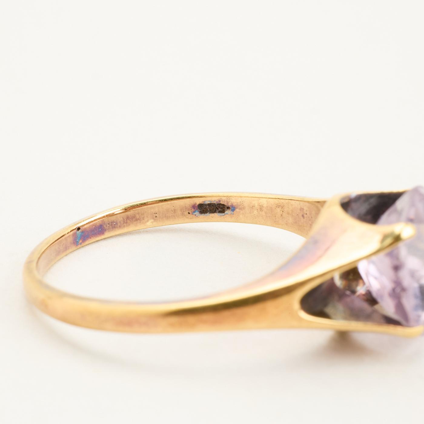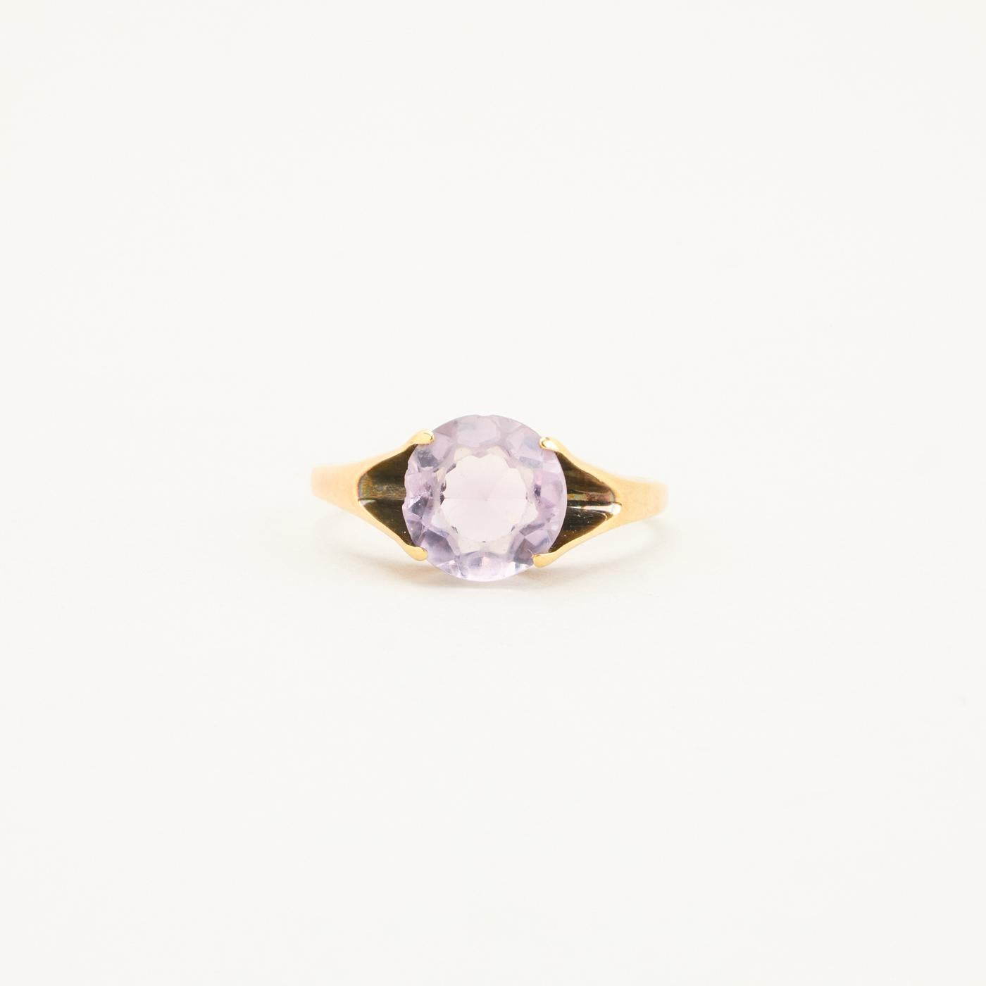 Cocktailring i 14K guld med lilla sten, Str. 64