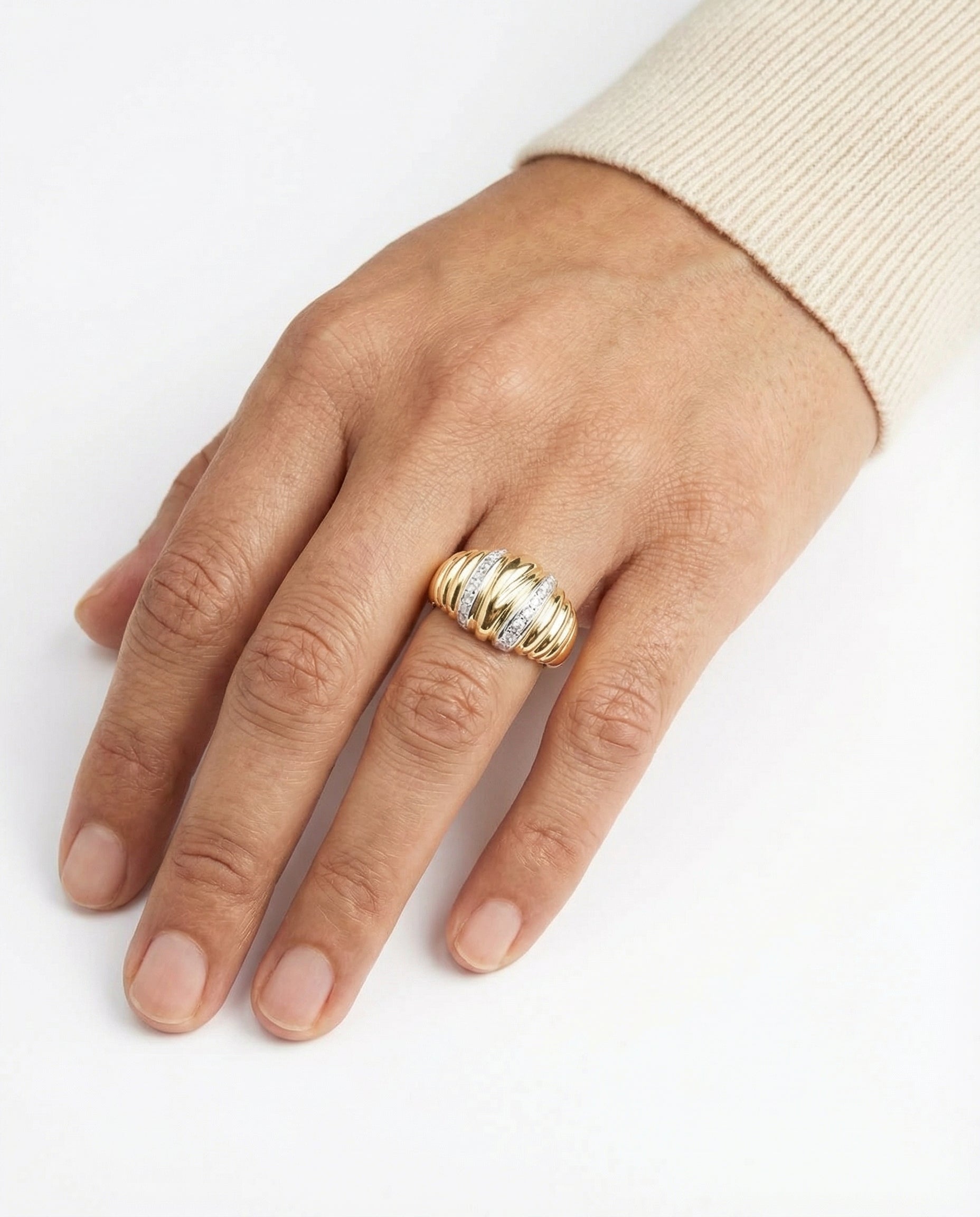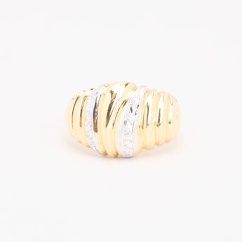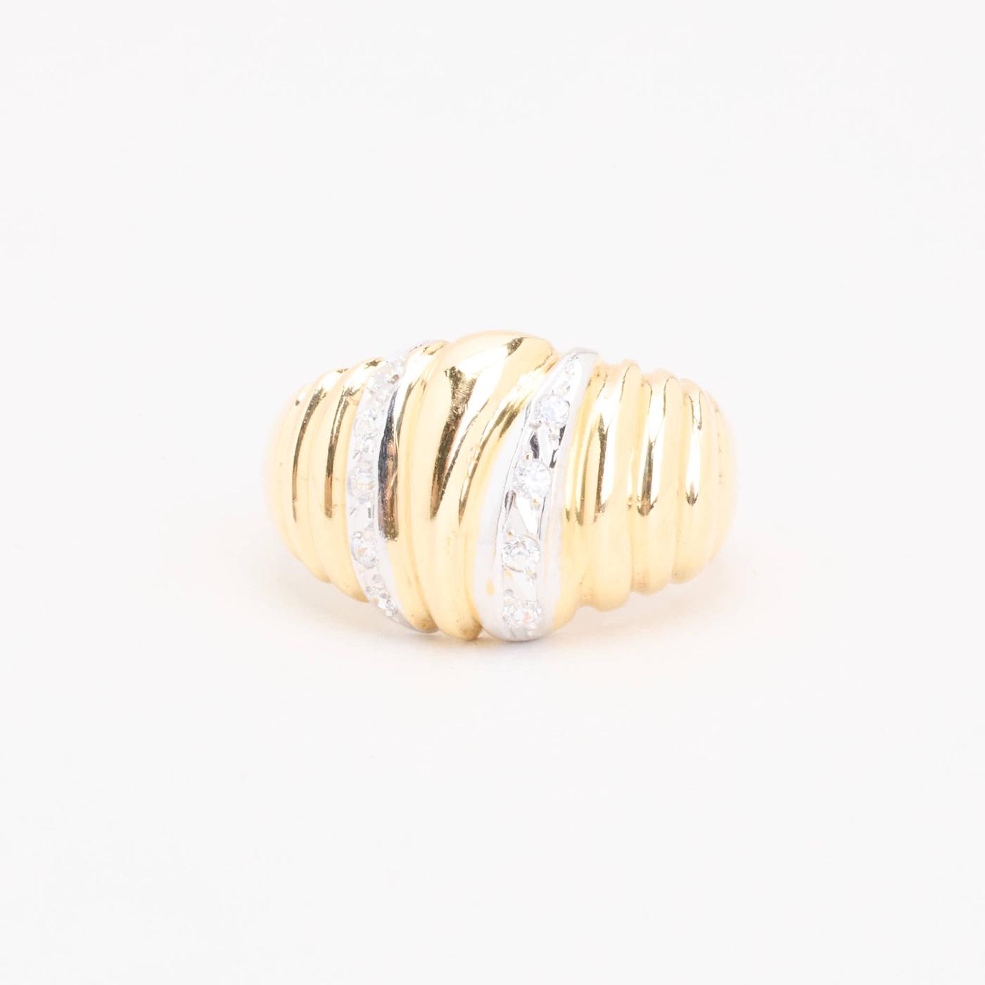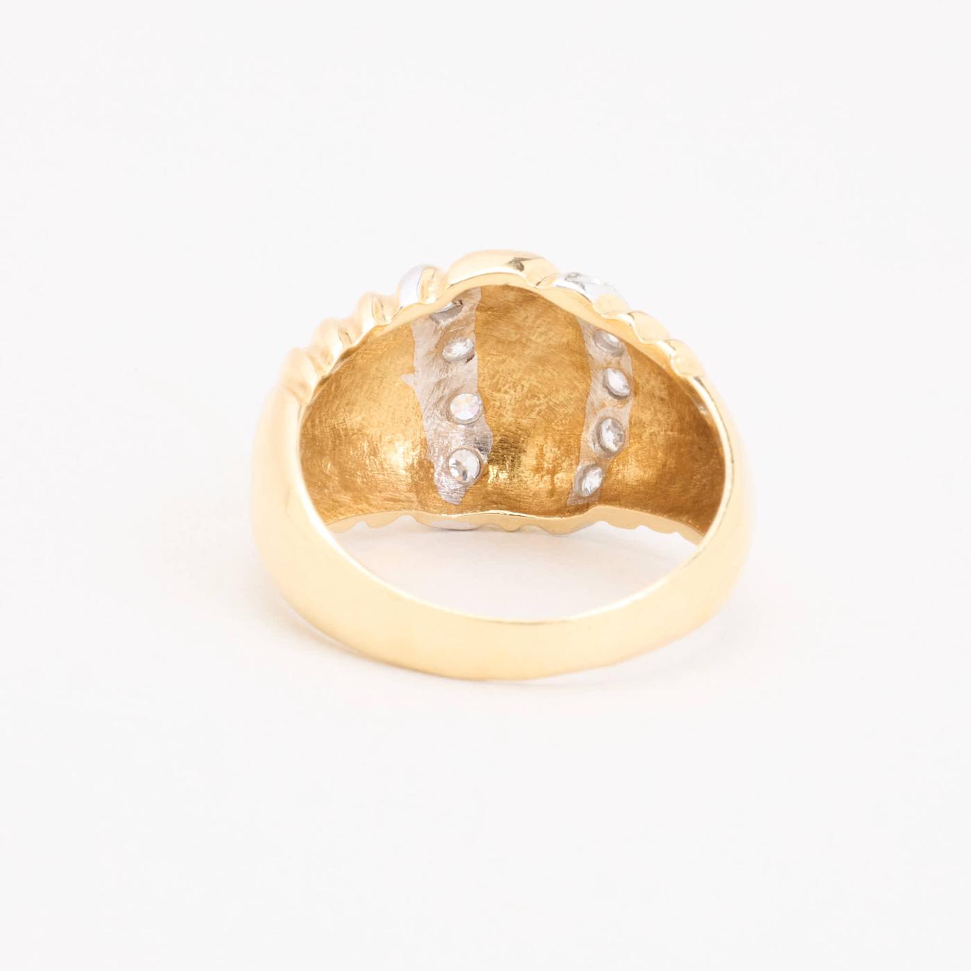 Gypsyring i 14K guld og hvidguld med zirkoner, Str. 55