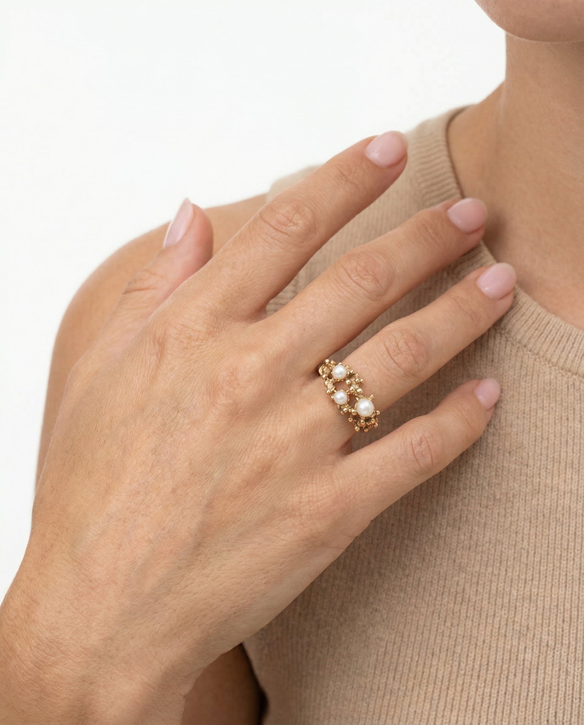 Perlering i 8K guld, Str. 52, 2.79 g