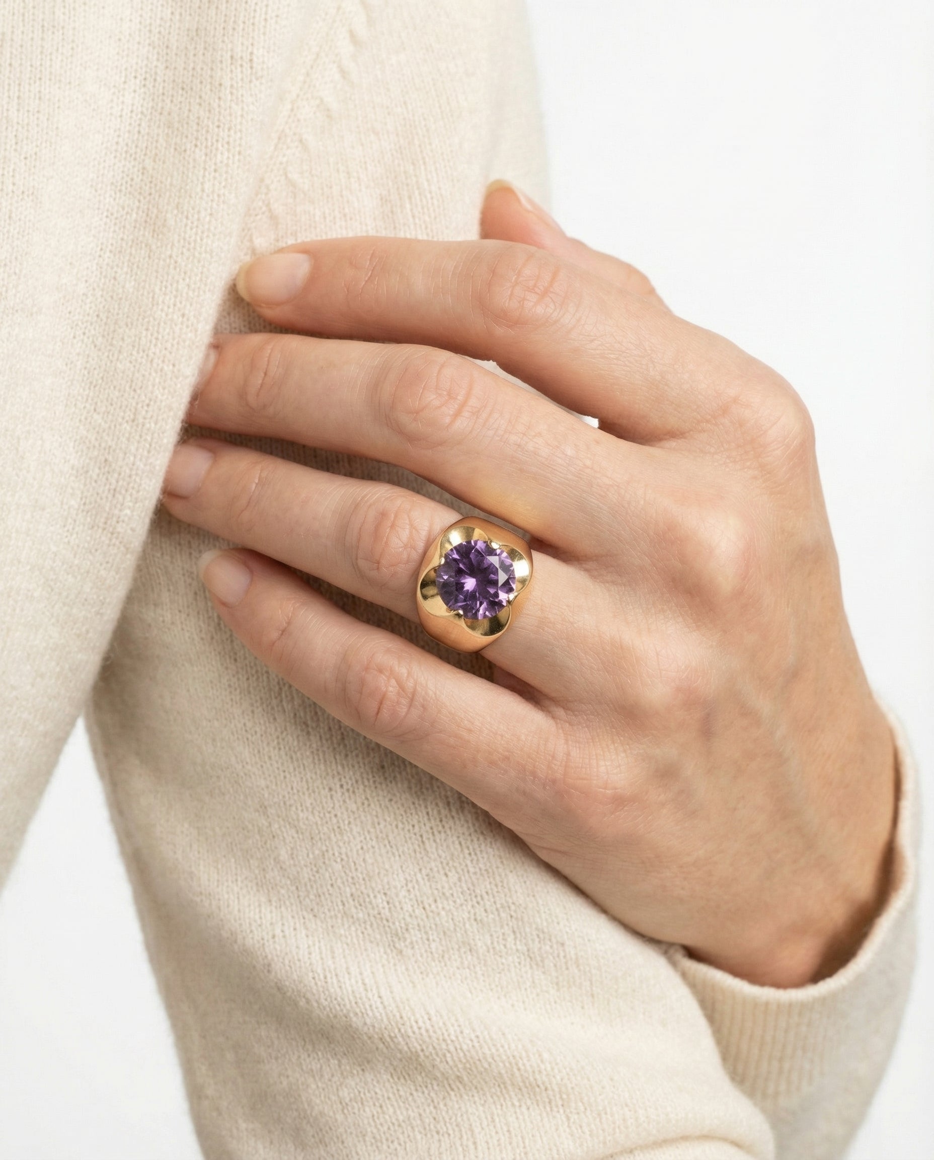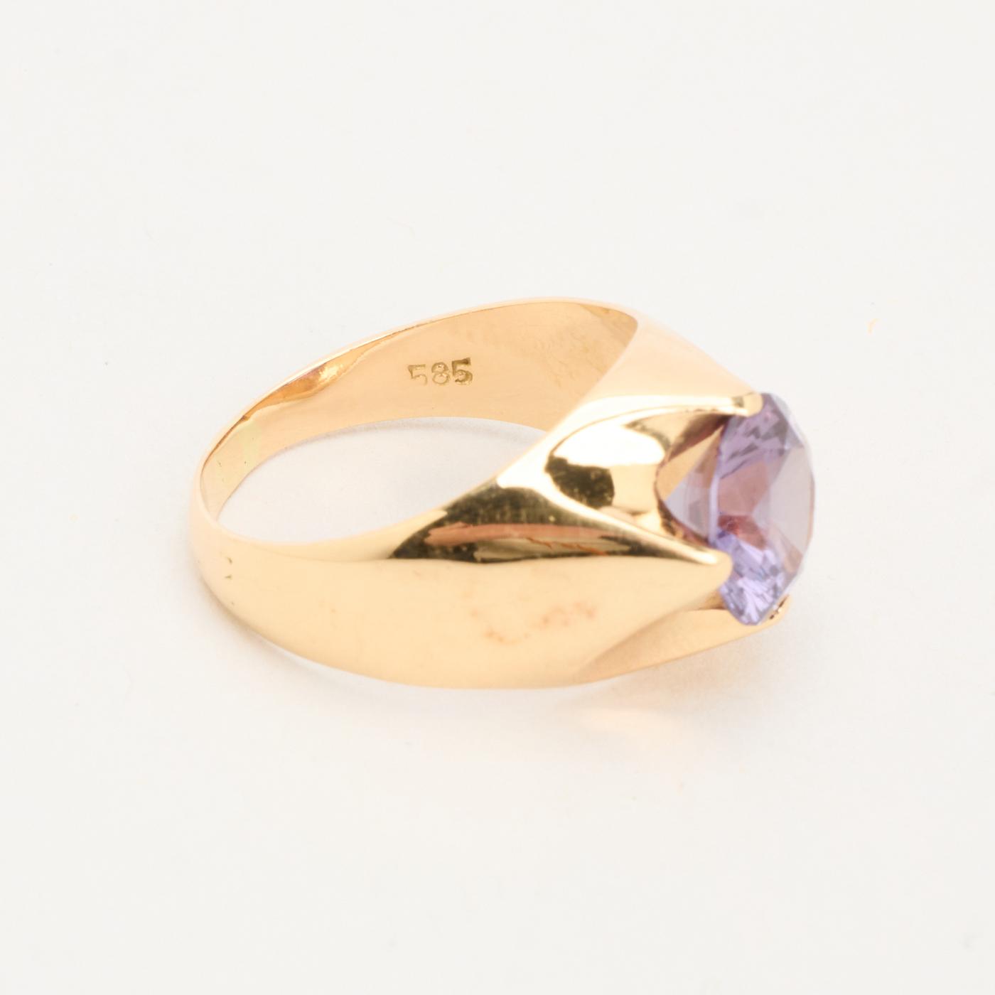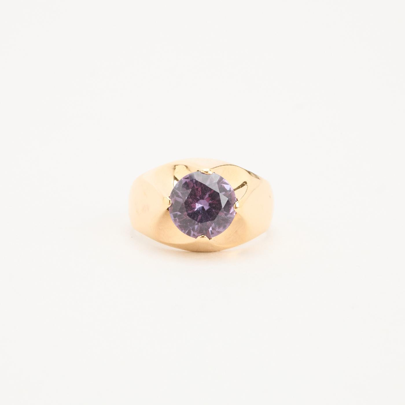 Signetring i 14 karat med lilla sten str. 50 - 51