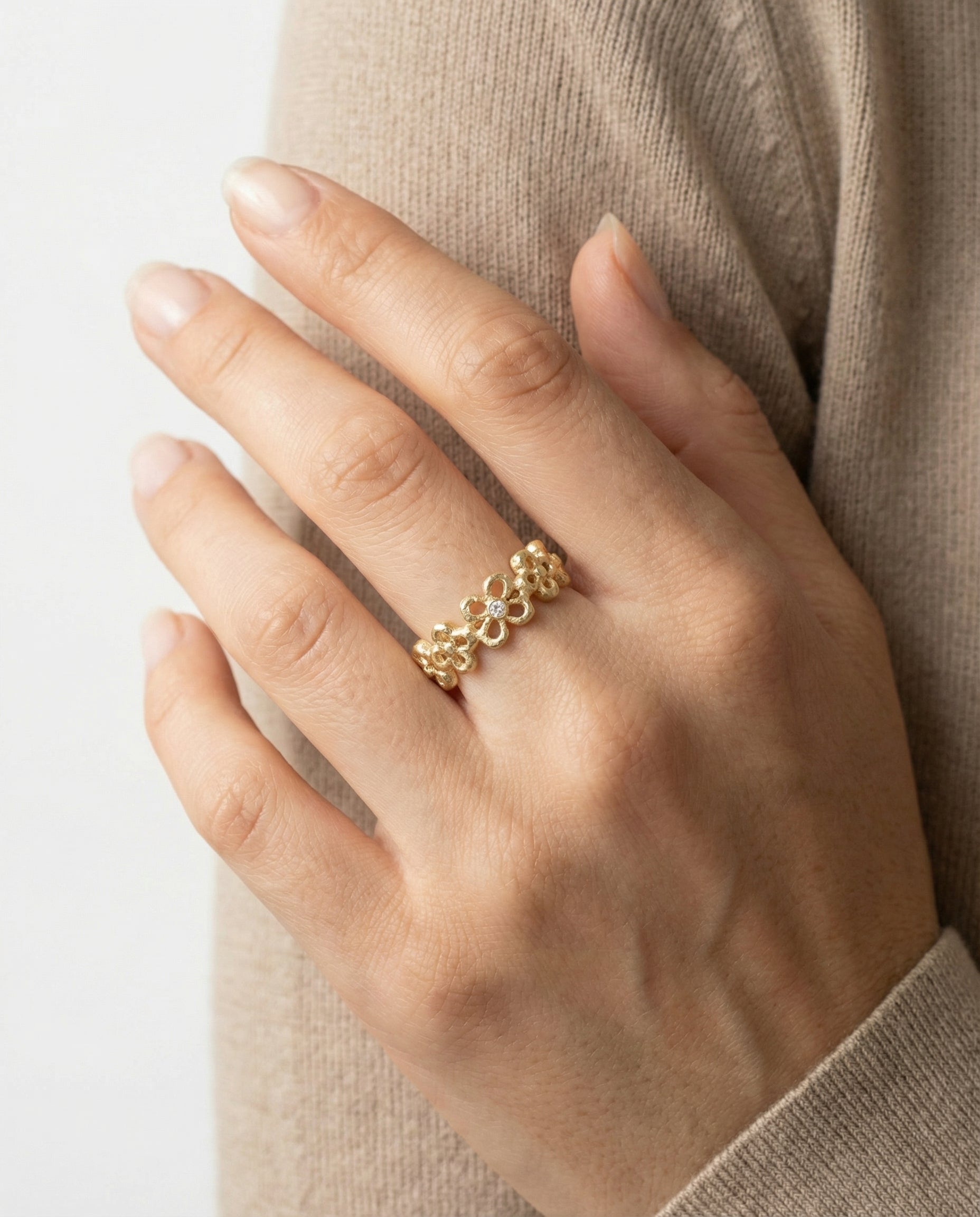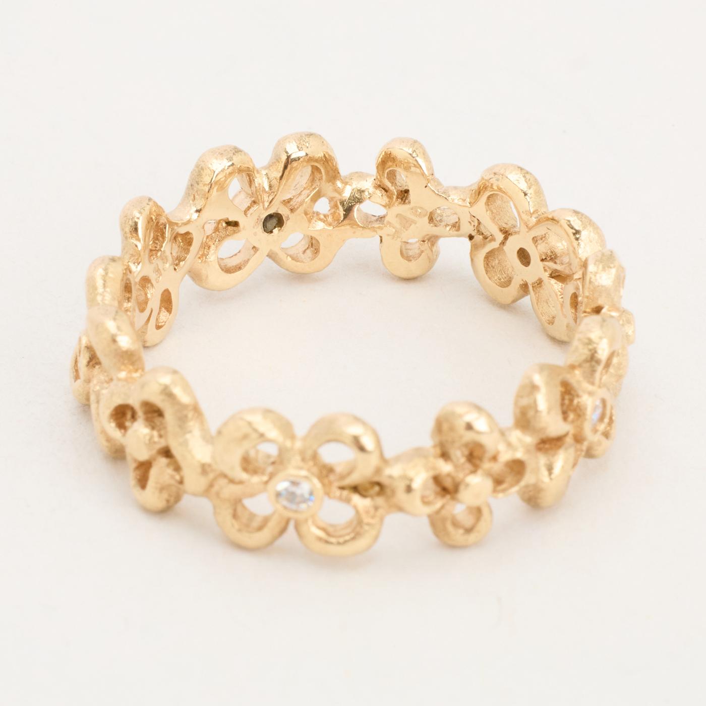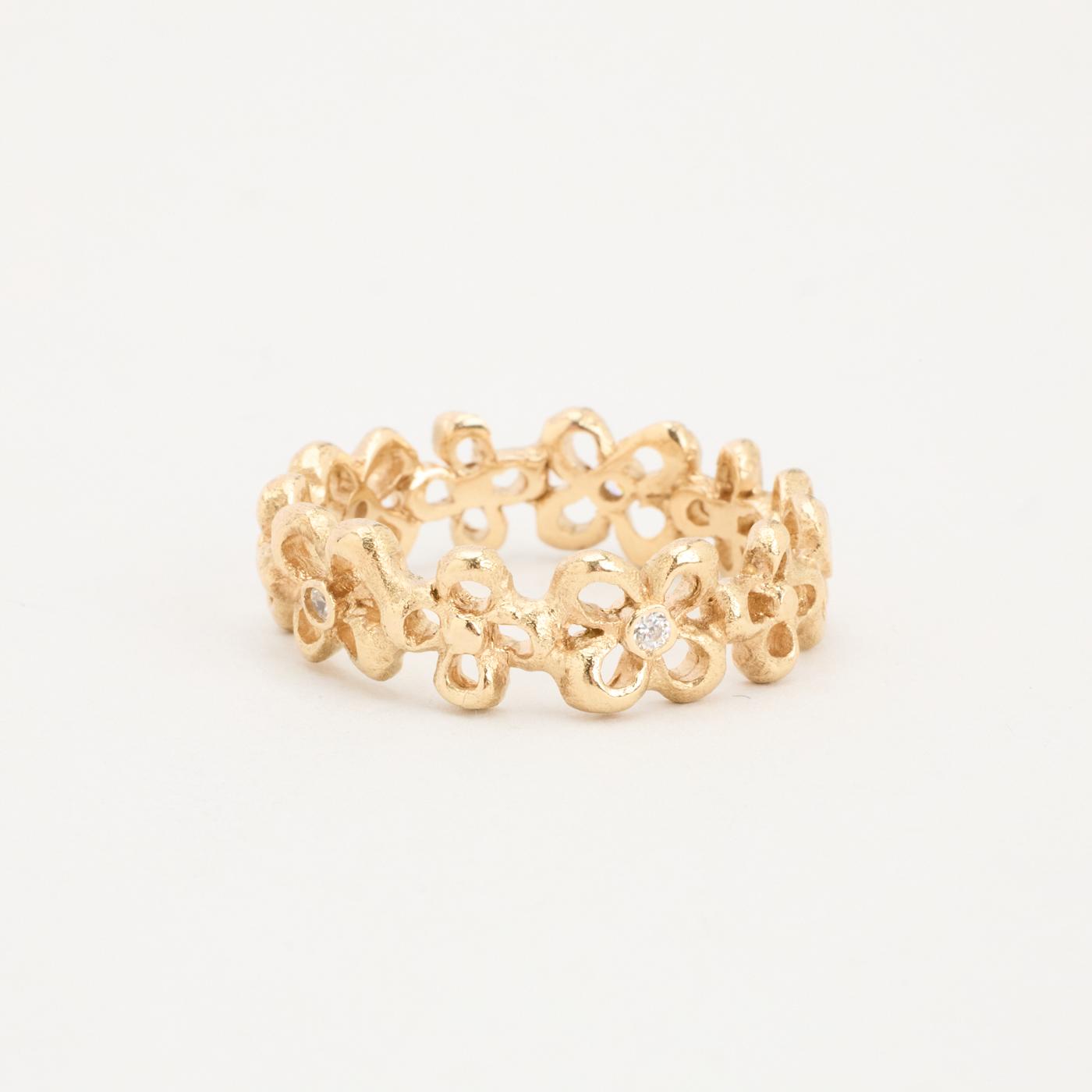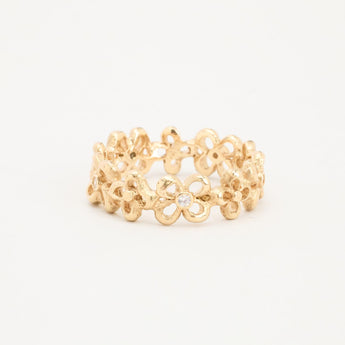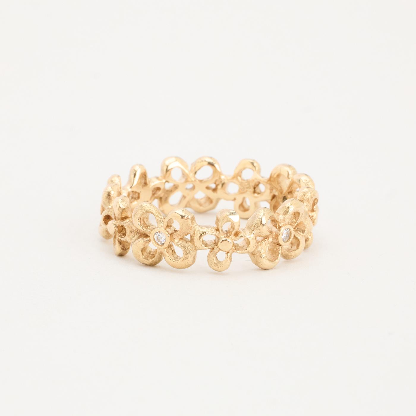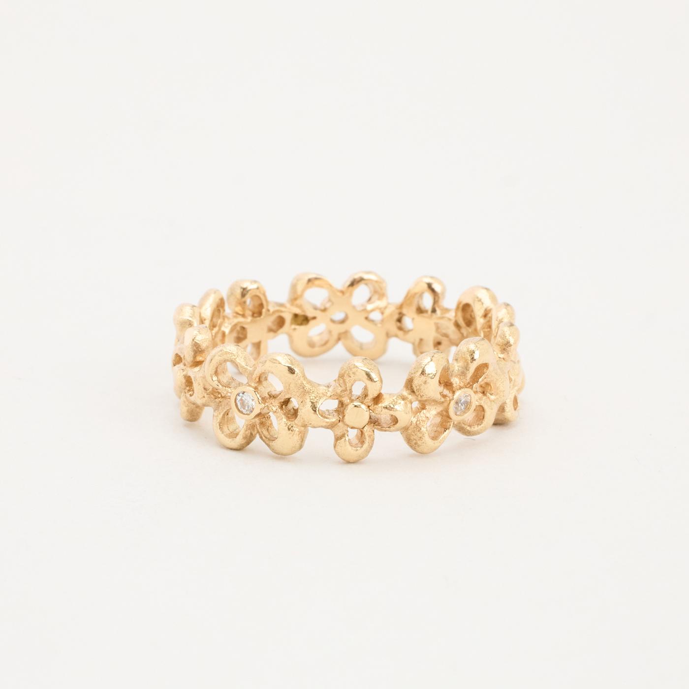 Blomsterring i 8K guld med flere hvide zirkoniaer, Str. 64, 5.14 g