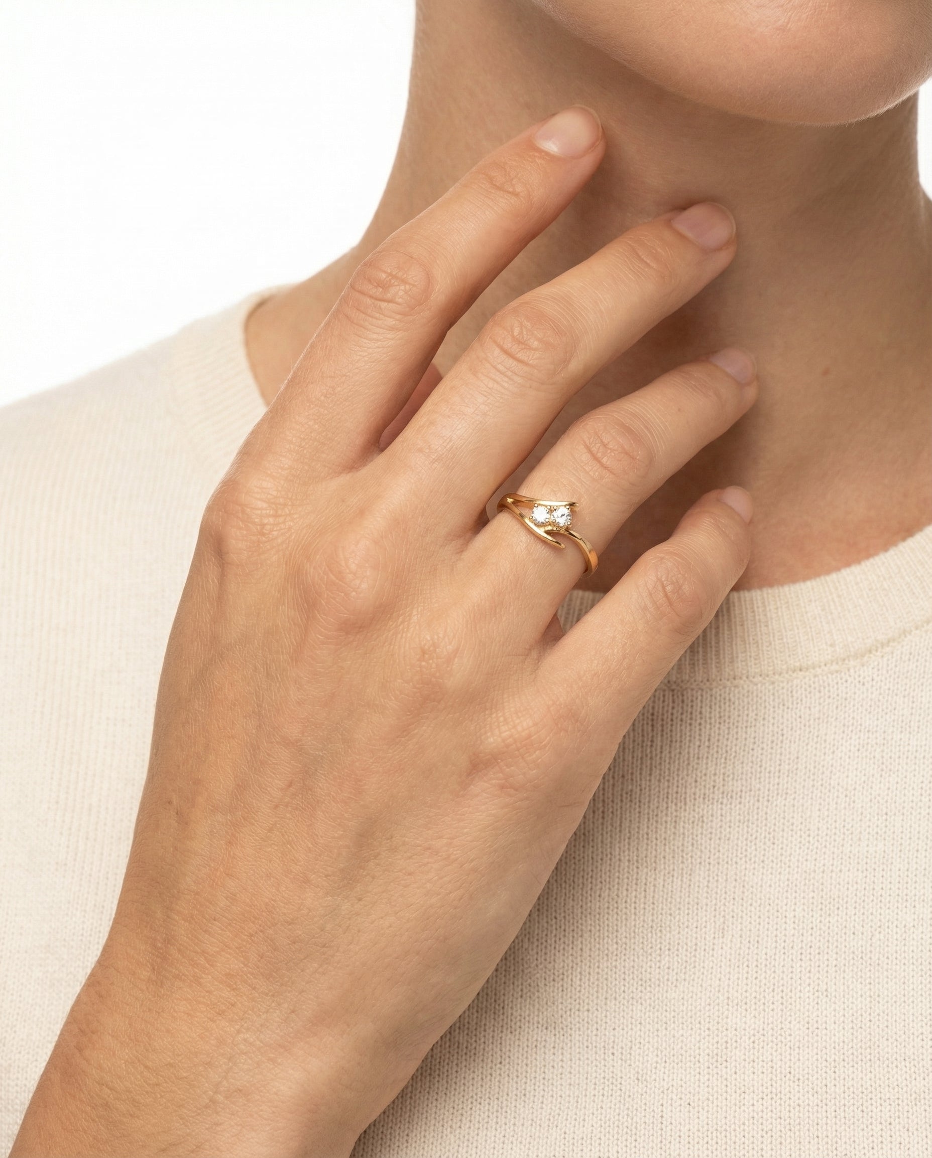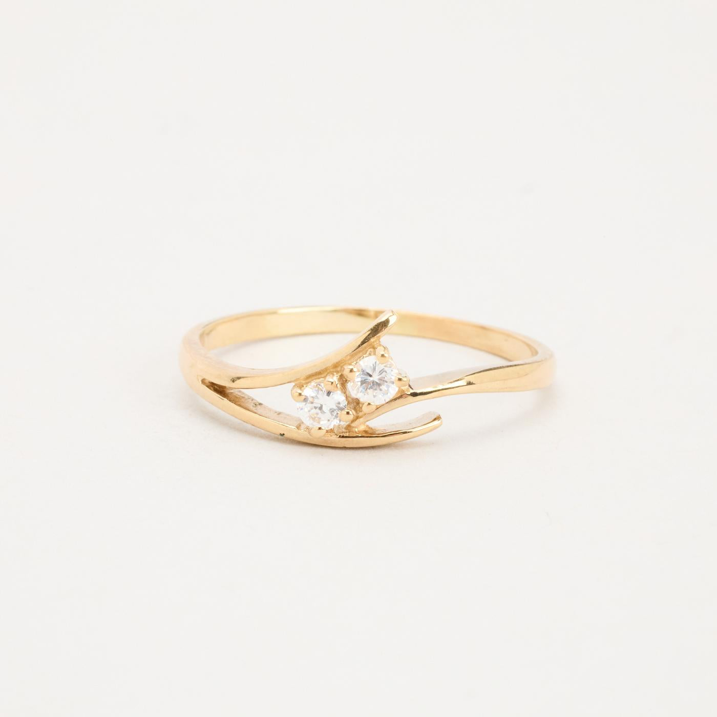 Crossoverring i 8K guld med flere zirkoniaer, Str. 62, 1.7 g