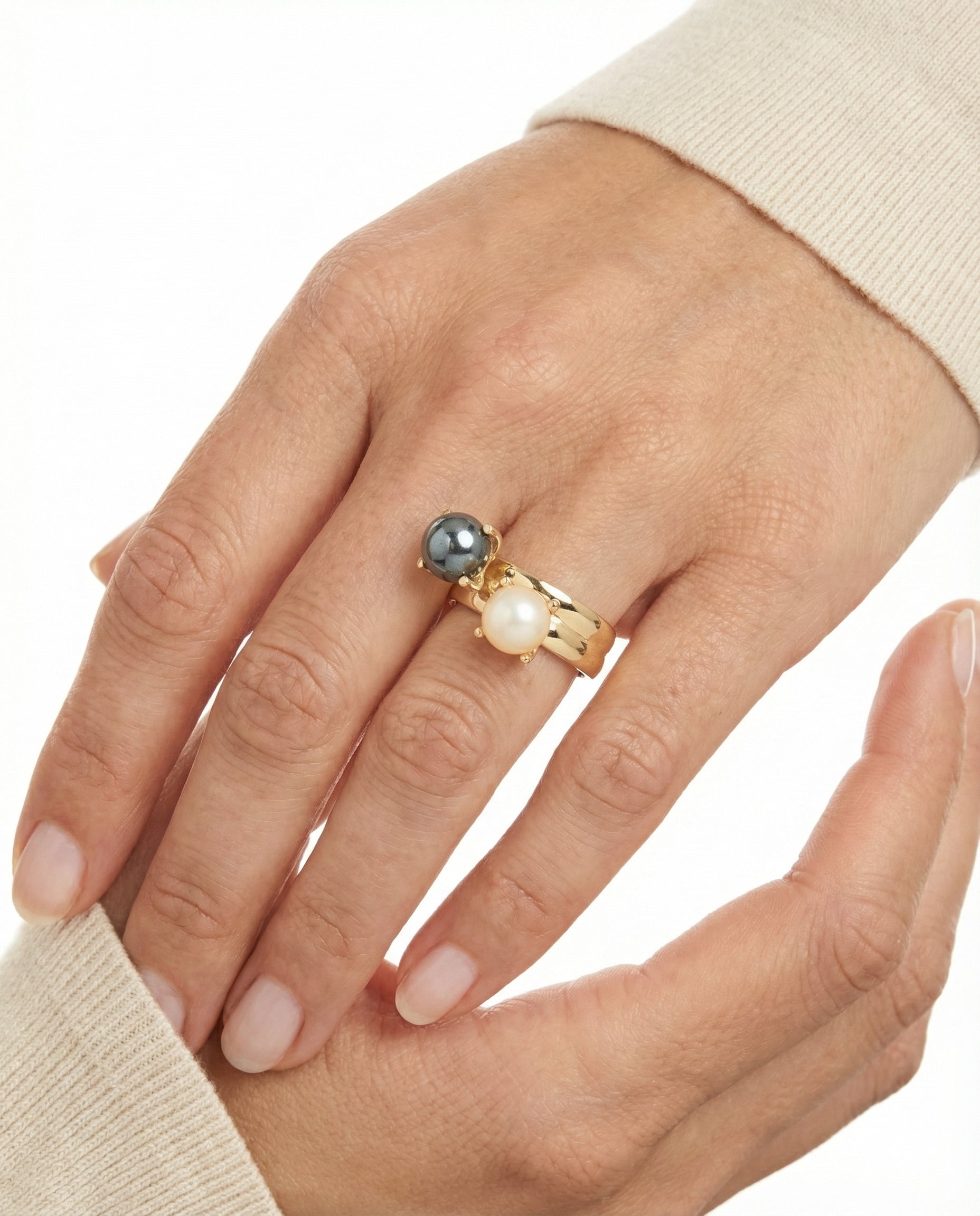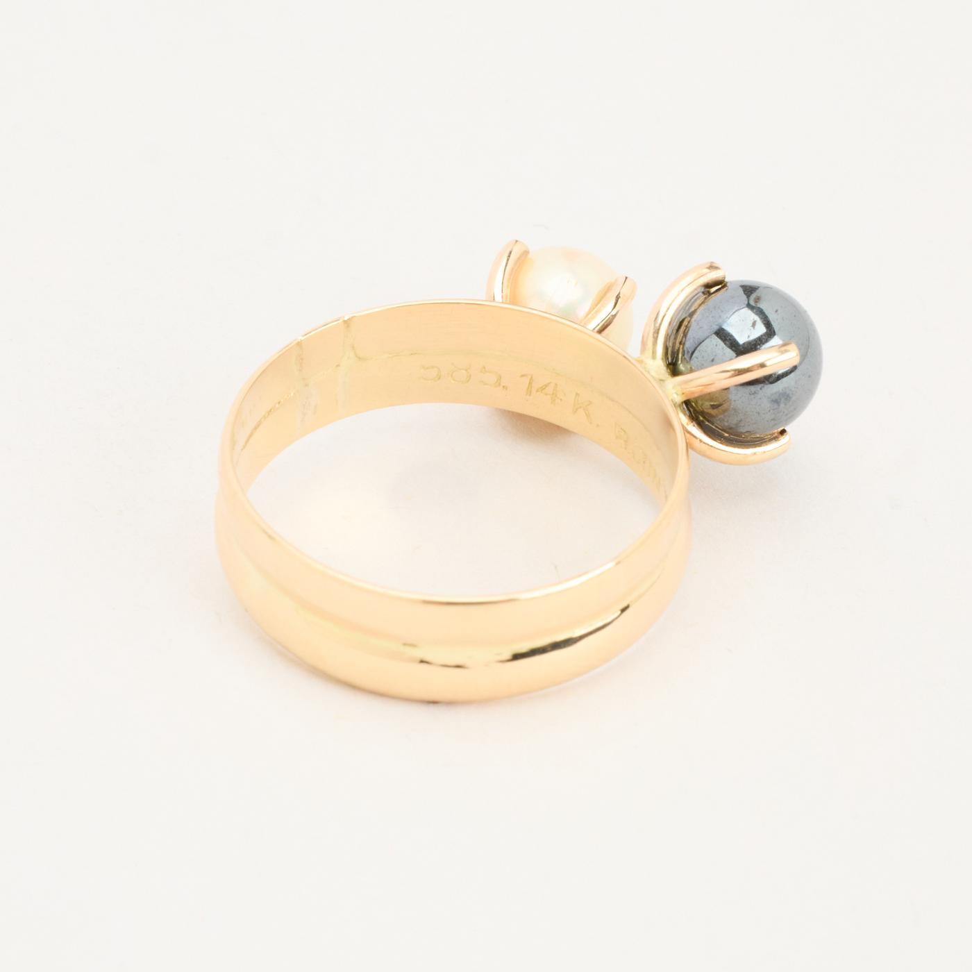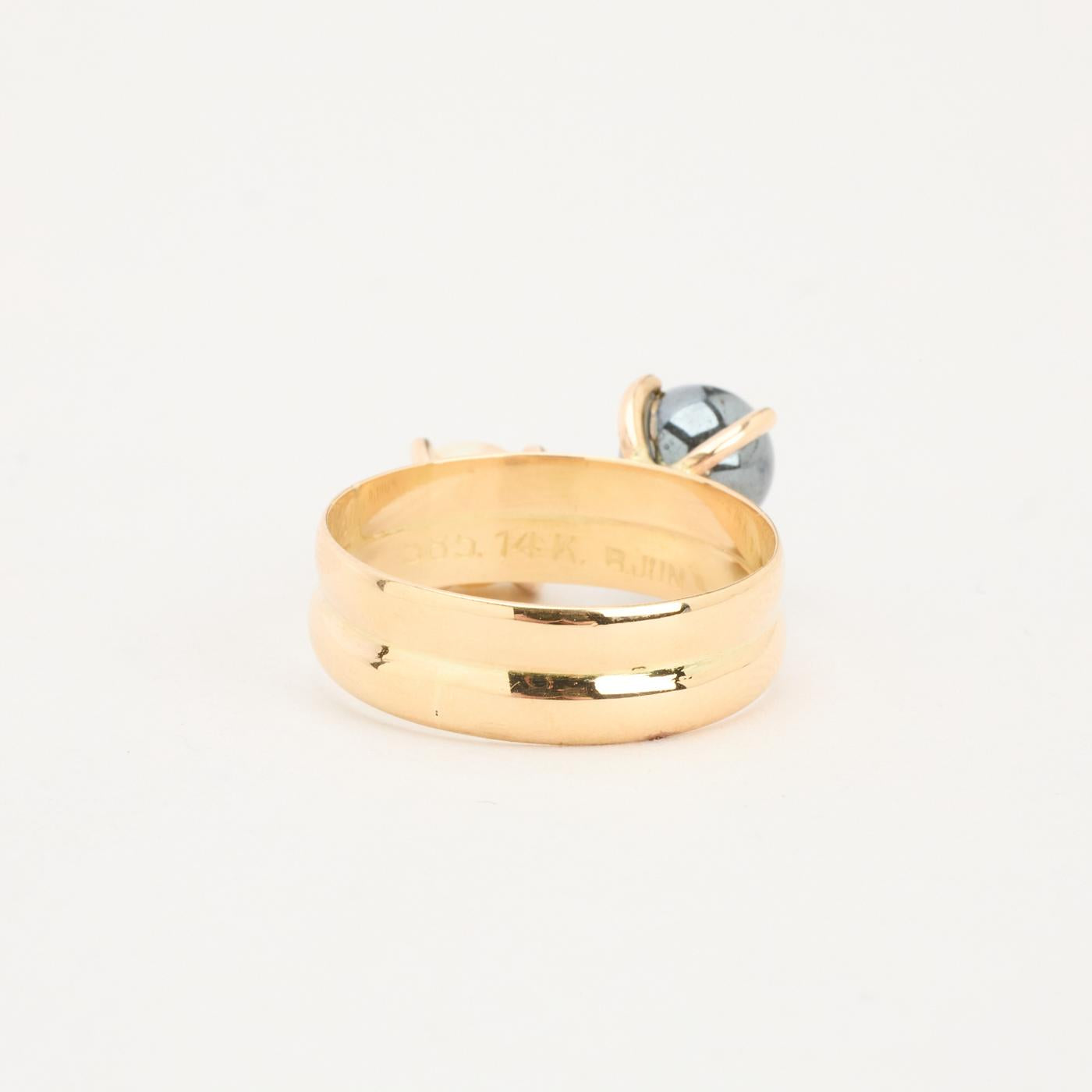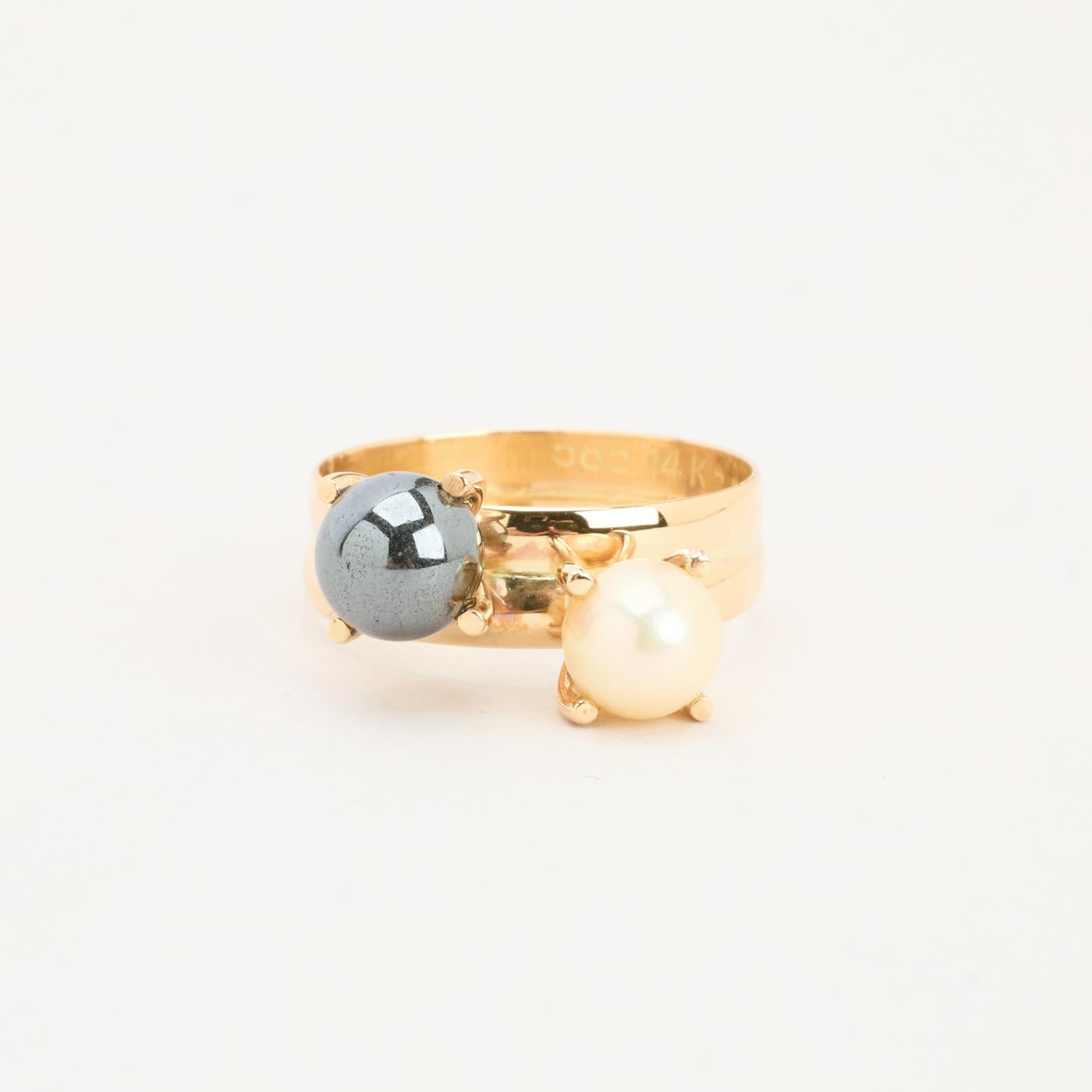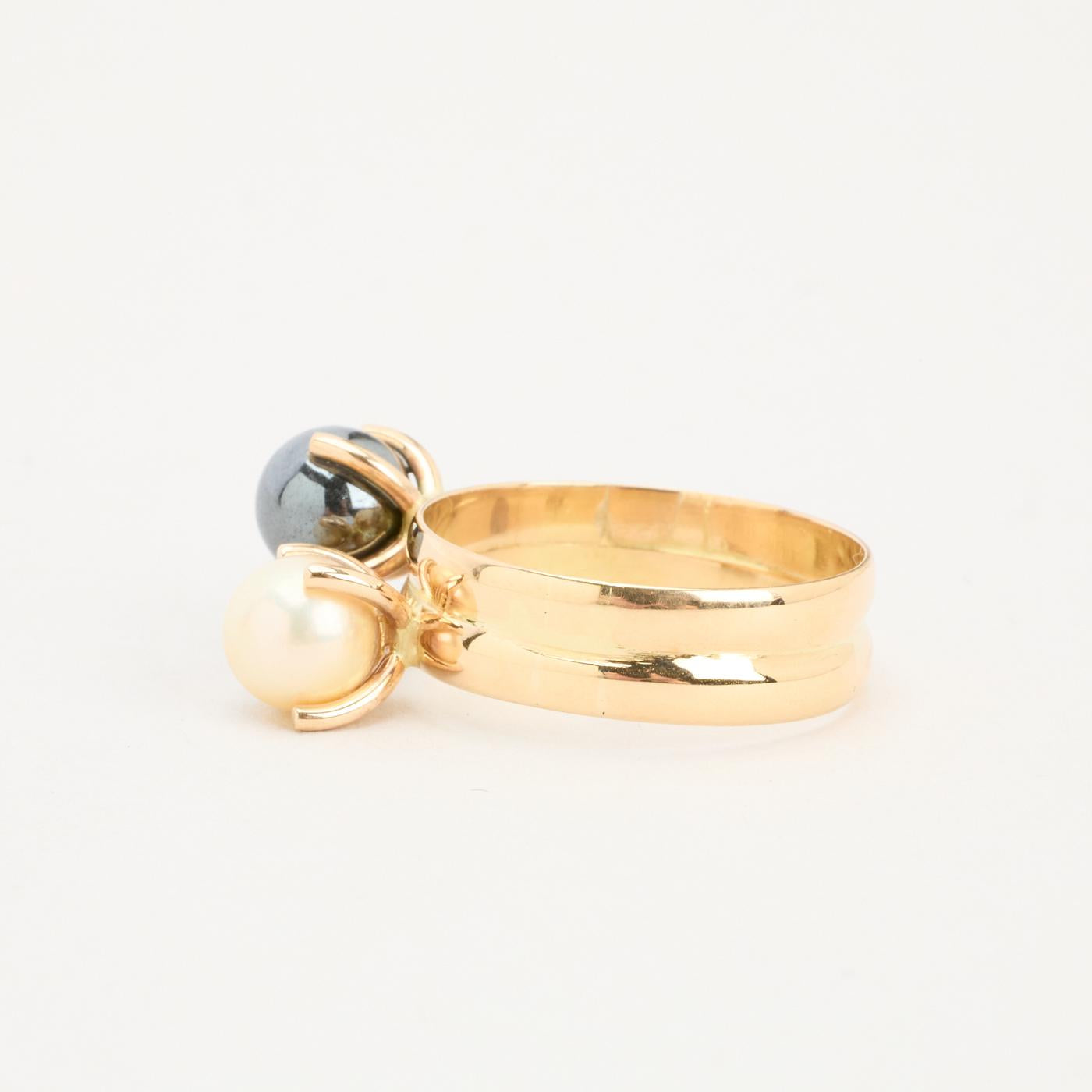 Toi et Moi ring i 14K guld med én hvid sten og én mørk sten, Str. 62, 4.32 g
