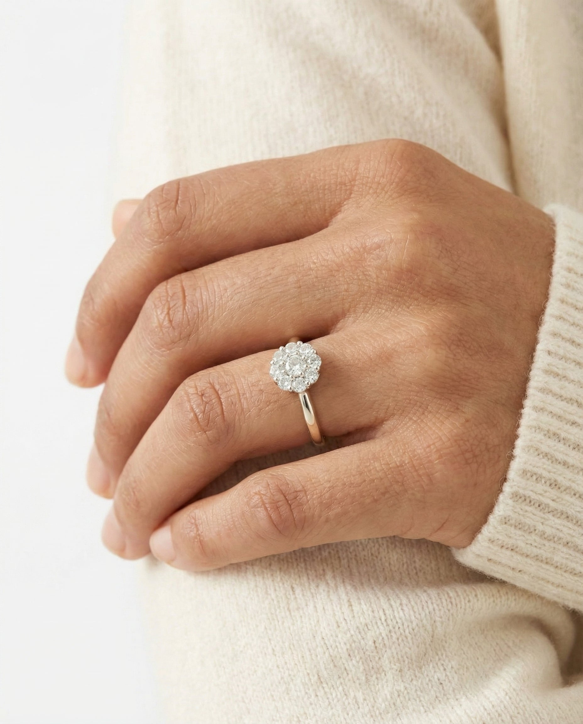 Illusion ring i 14K hvidguld med hvide sten, Str. 49