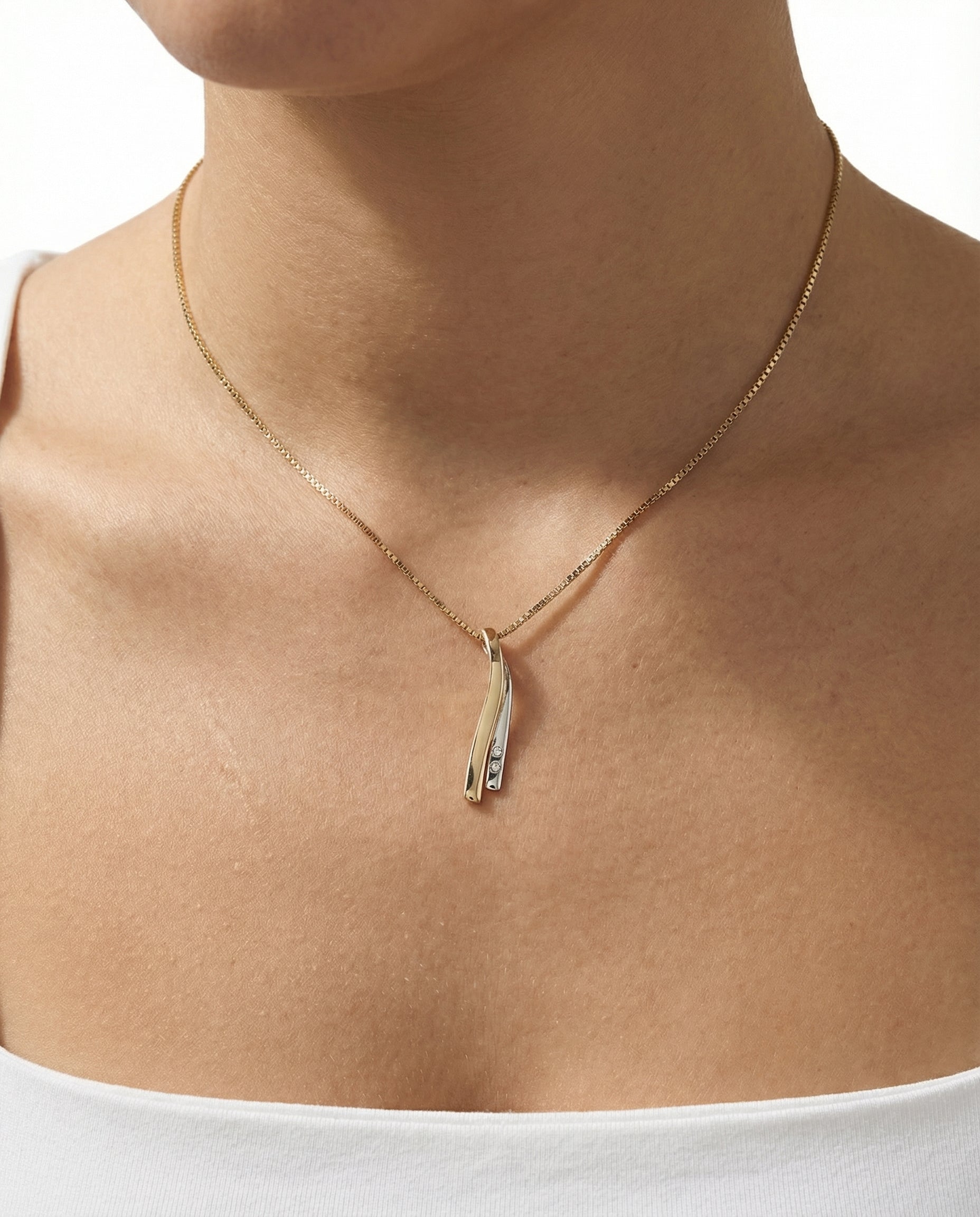 Vedhæng i 14K guld og hvidguld med en diamant (0.01 ct), 2.7 cm, 1.3 g