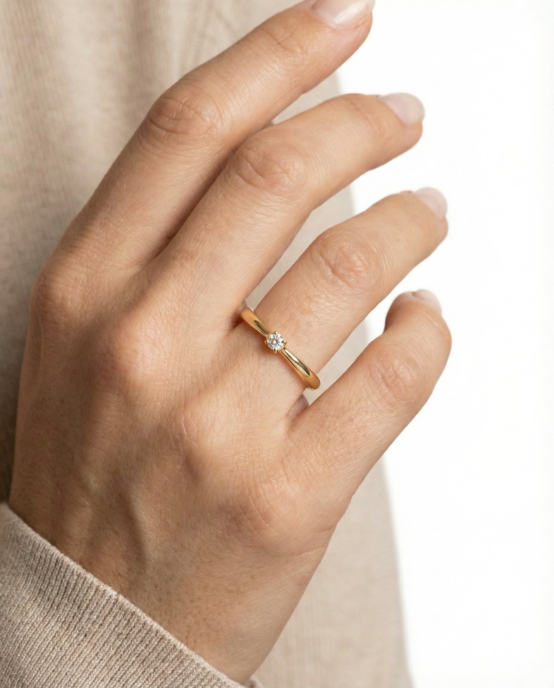 Solitairering med diamant (0.03 ct) i 8 karat str. 53