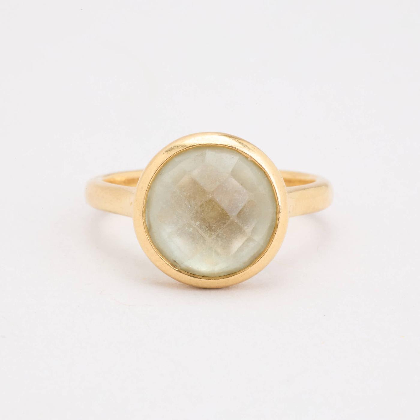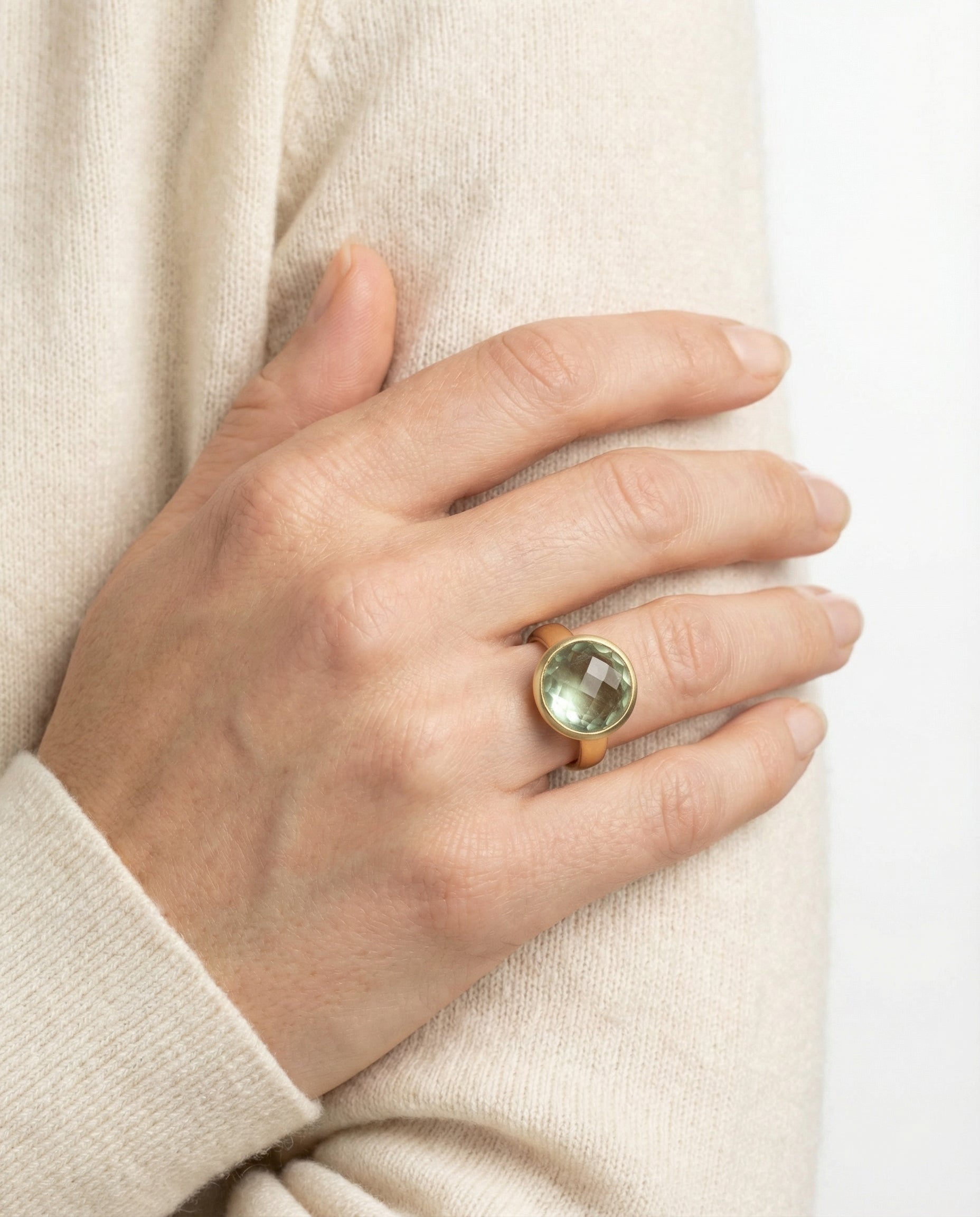 Cocktailring i 18K guld med en grøn sten, Str. 54