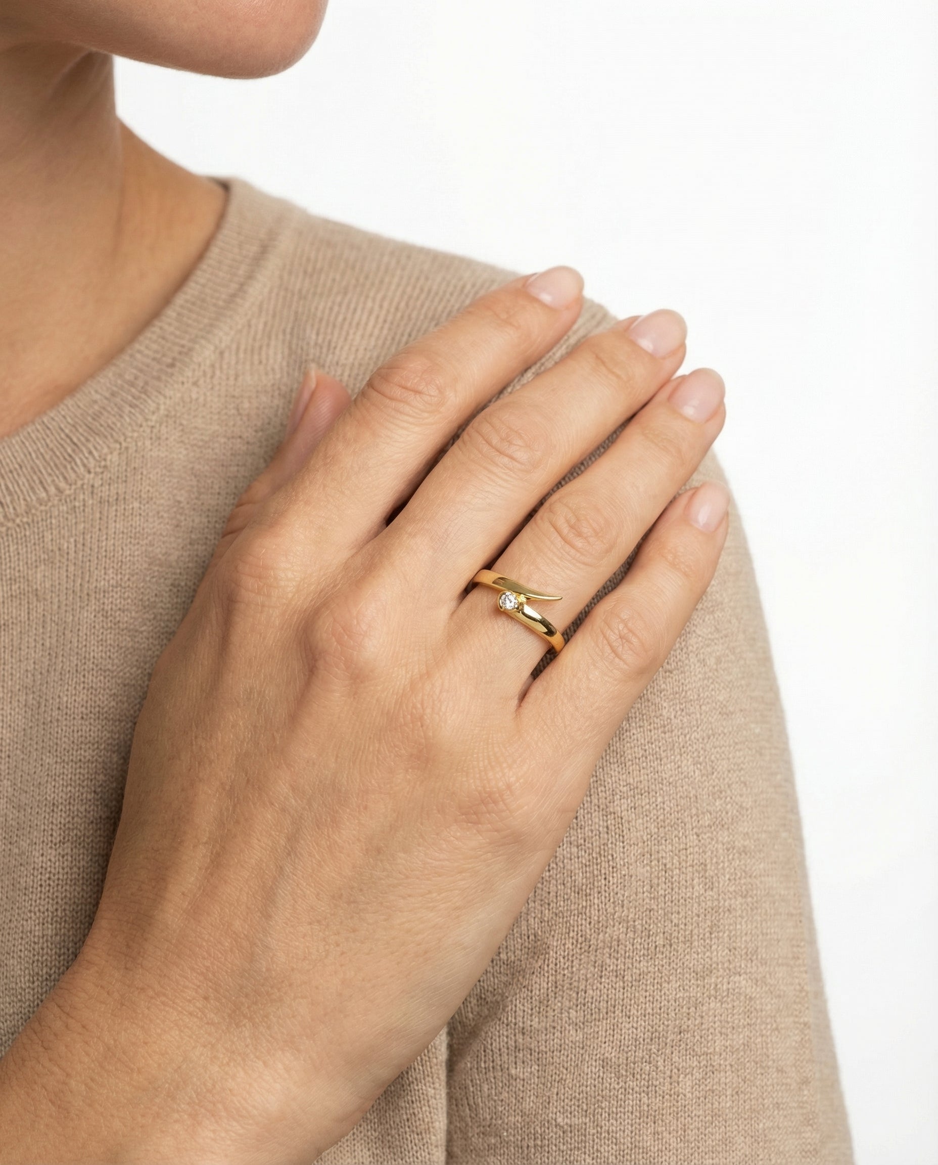 Crossoverring i 14K guld med en diamant (0.05 ct), Str. 53, 3.06 g