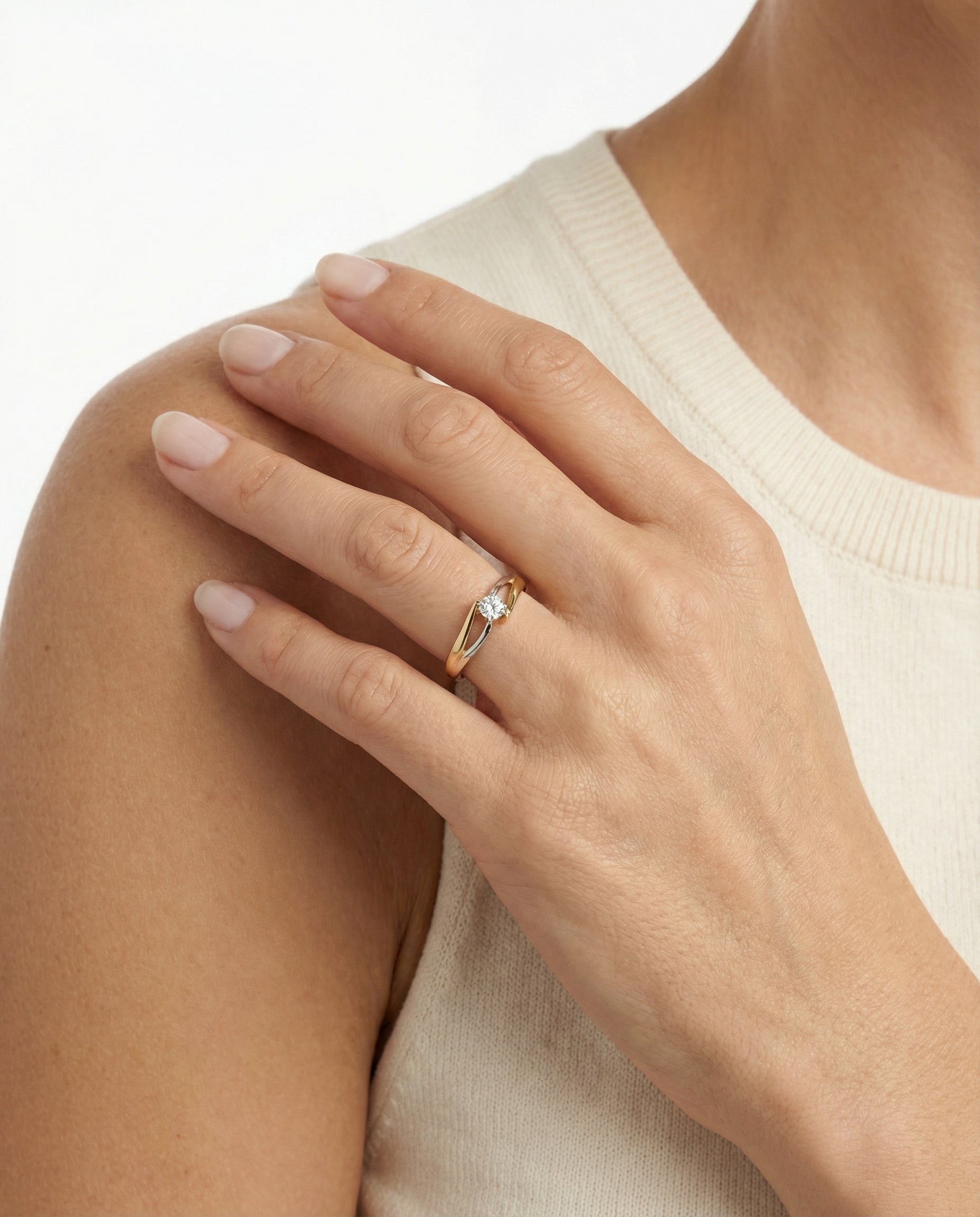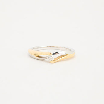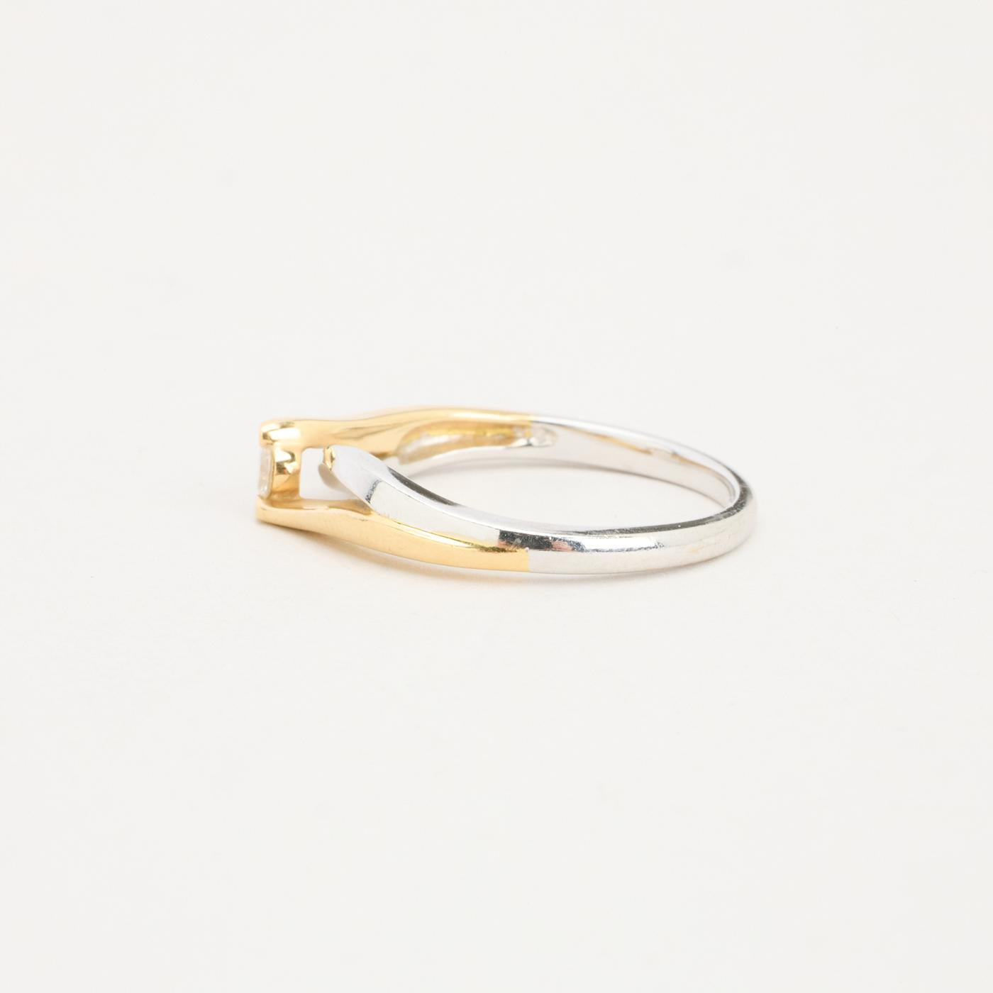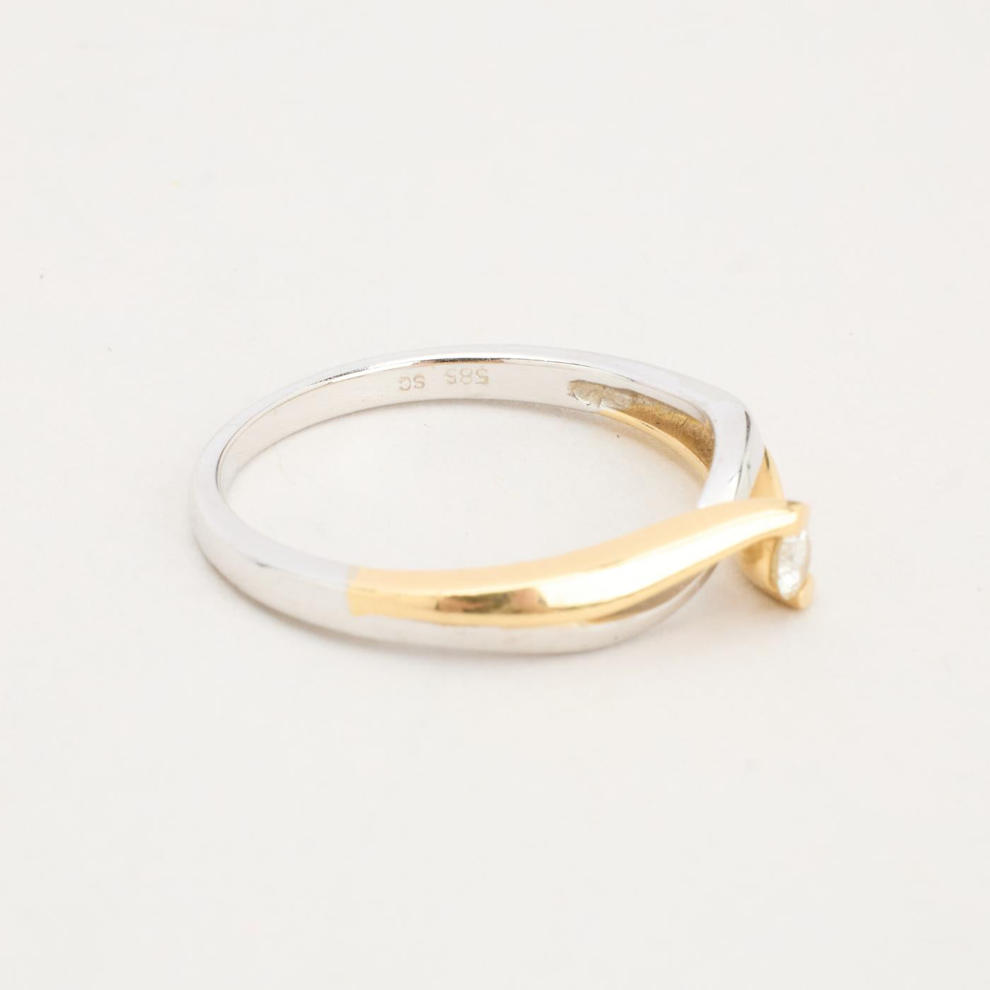 Solitairering i 14K guld og hvidguld med en diamant (0.11 ct), Str. 55, 2.63 g