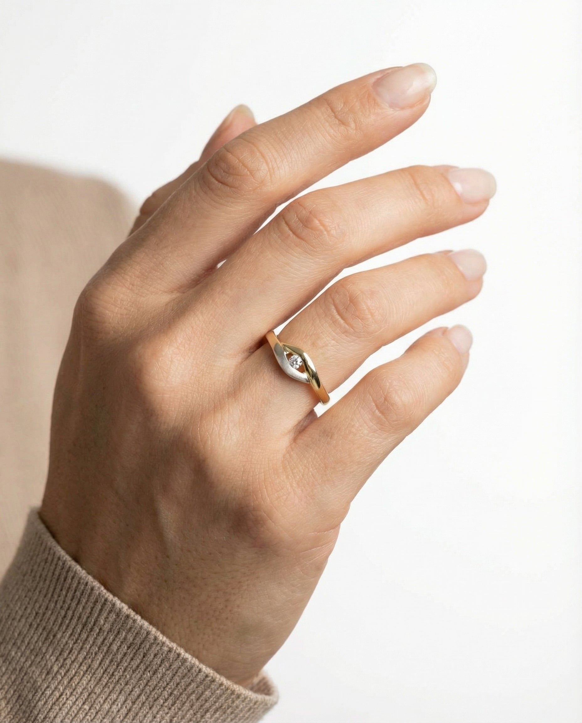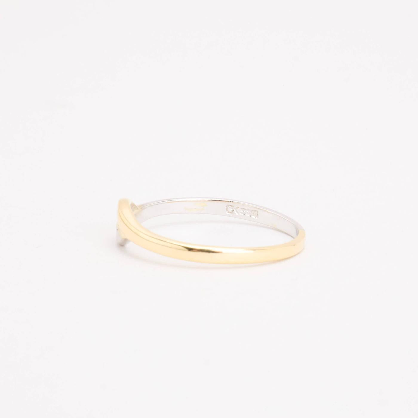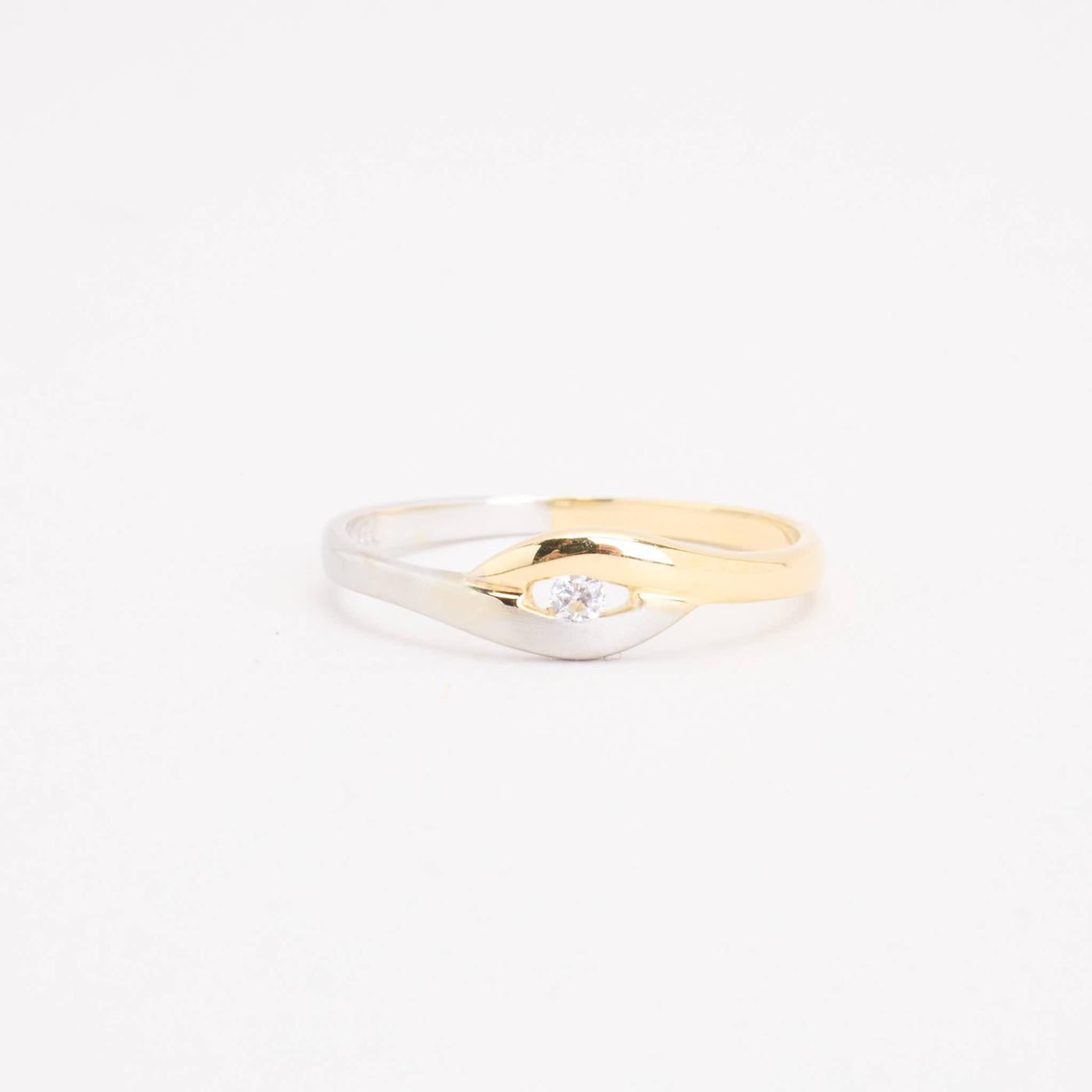 Crossoverring i 14K guld og hvidguld med zirkonia, Str. 53, 1.4 g