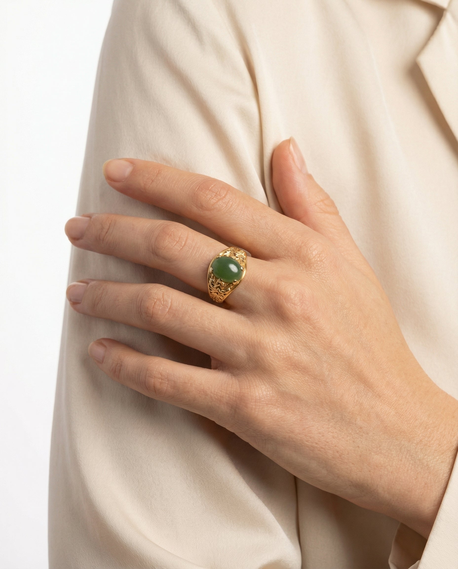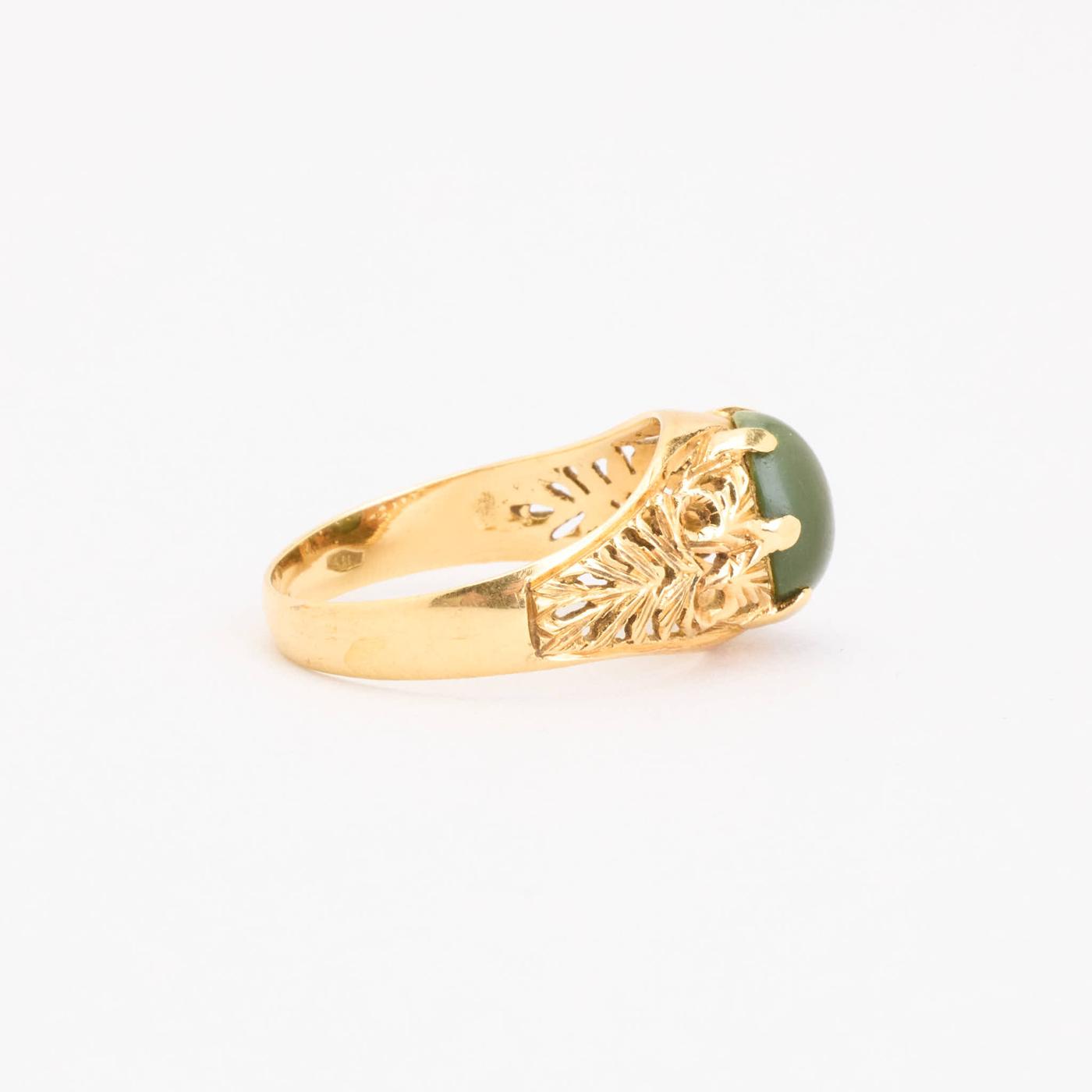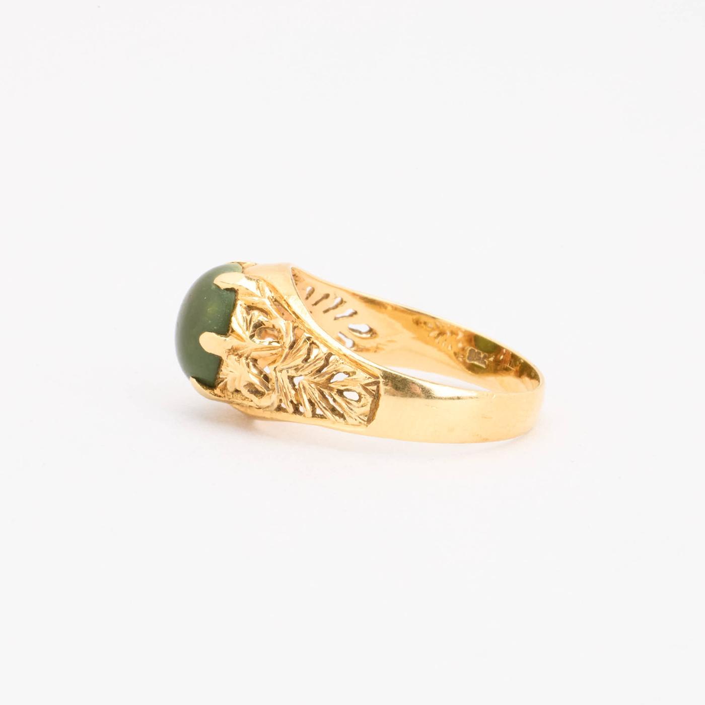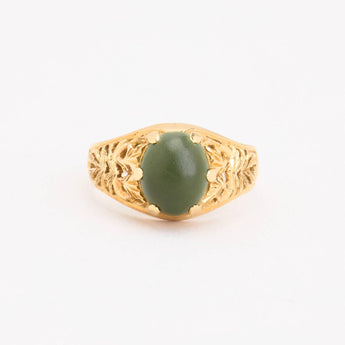 Gypsyring i 18K guld med en grøn sten, Str. 56