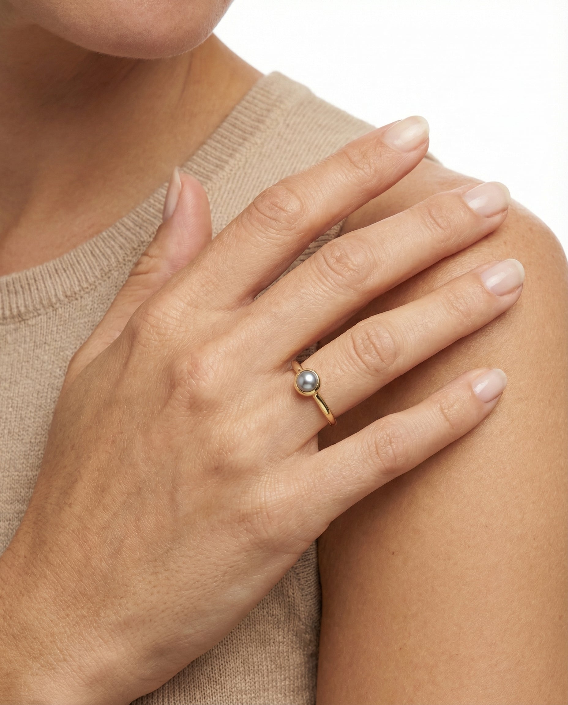 Perlering i 8K guld med en perle, str. 55, 1.1 g