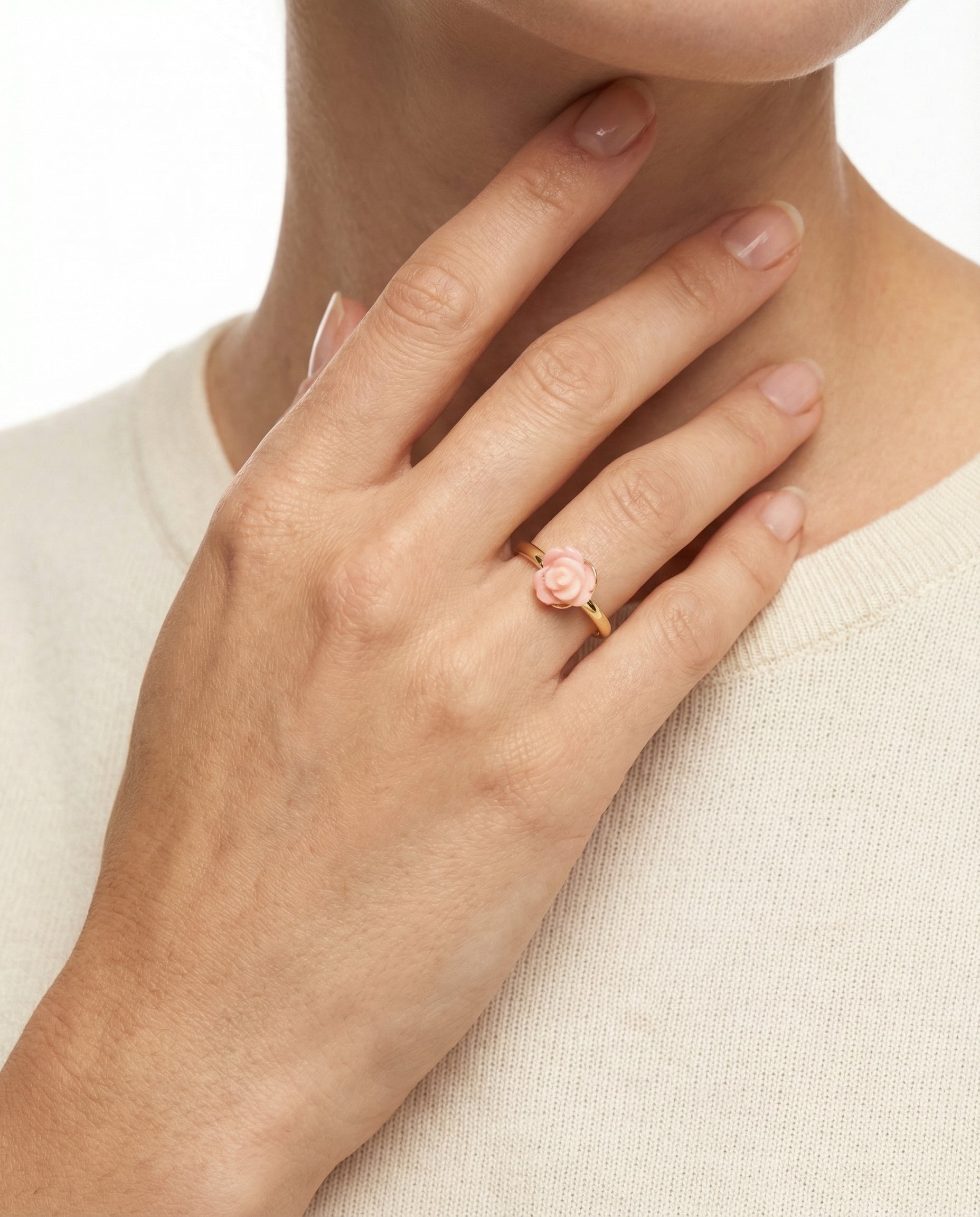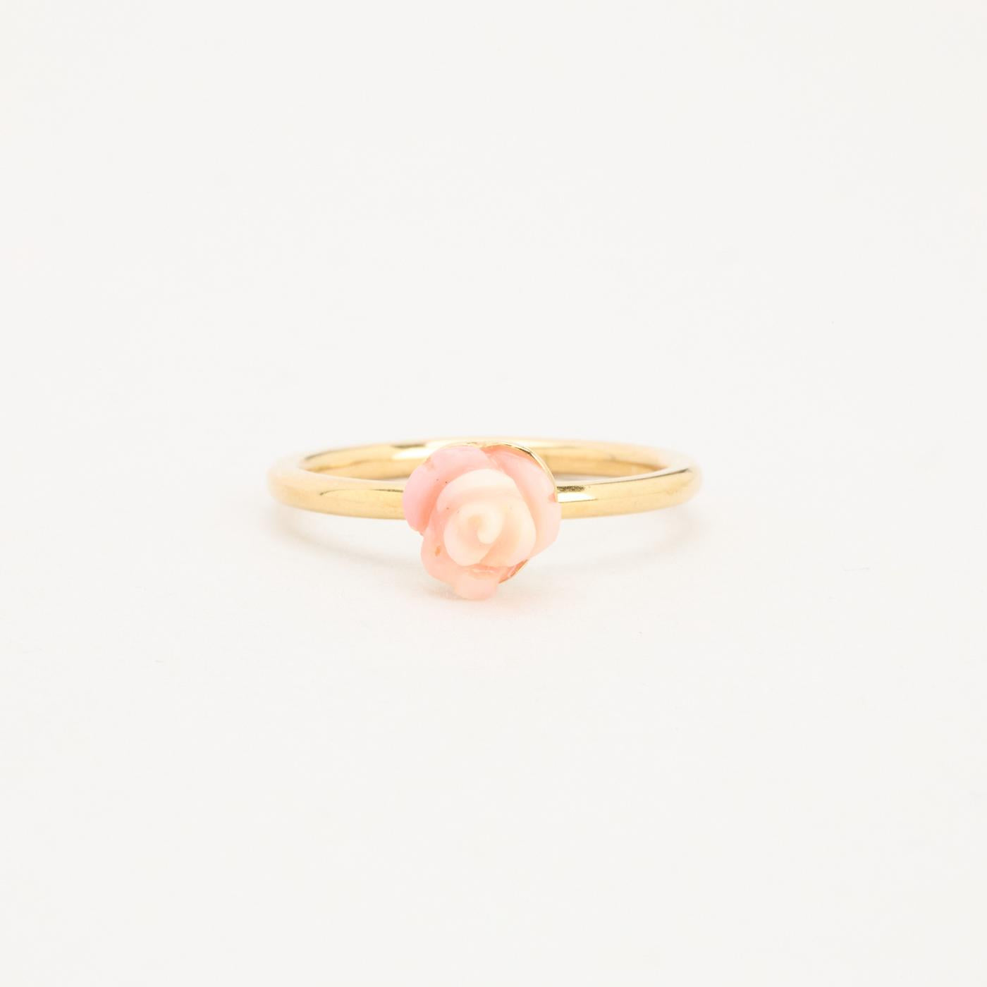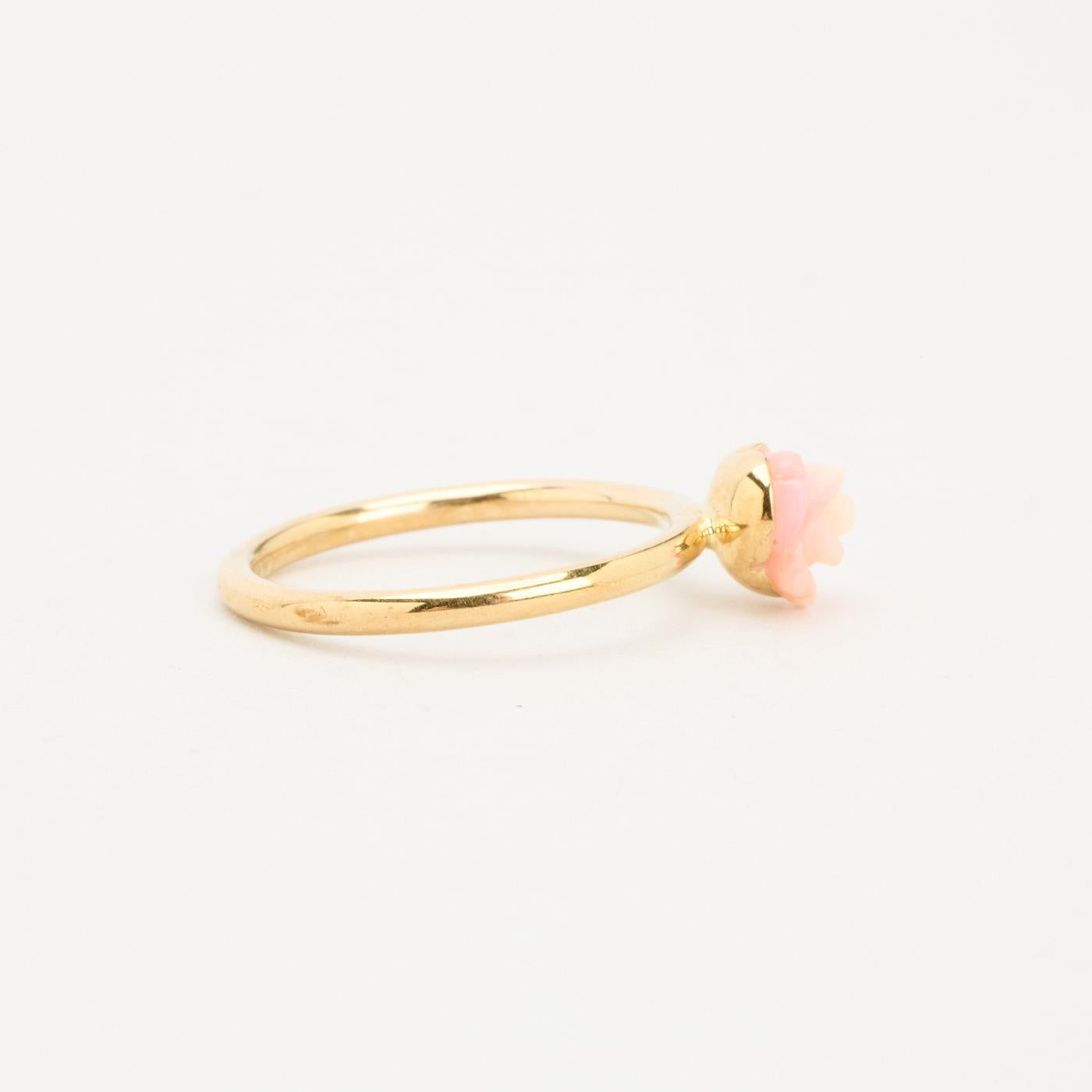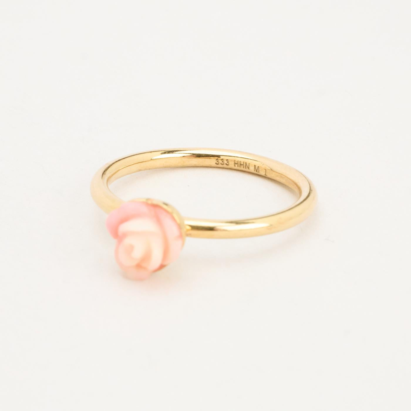Blomsterring i 8K guld med lyserød sten, str. 55, 1.2 g