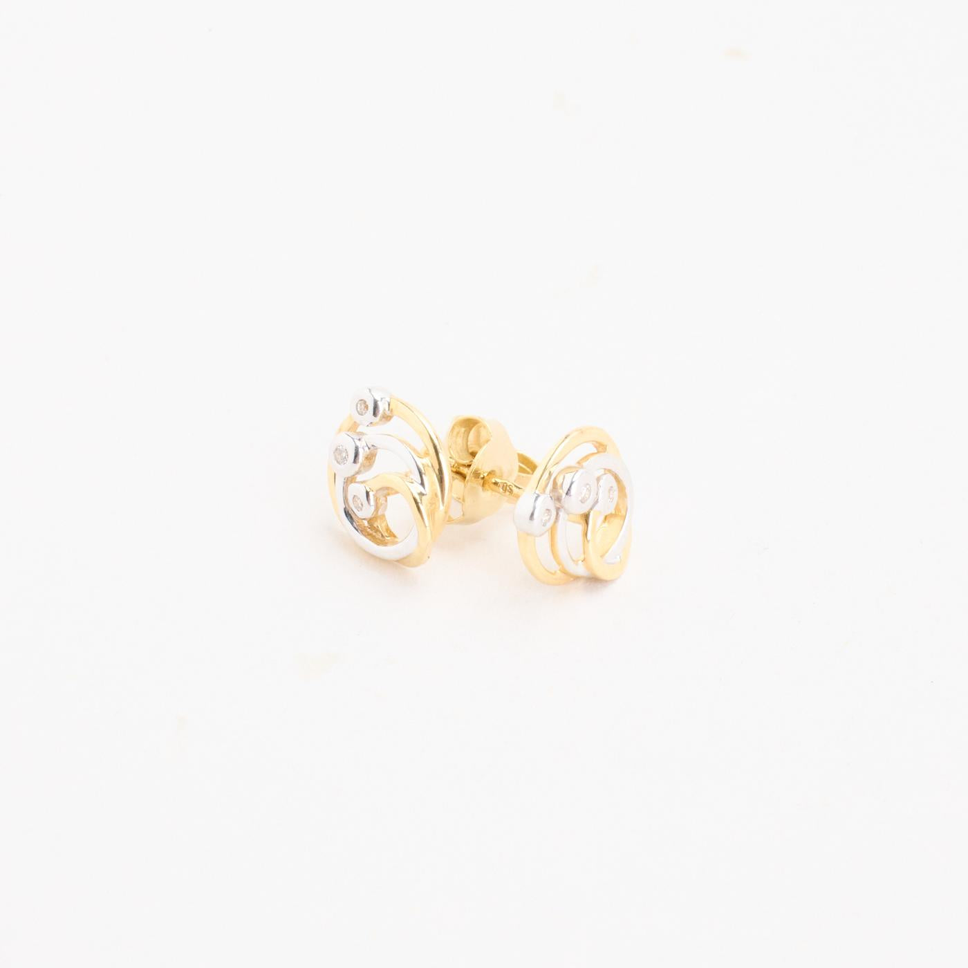 Øreringe med stik med diamant (0.02 ct) i 14K guld og hvidguld med en safir, 1.5 cm,,