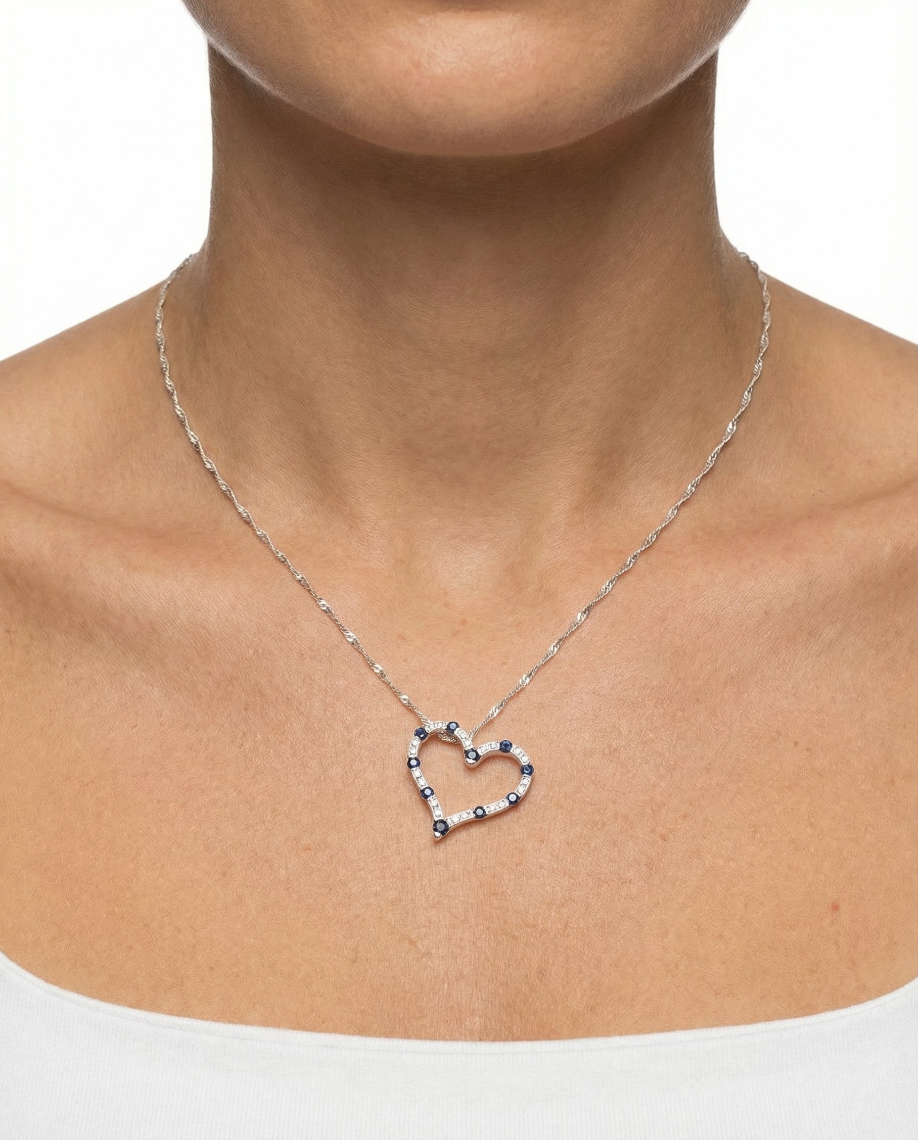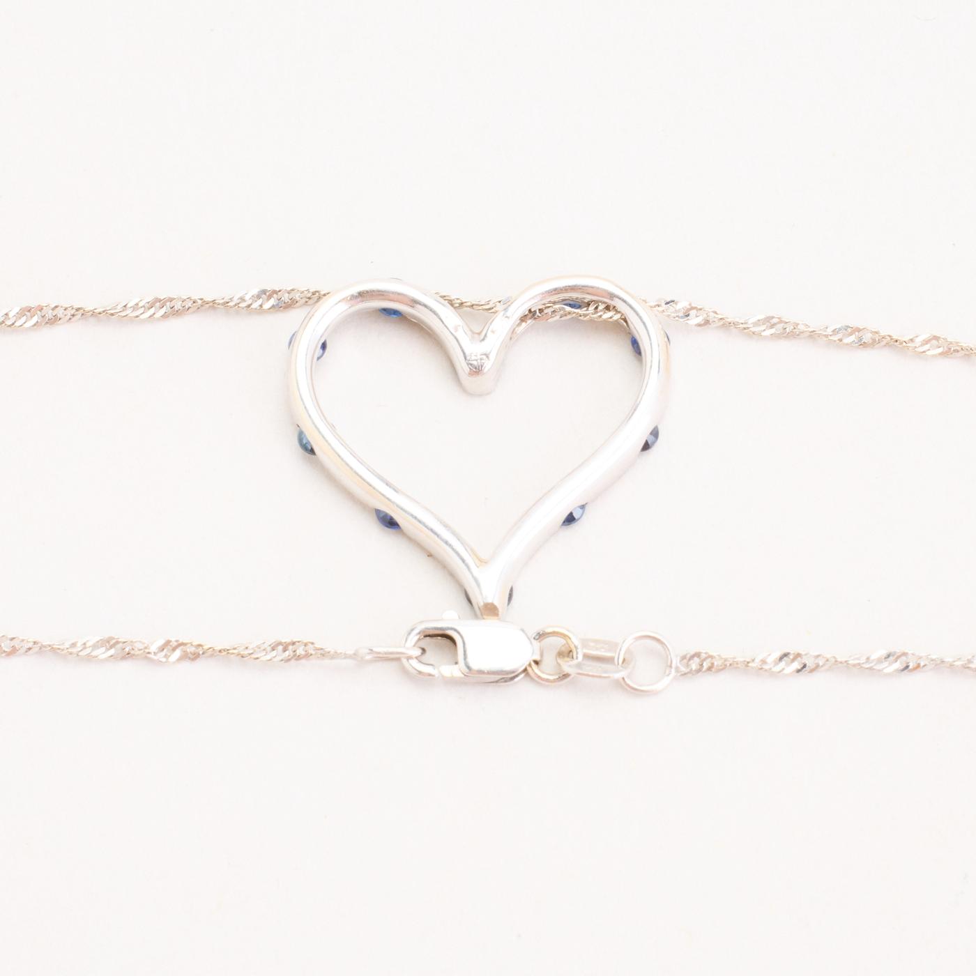 Singaporekæde Halskæde med diamant (0.14 ct) i 14K hvidguld med en safir, 41.5 cm,, 3.9 g