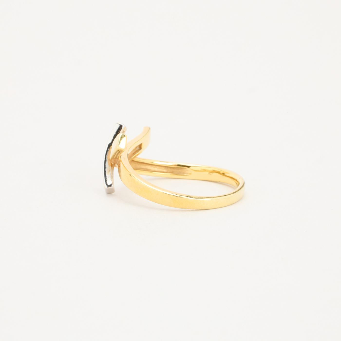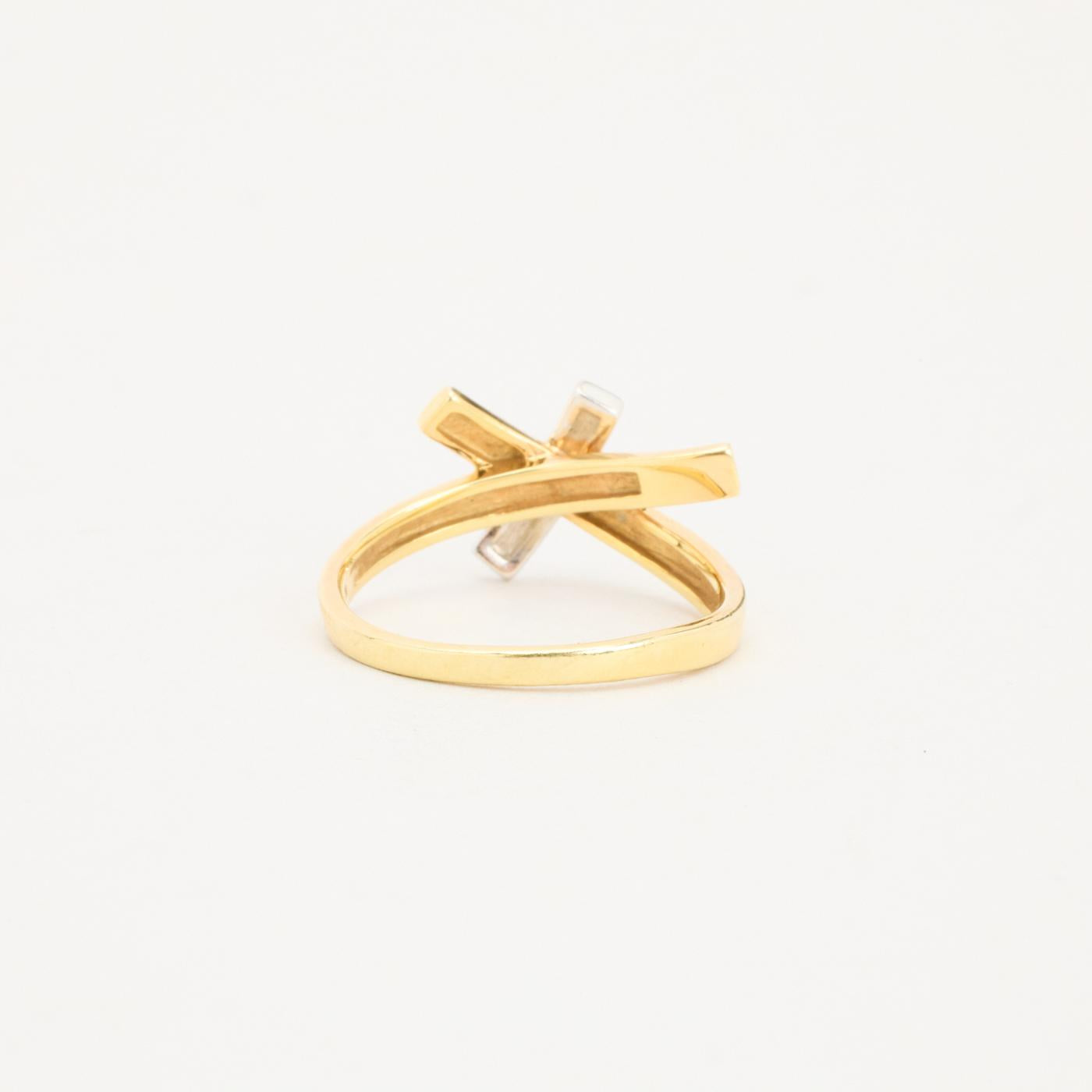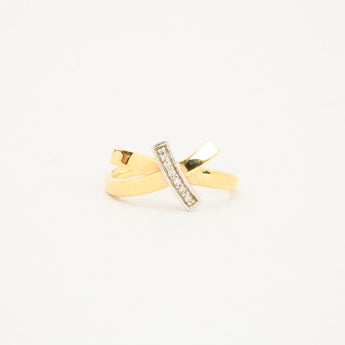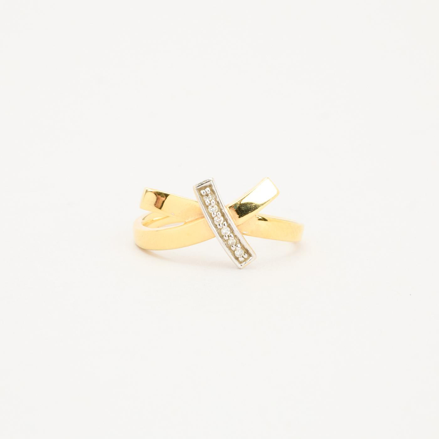 Crossoverring i 14K guld og hvidguld med en diamant (0.01 ct), Str. 54, 2.9 g