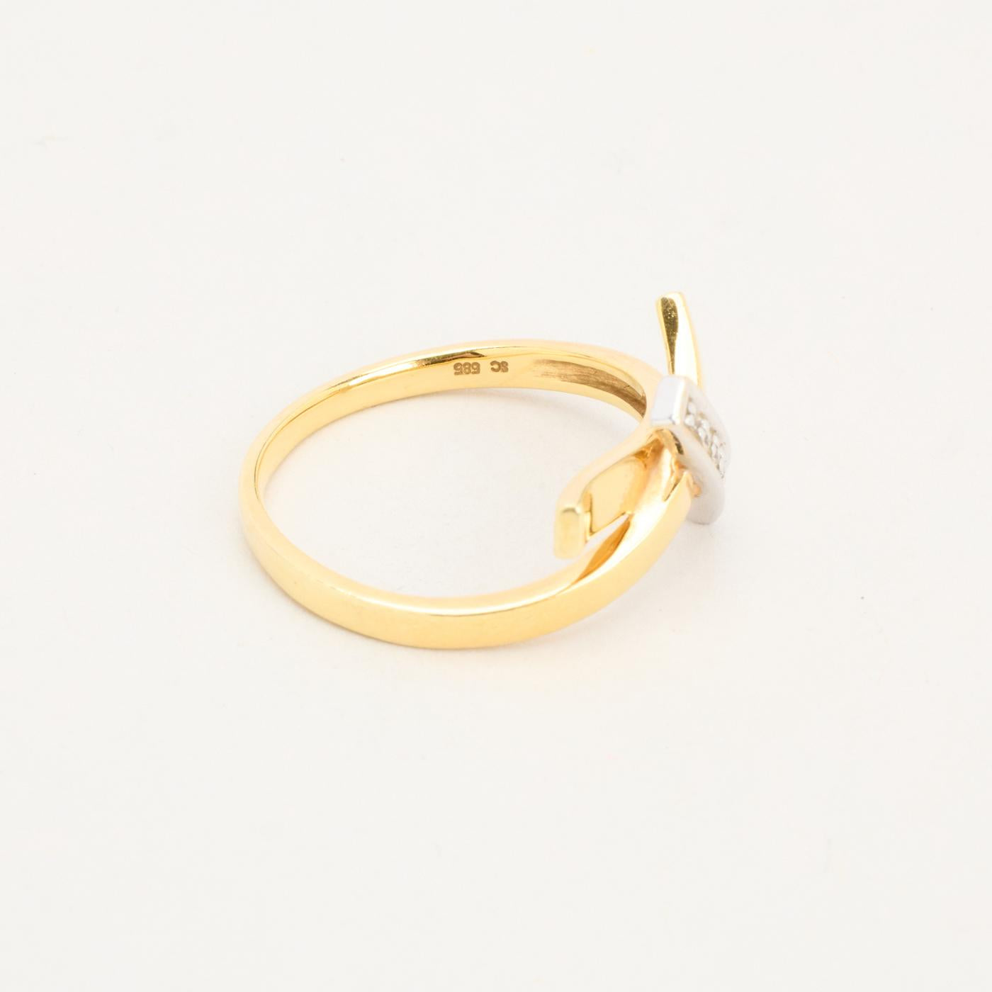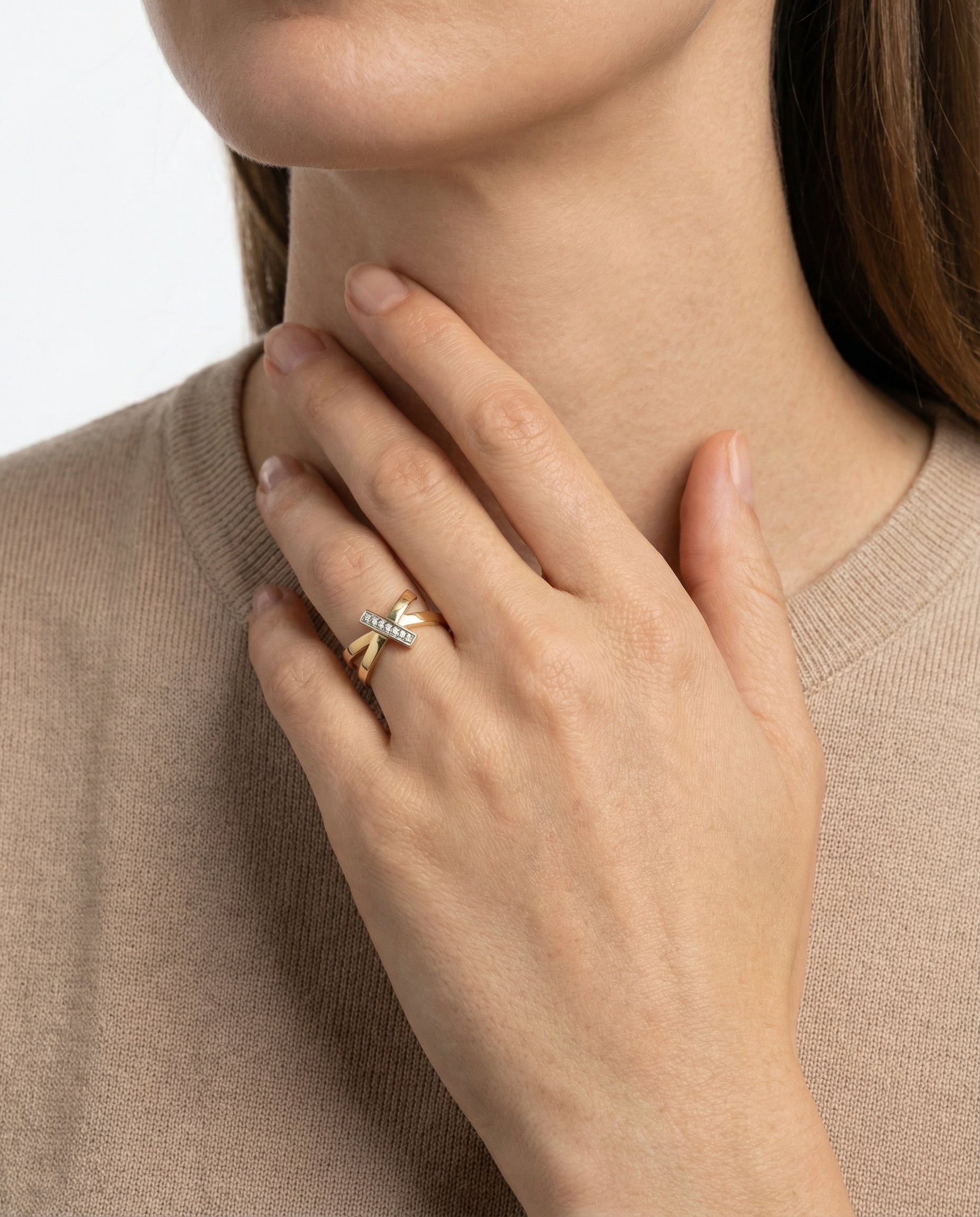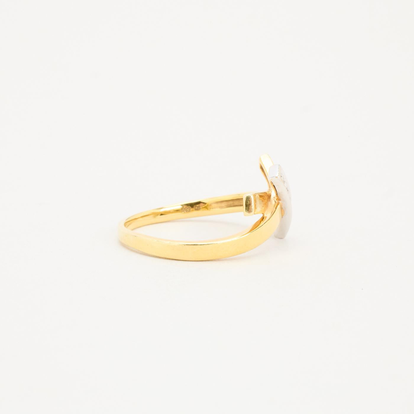 Crossoverring i 14K guld og hvidguld med en diamant (0.01 ct), Str. 54, 2.9 g
