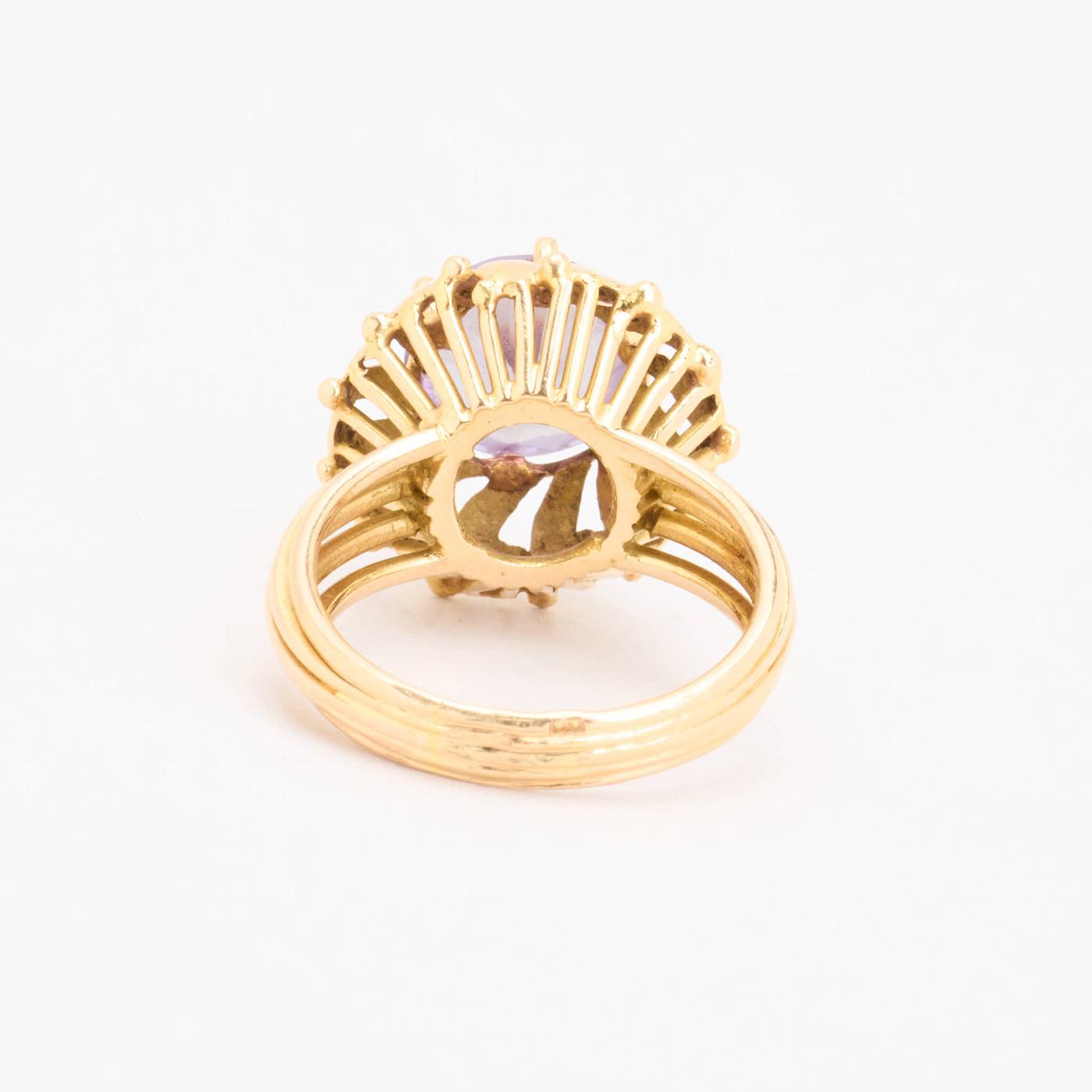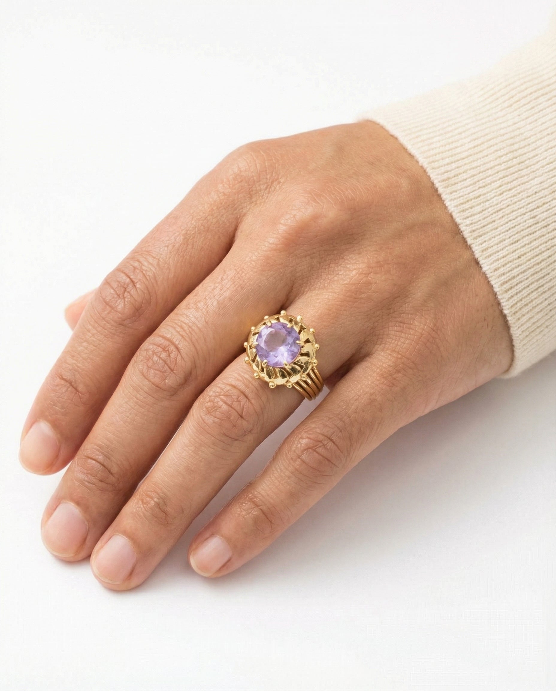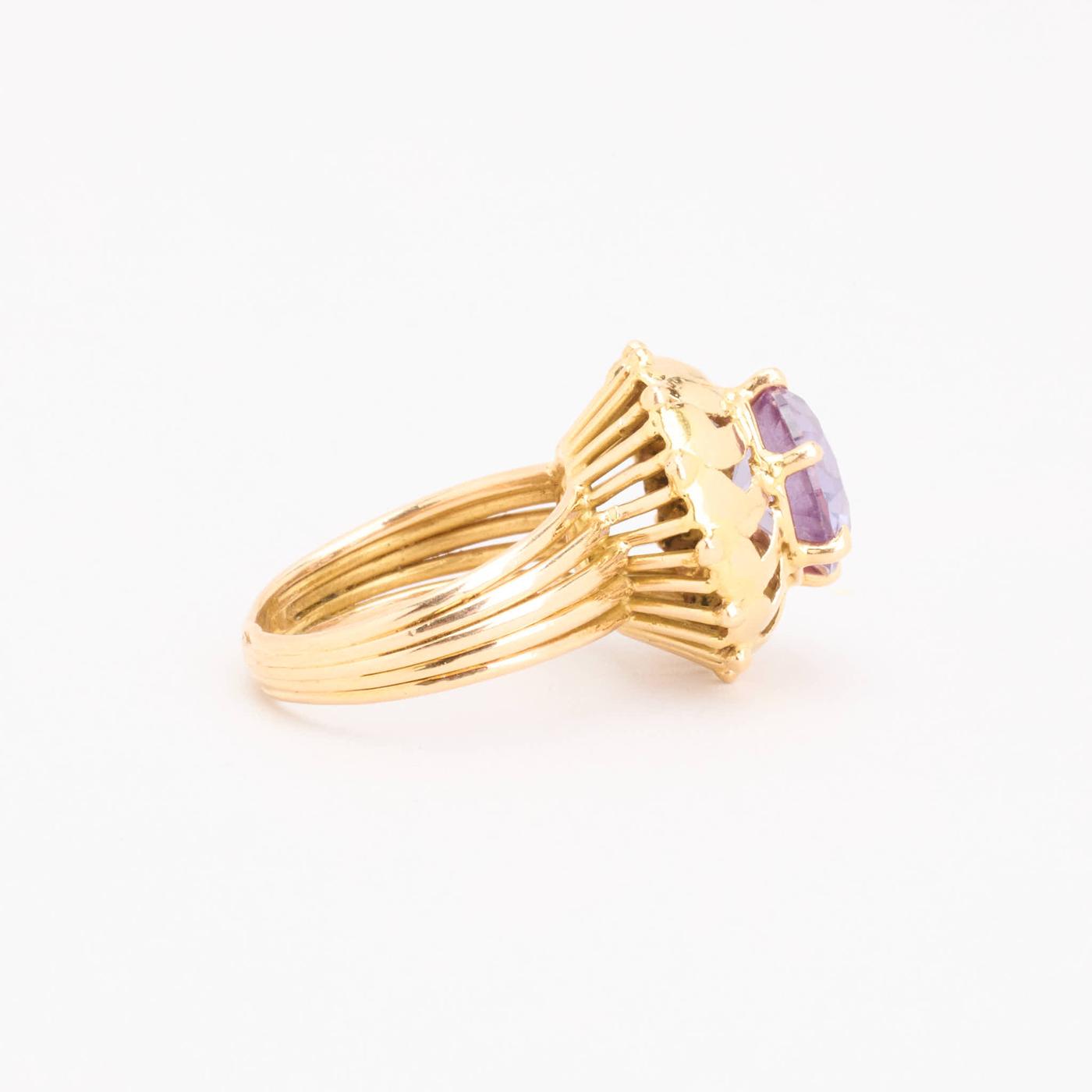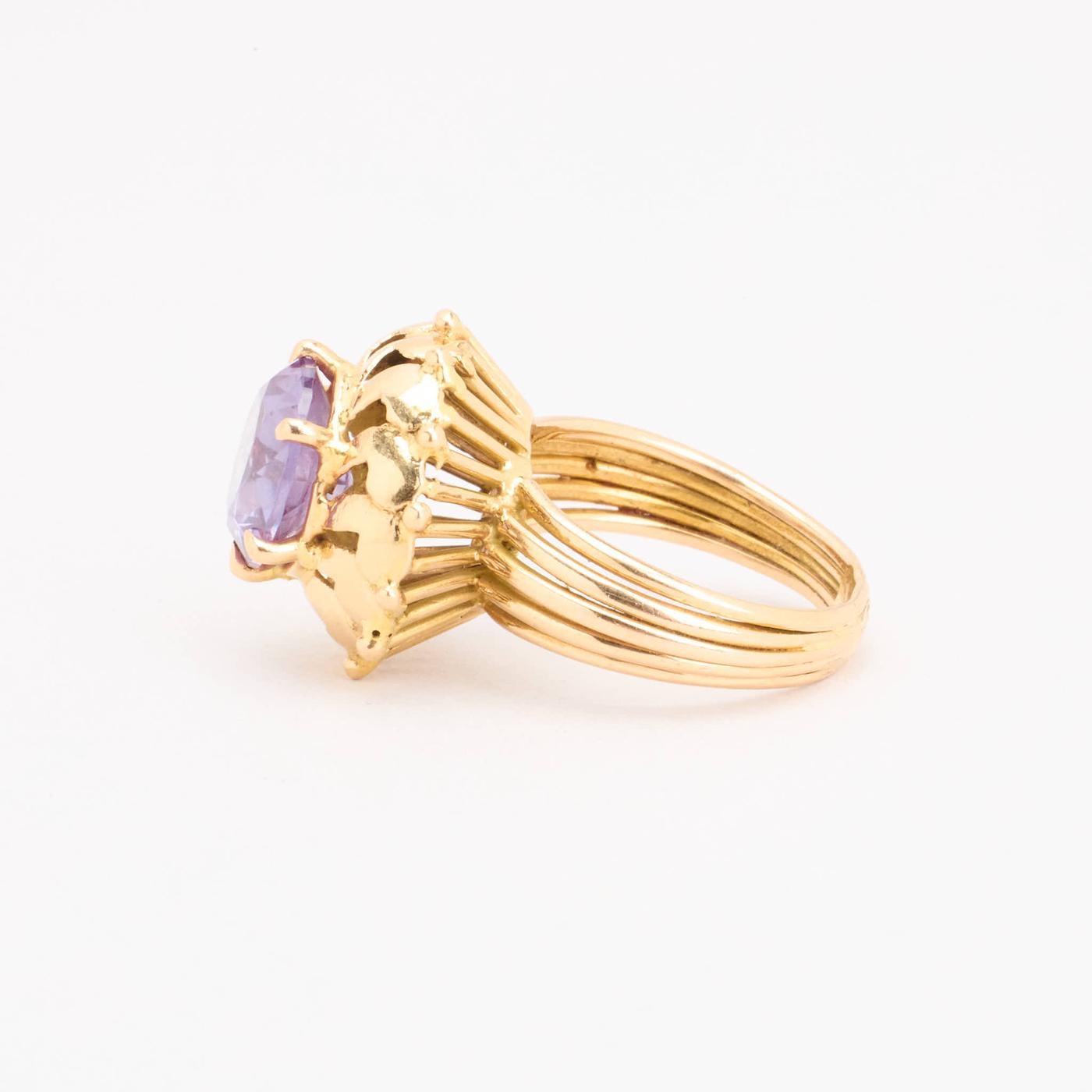 Cocktailring i 18K guld med lilla sten, Str. 53