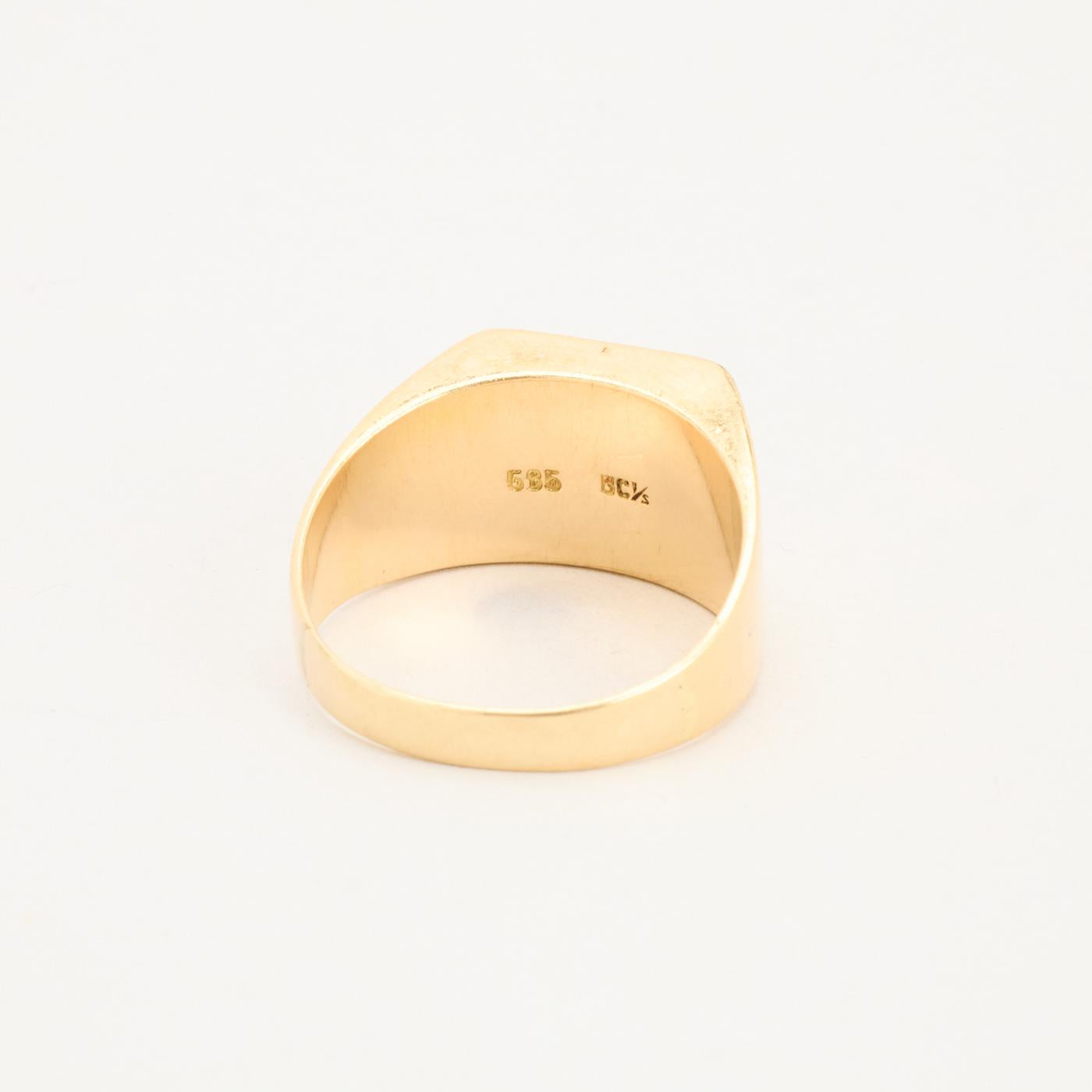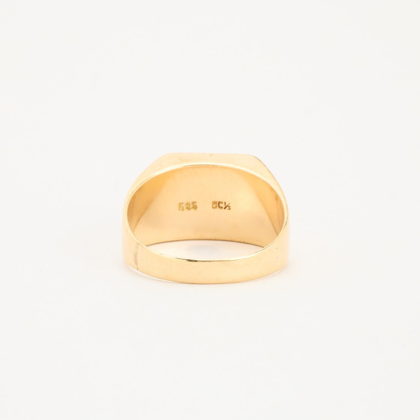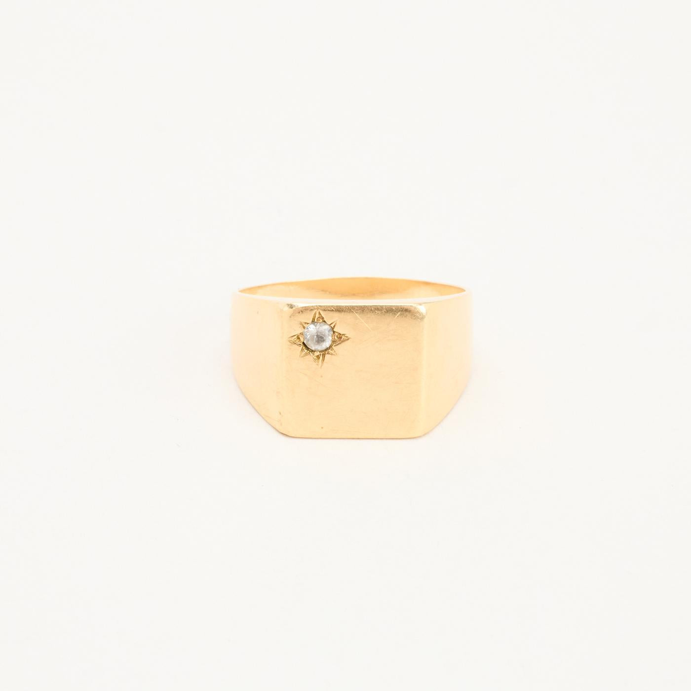 Signetring i 14K guld med hvid sten, str. 67, 7 g