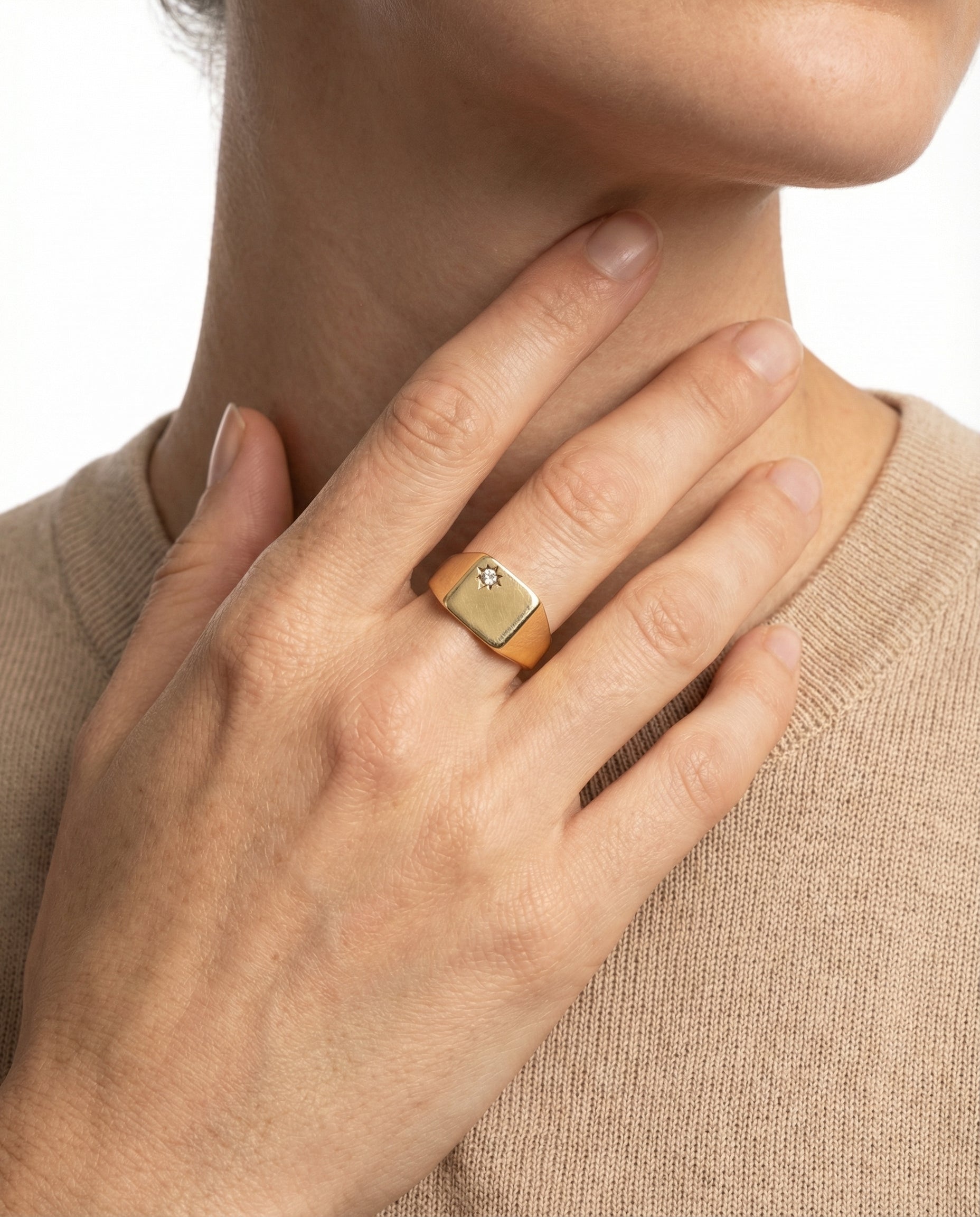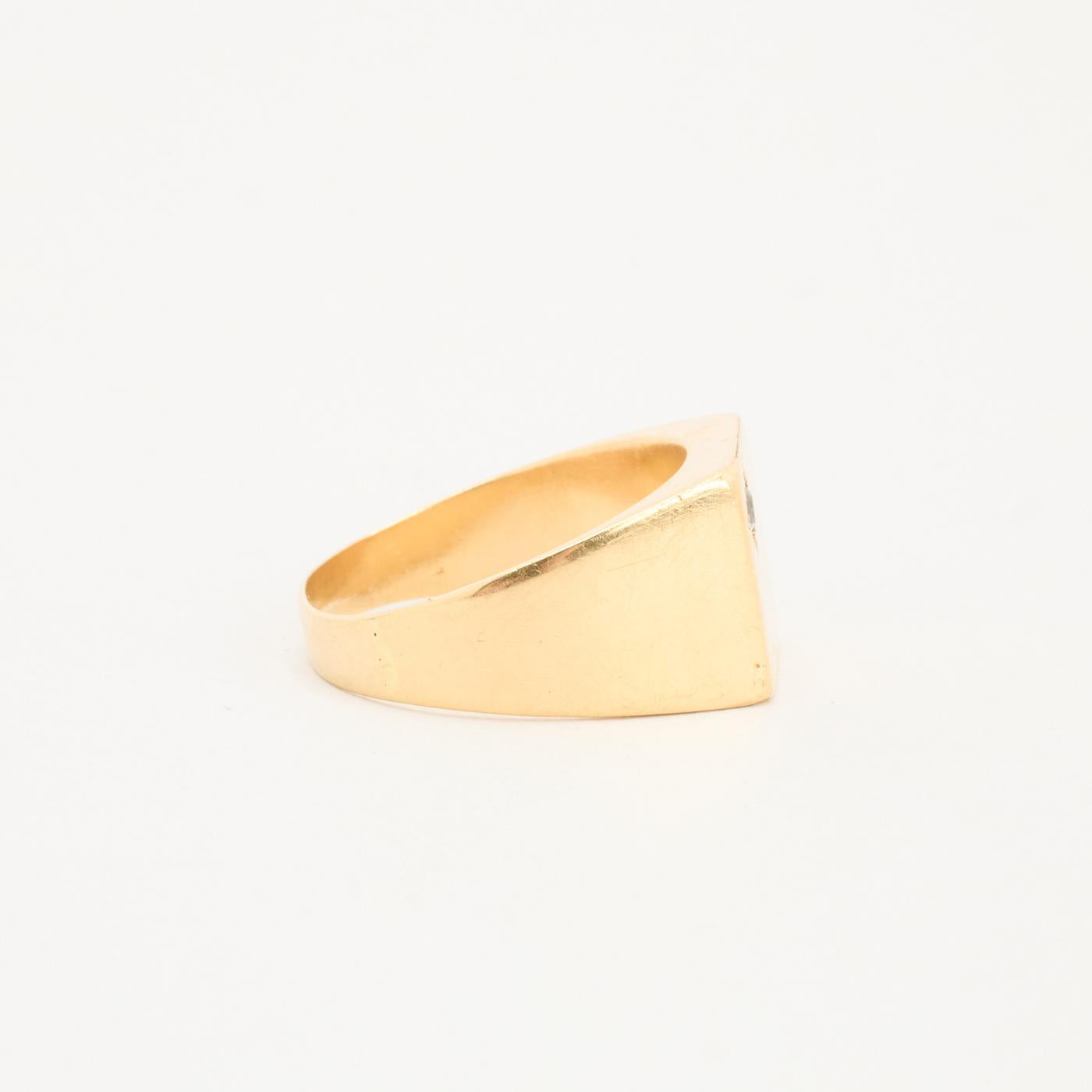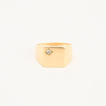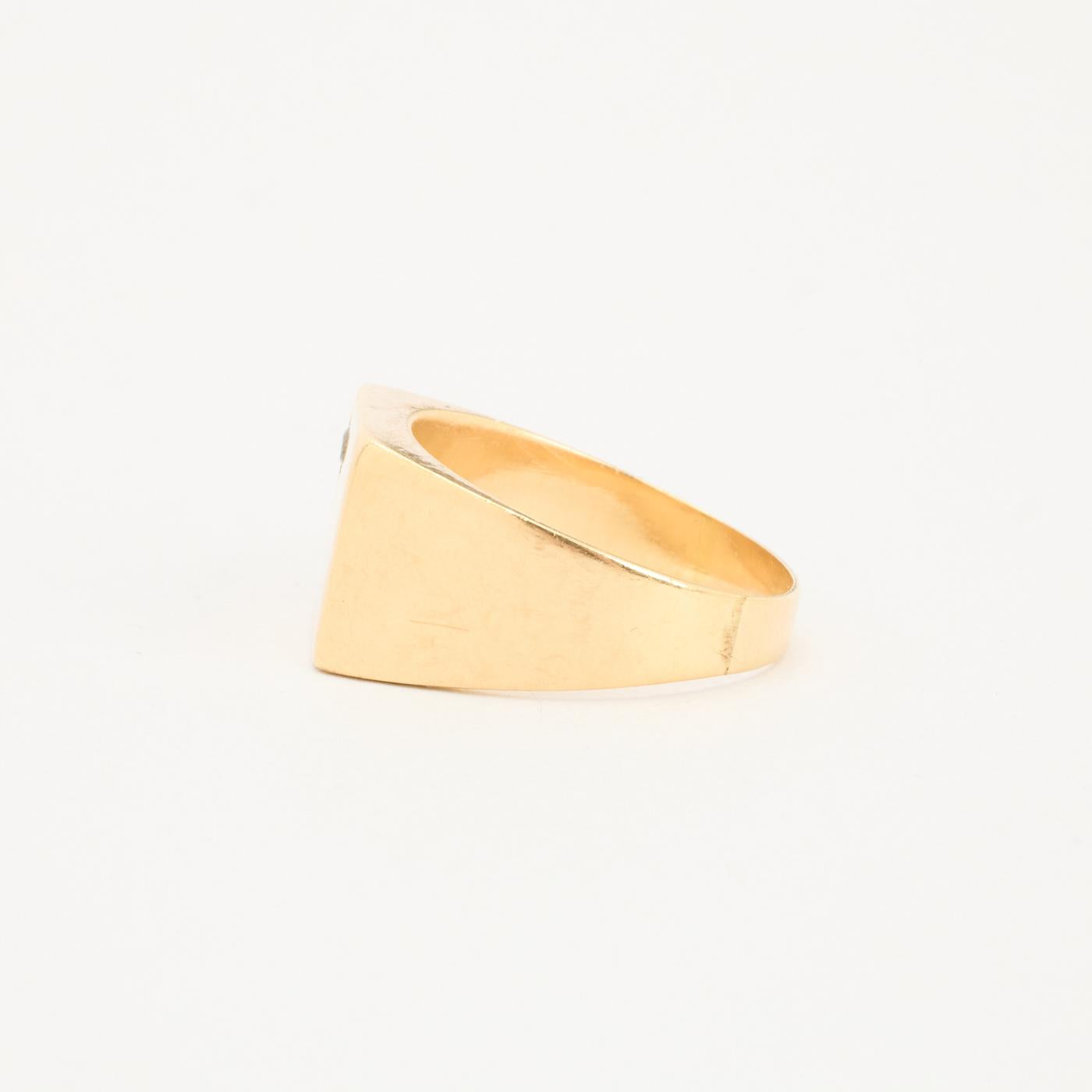 Signetring i 14K guld med hvid sten, str. 67, 7 g