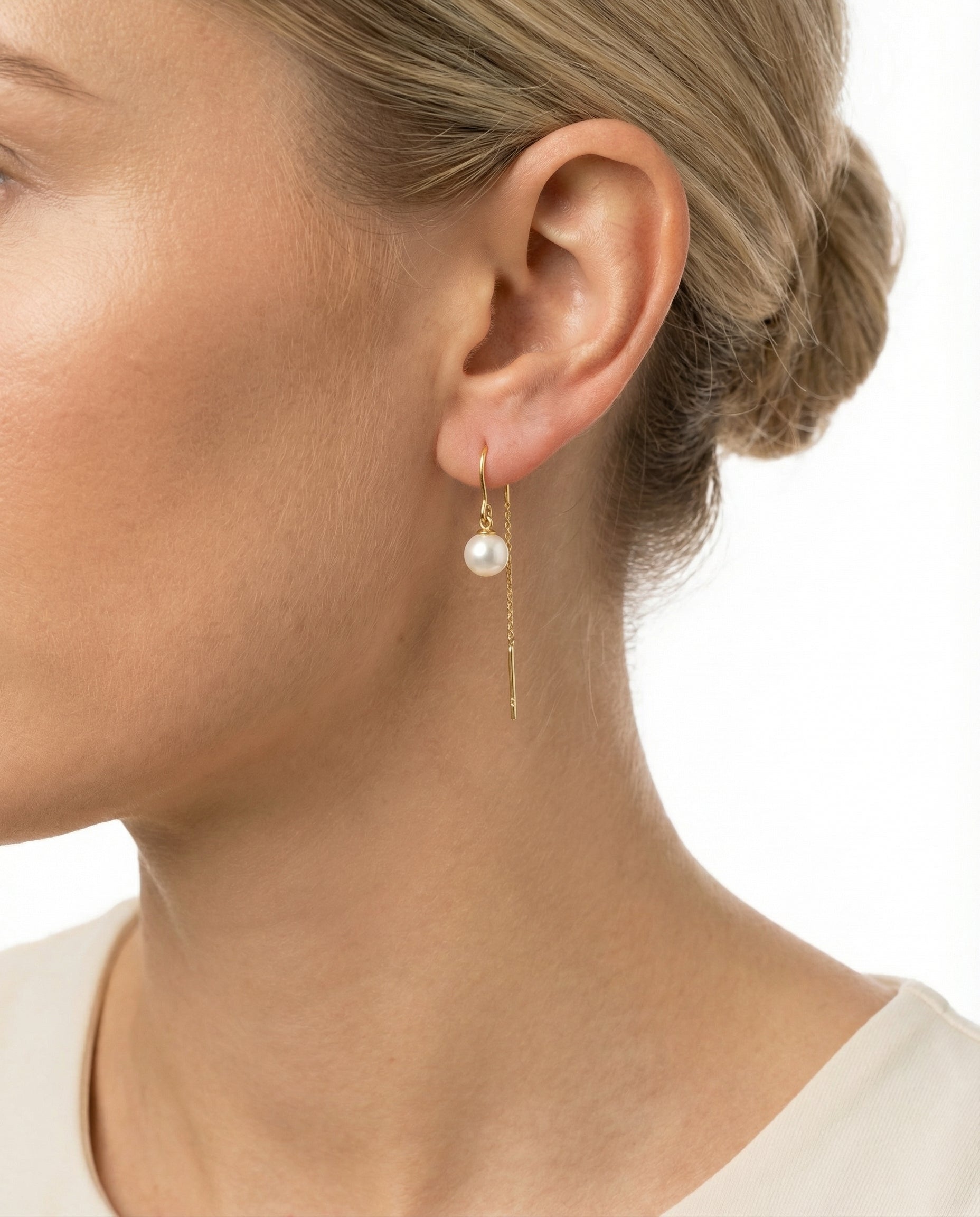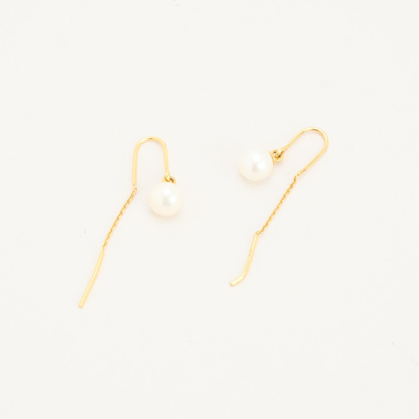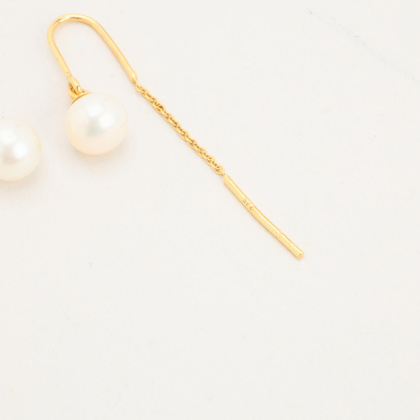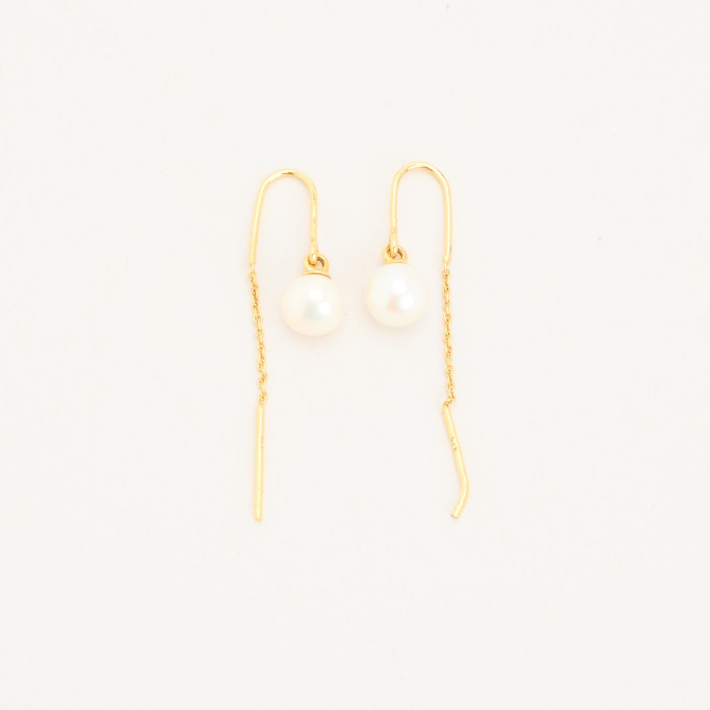 Ørehængere i 8K guld med perler, 3,5 cm, 0,65 g