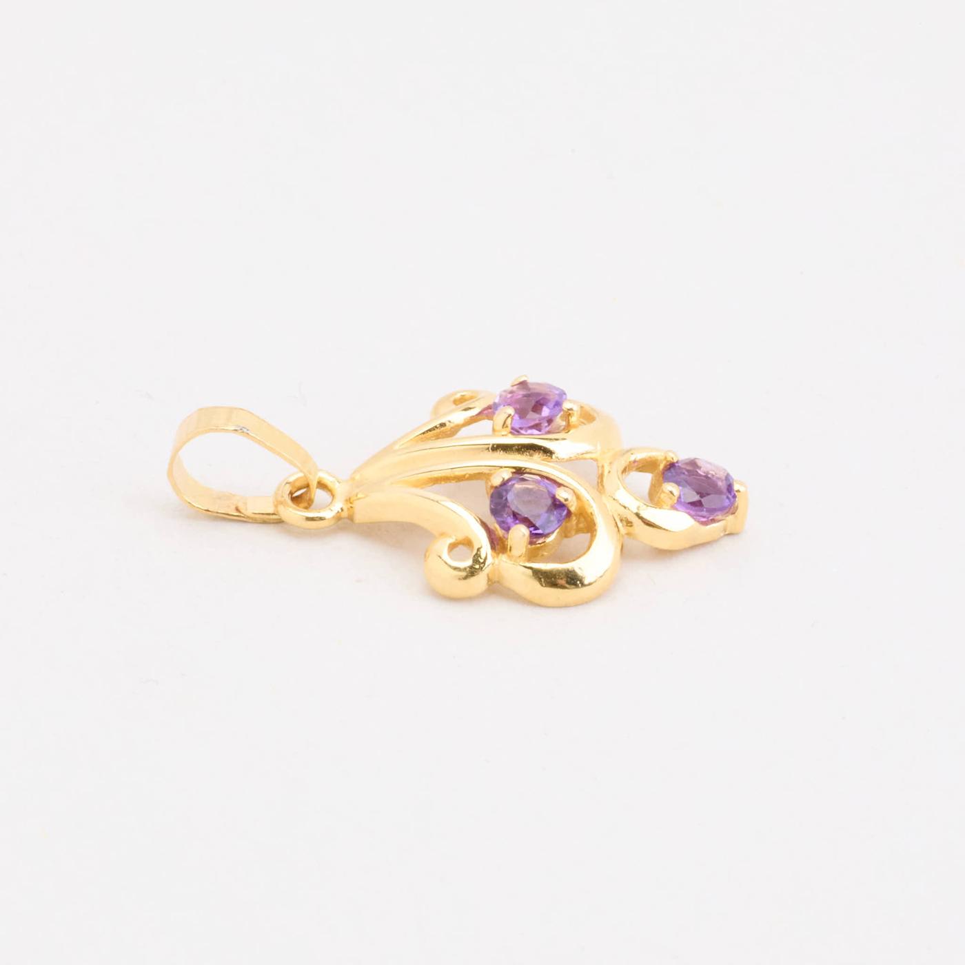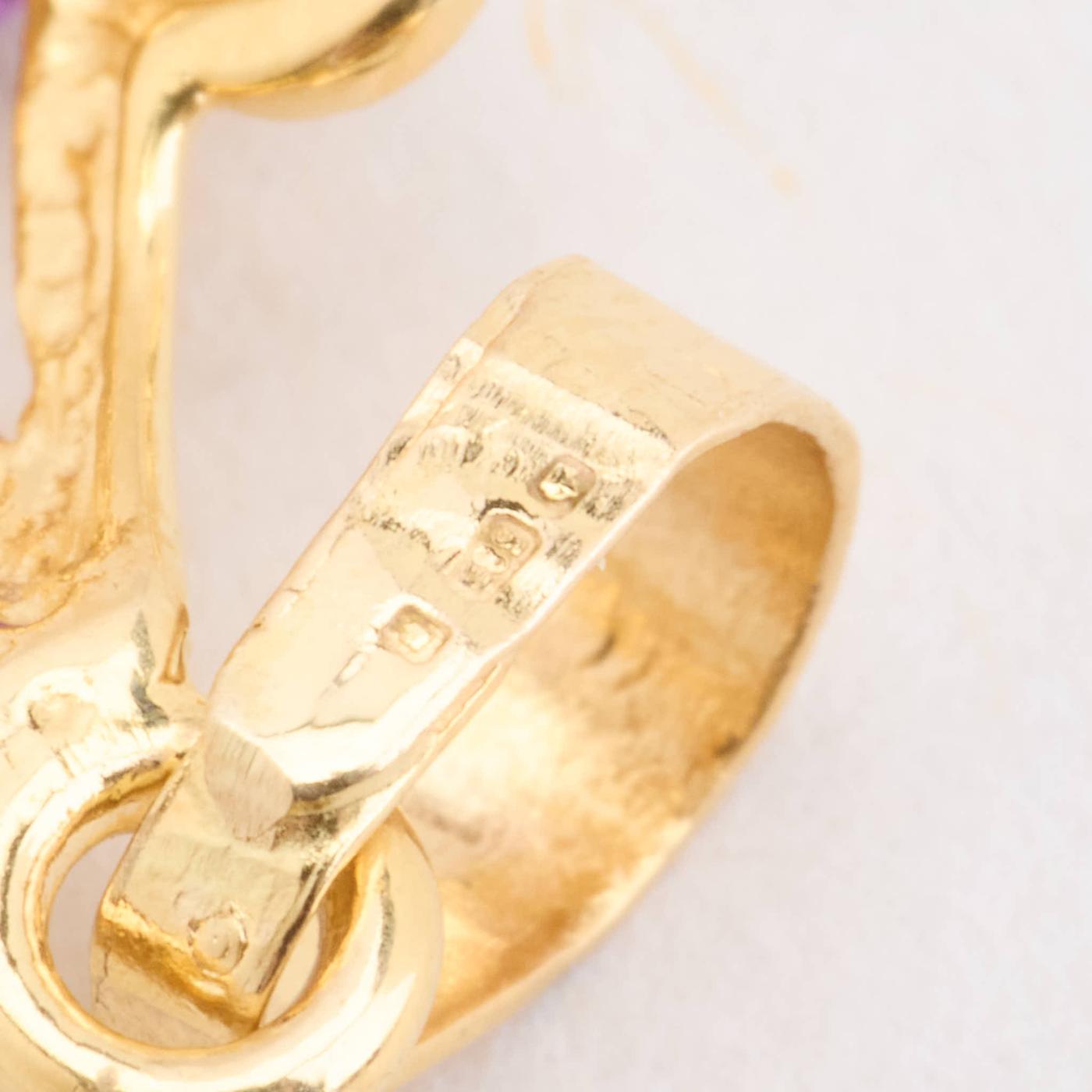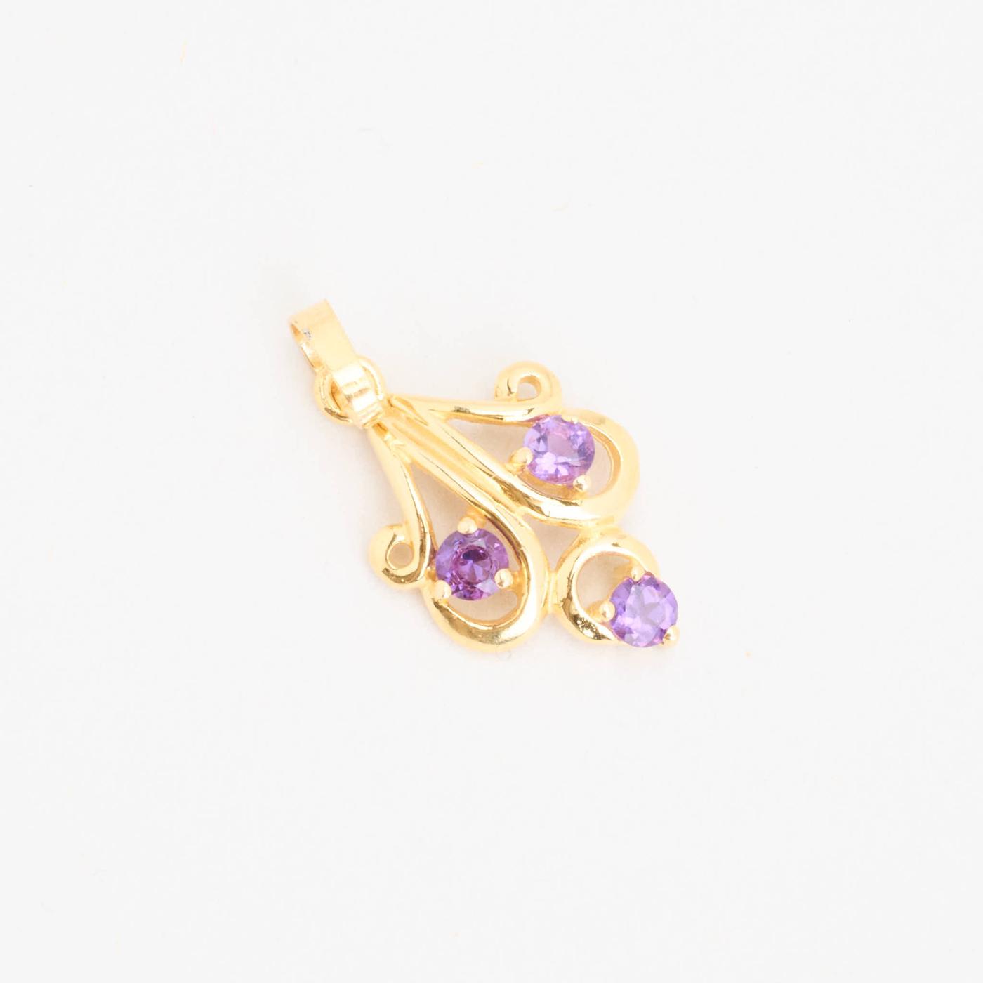 Vedhæng i 14 karat med lilla sten, 2.2 cm