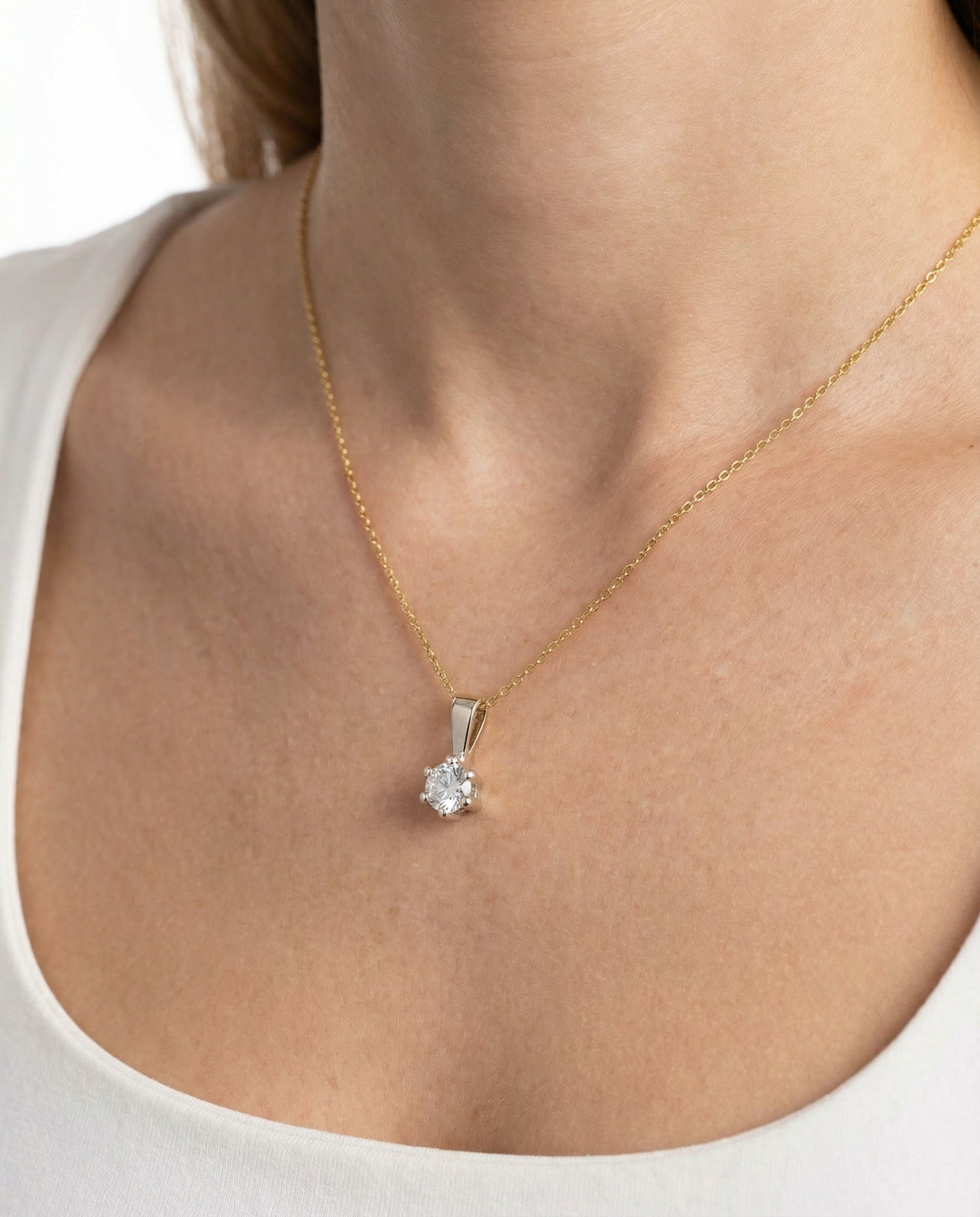 Solitaire vedhæng i 18K hvidguld med en diamant (0.27 ct), 1.2 cm, 0.5 g