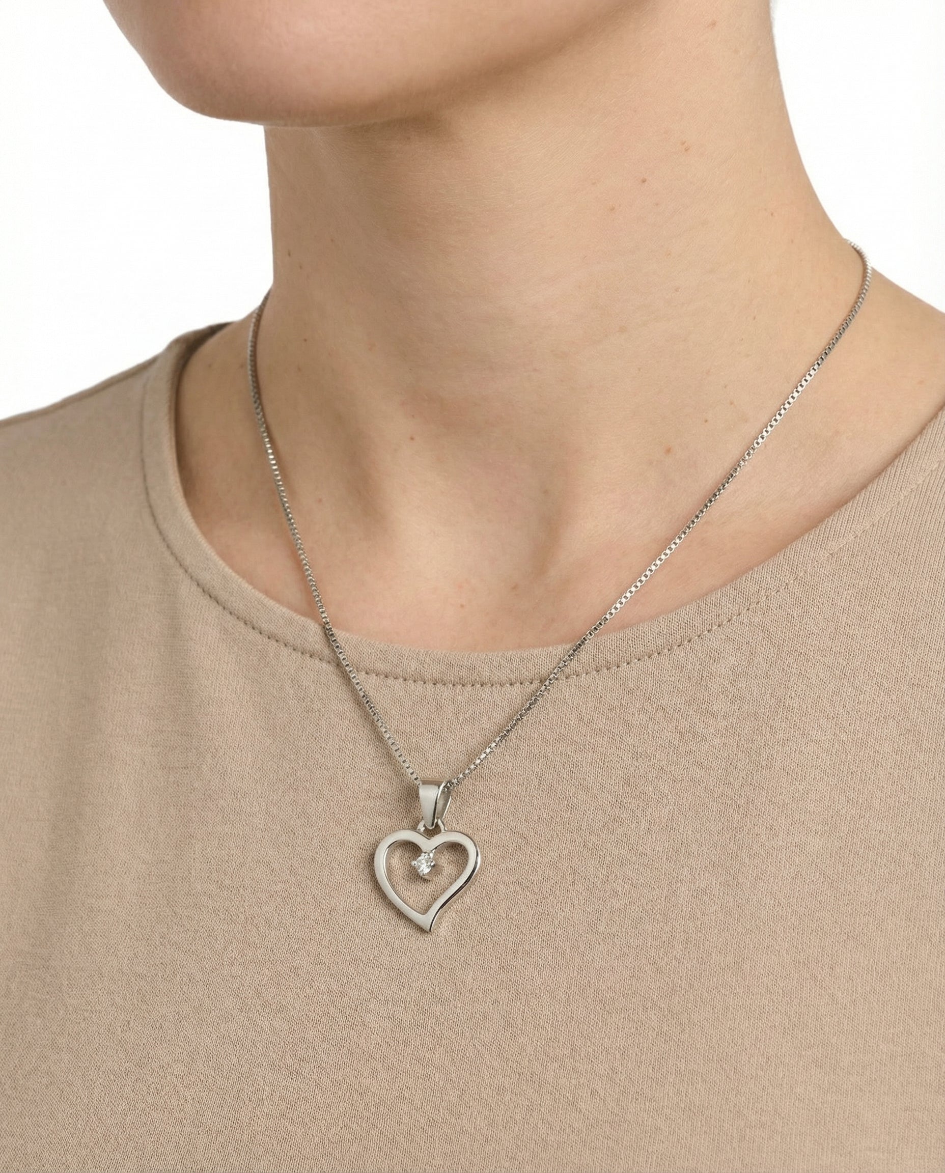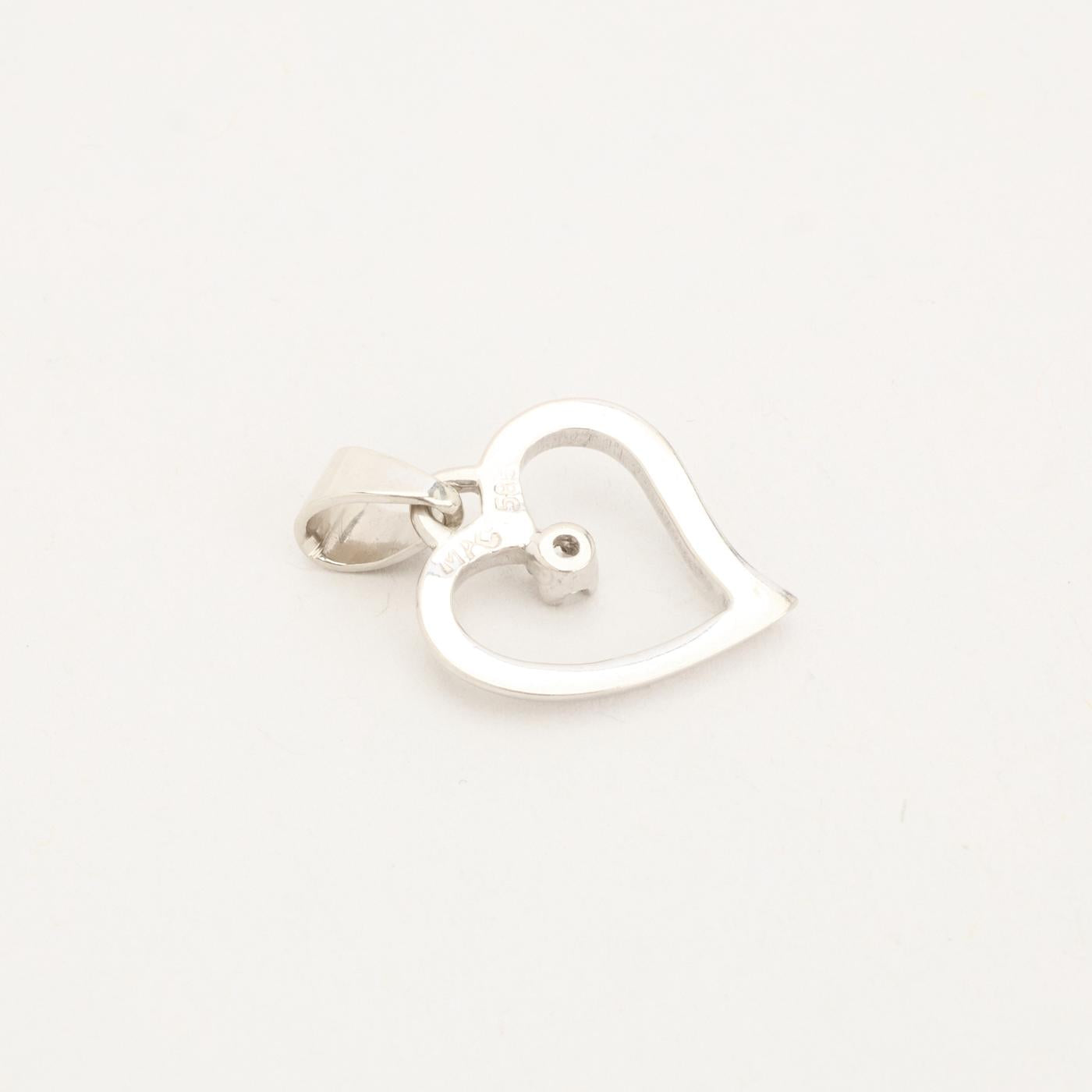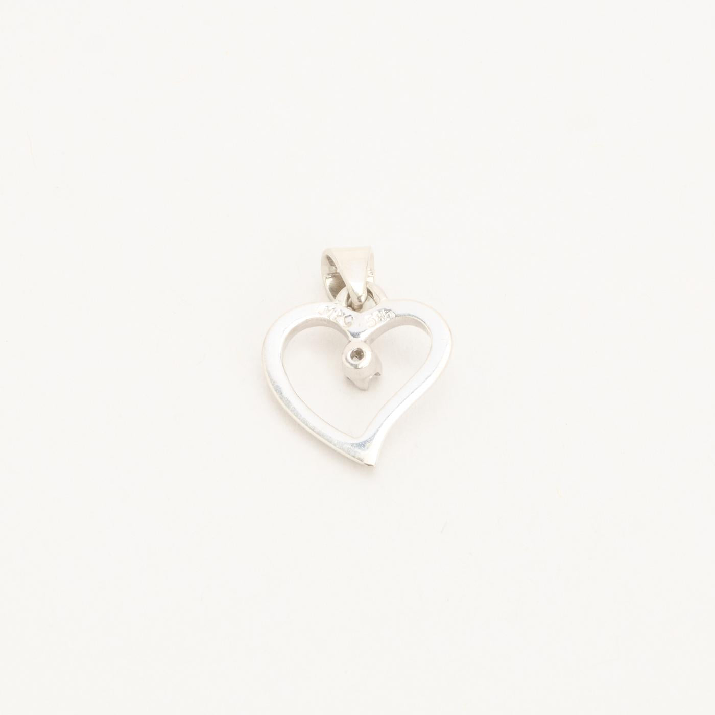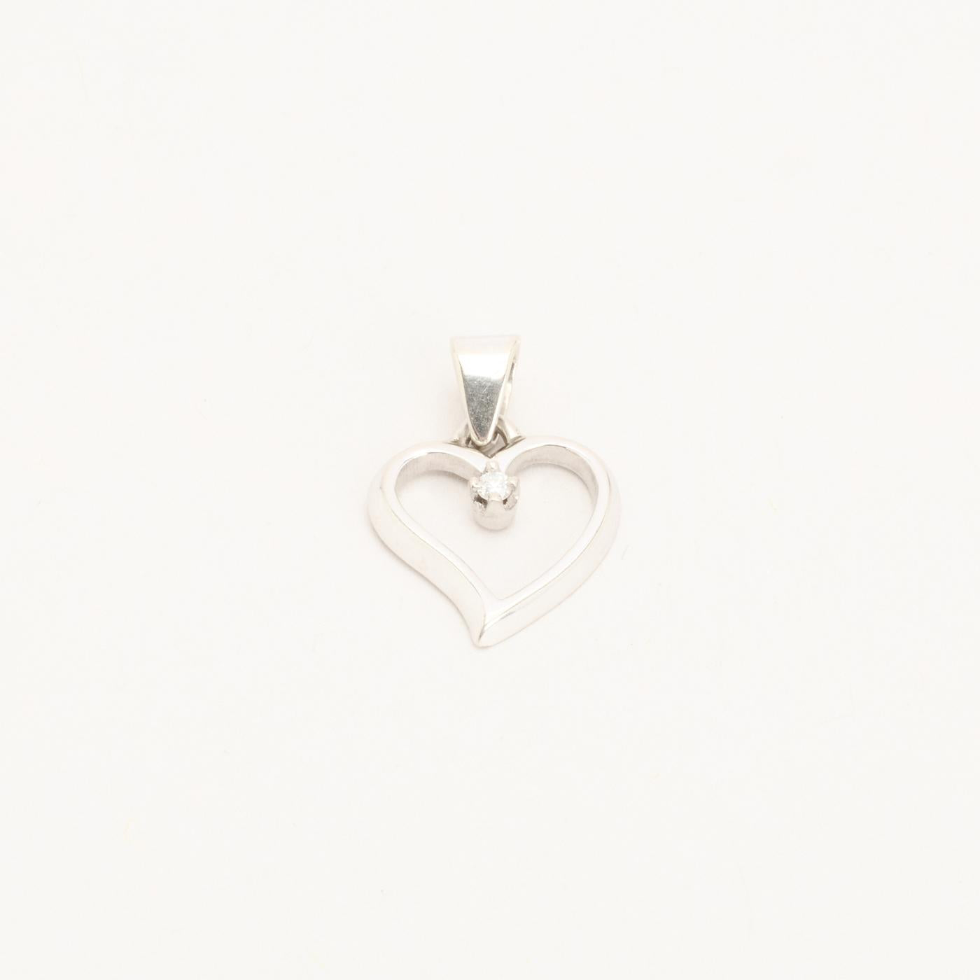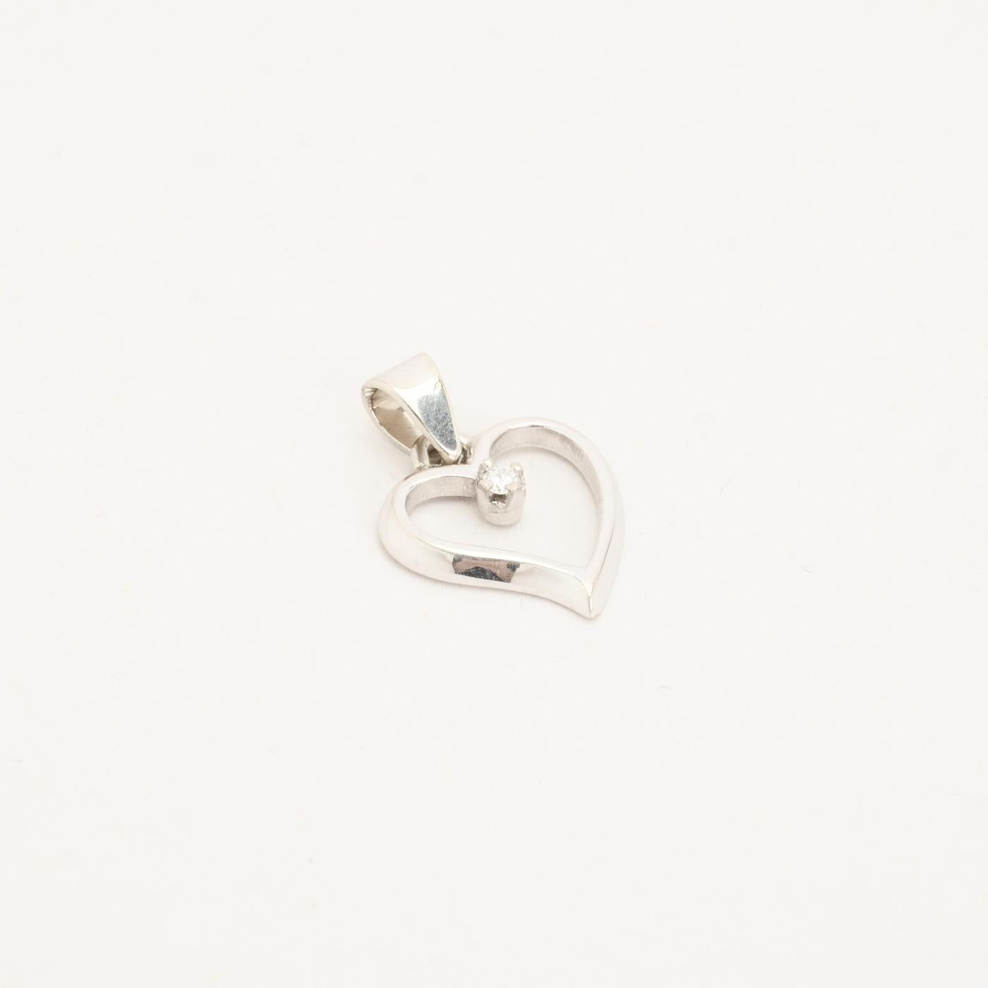 Hjerte vedhæng med diamant (0.02 ct) i 14K hvidguld, 2 cm, 1.5 g