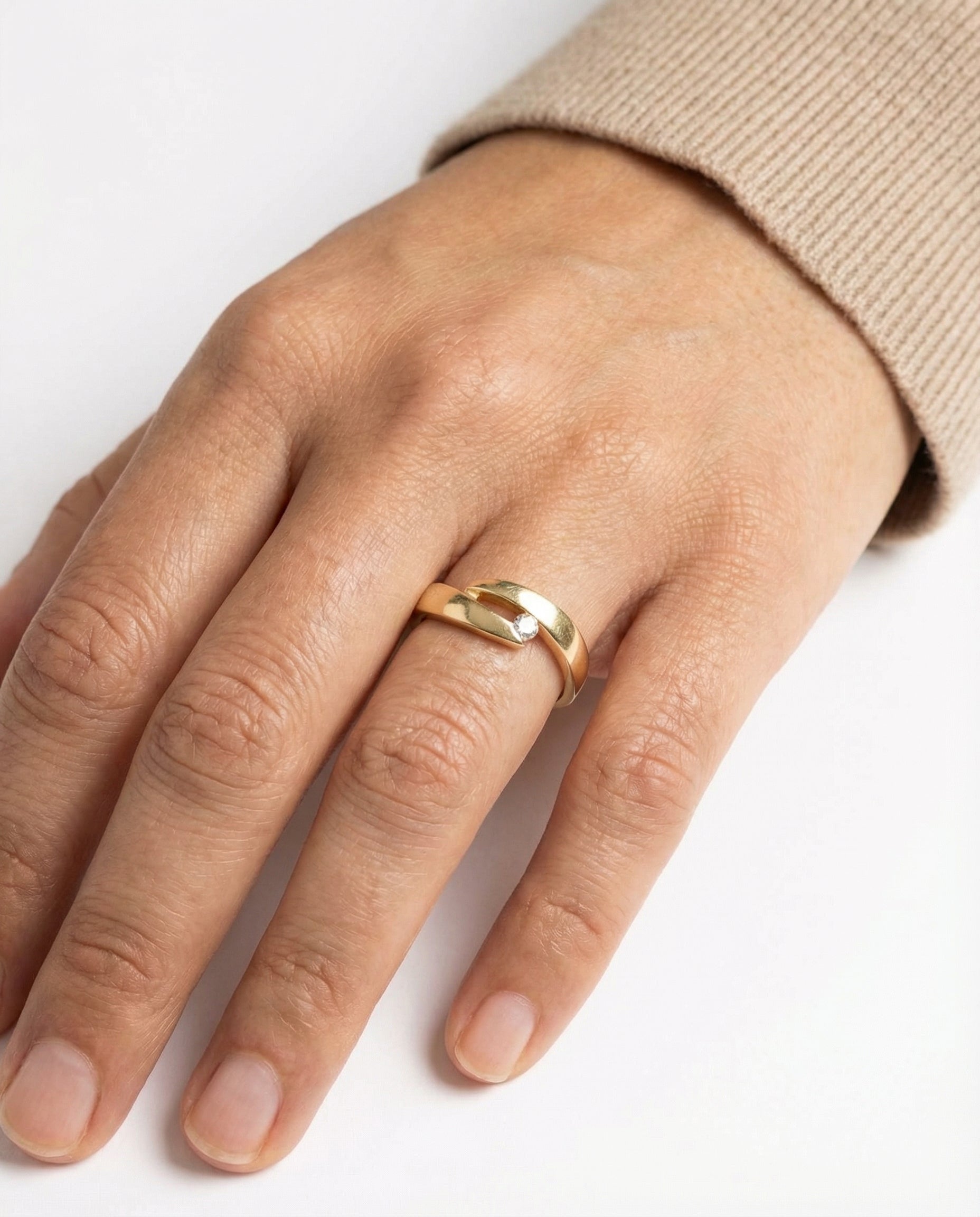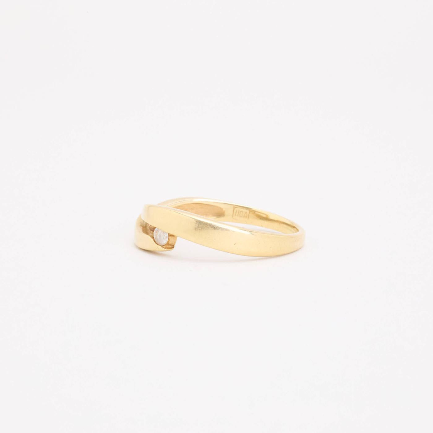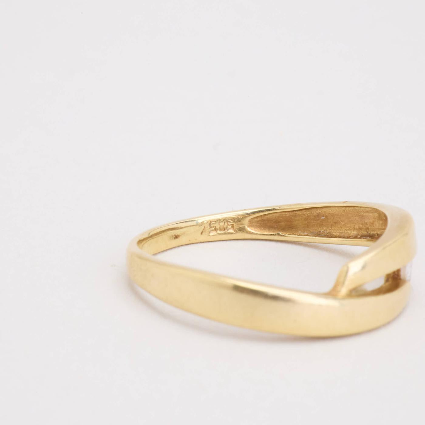 Crossoverring i 14K guld med zirkonia, Str. 53, 2.2 g