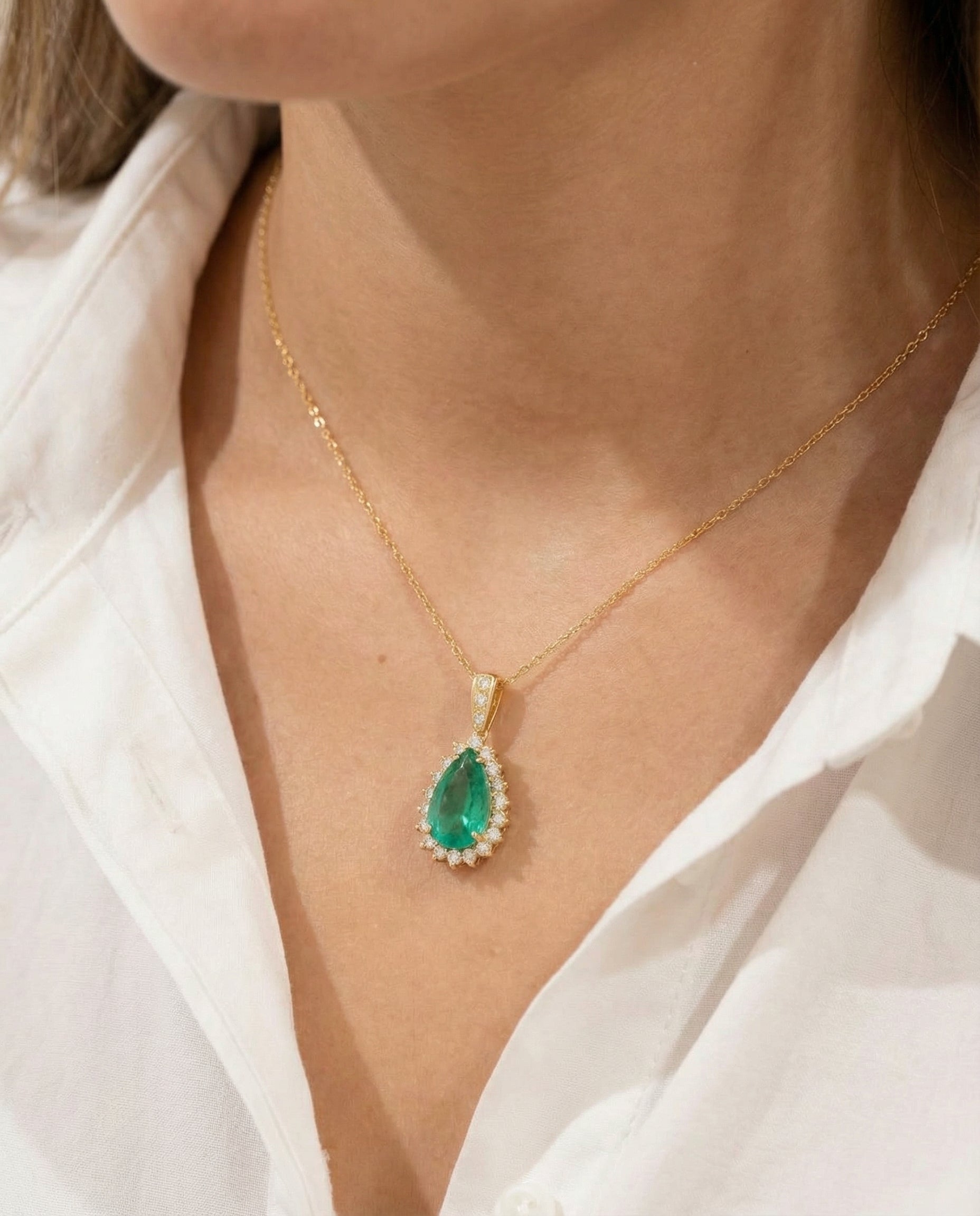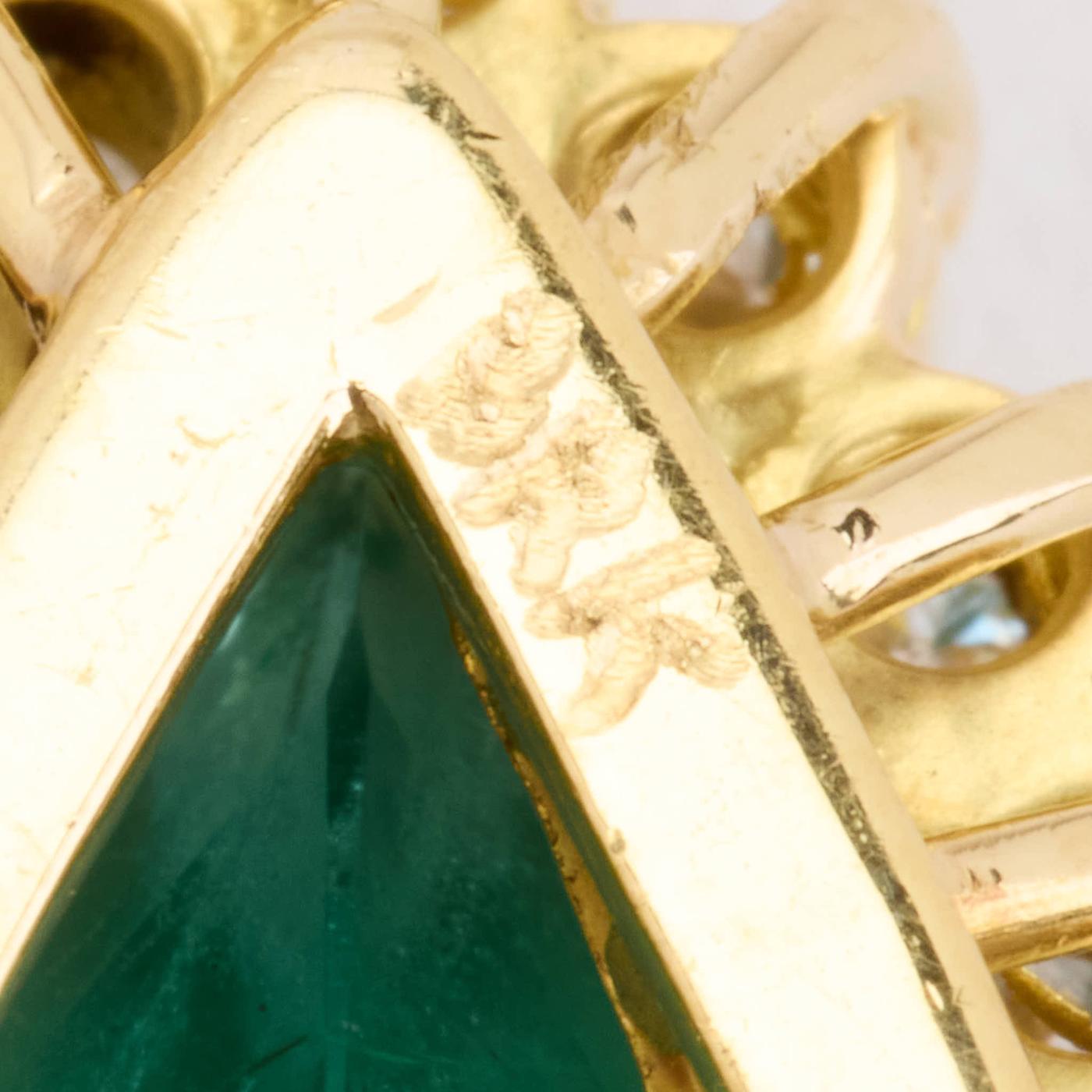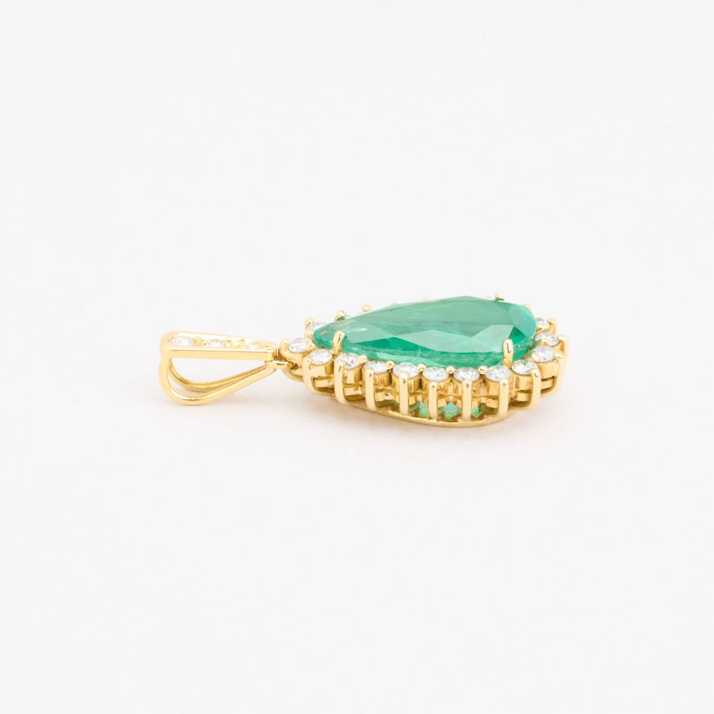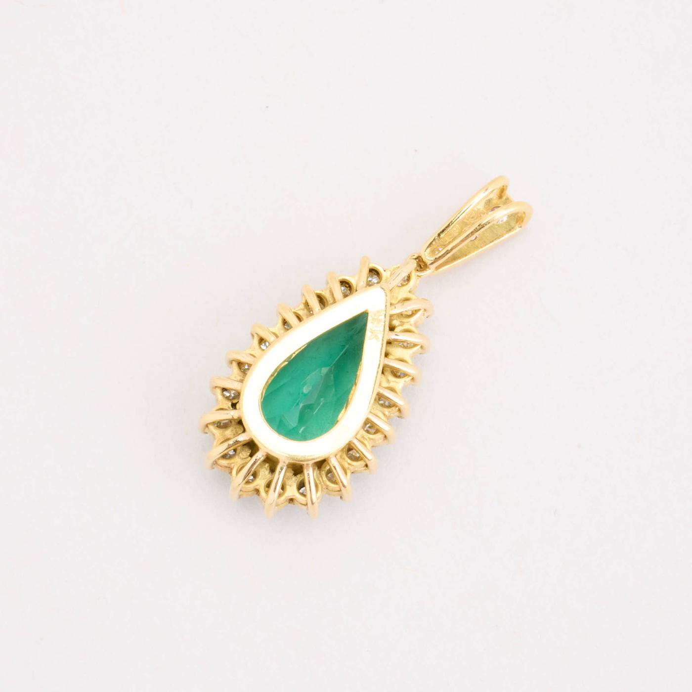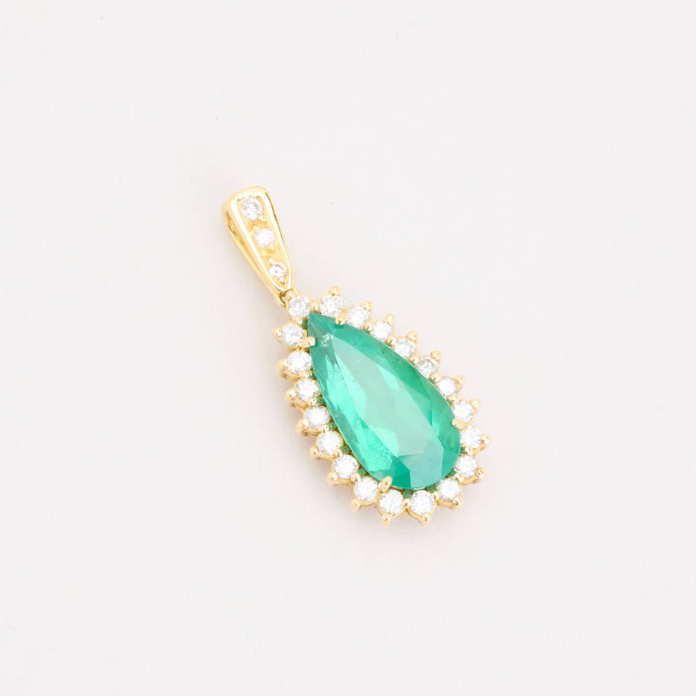 Roset vedhæng med diamant (0.72 ct) i 18 karat med en Smaragd, 3 cm