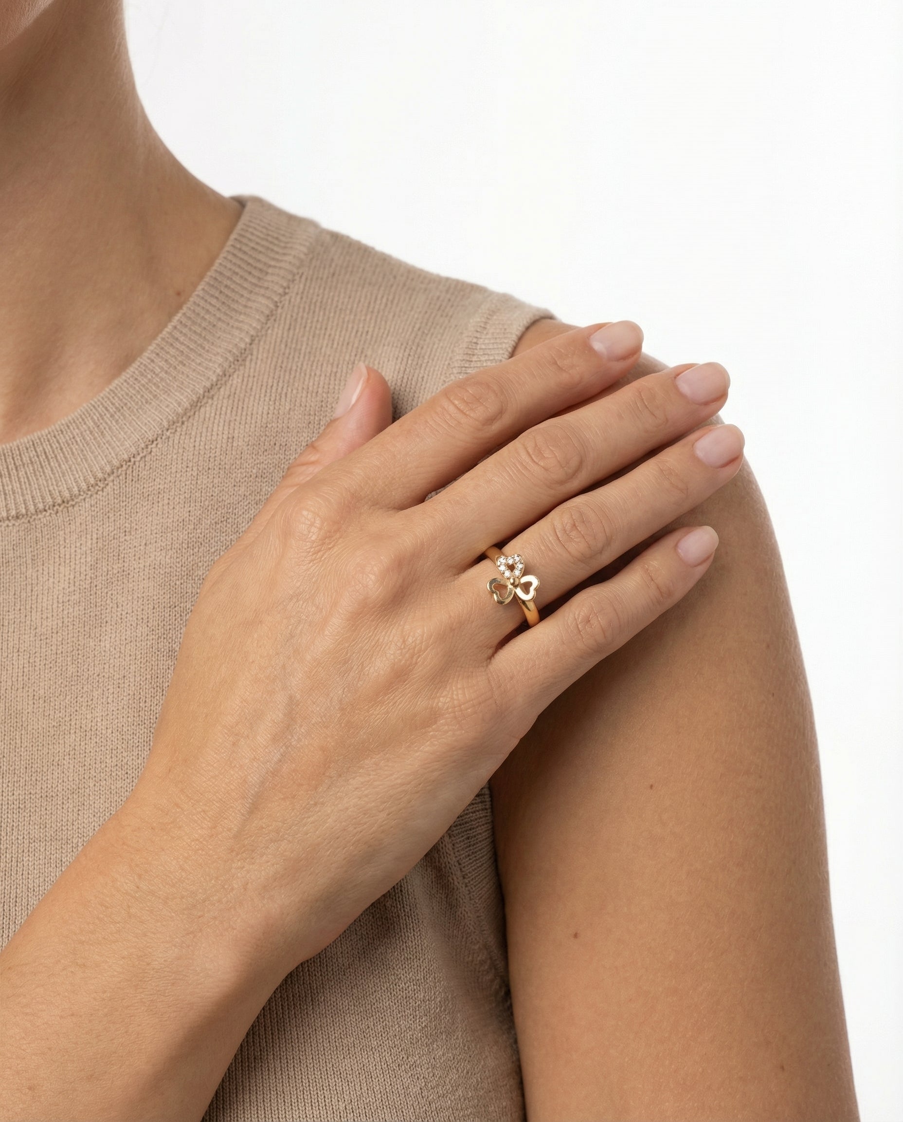 Spinning Blomsterring i 8K guld med hvide zirkoniaer, Str. 51, 1.45 g