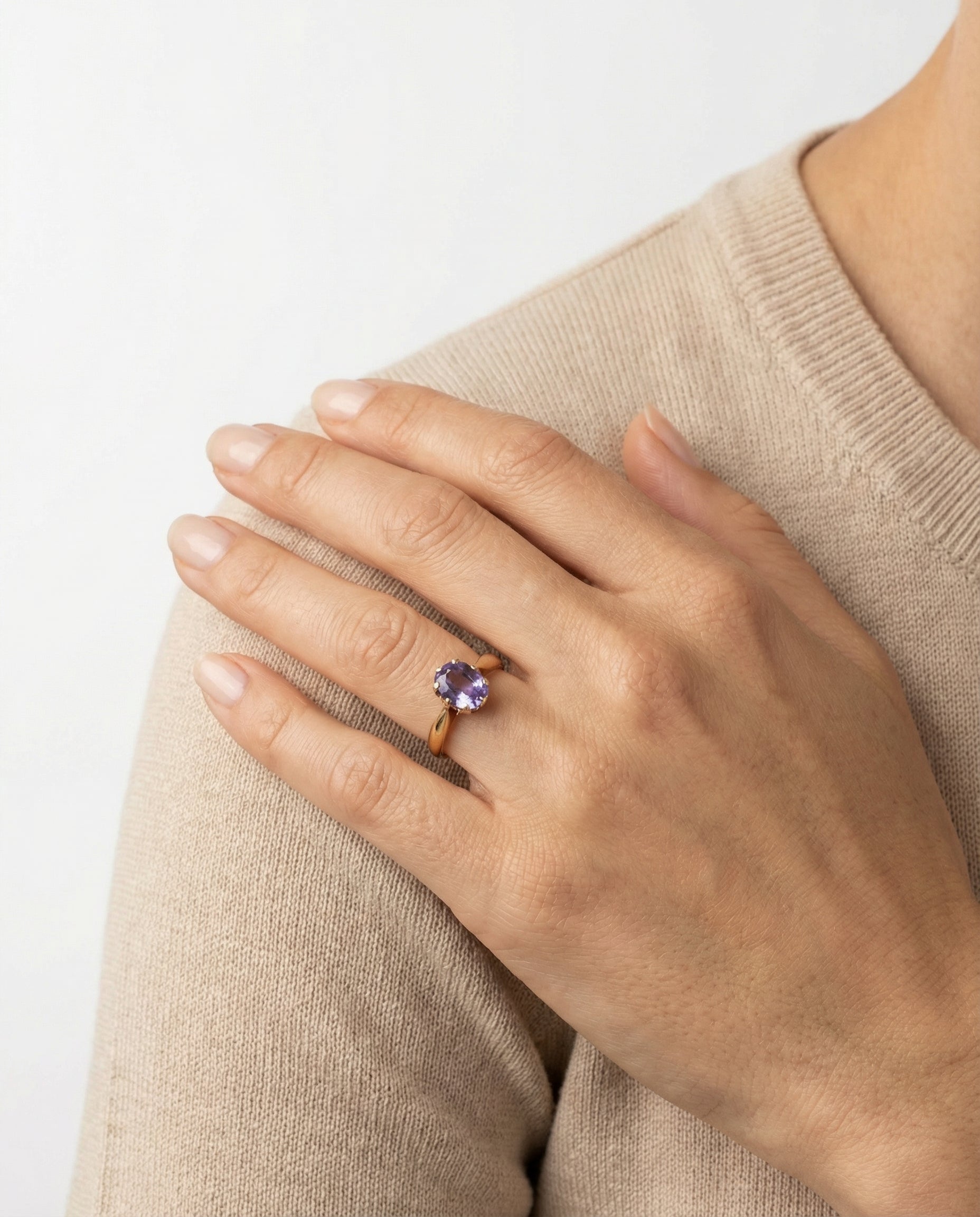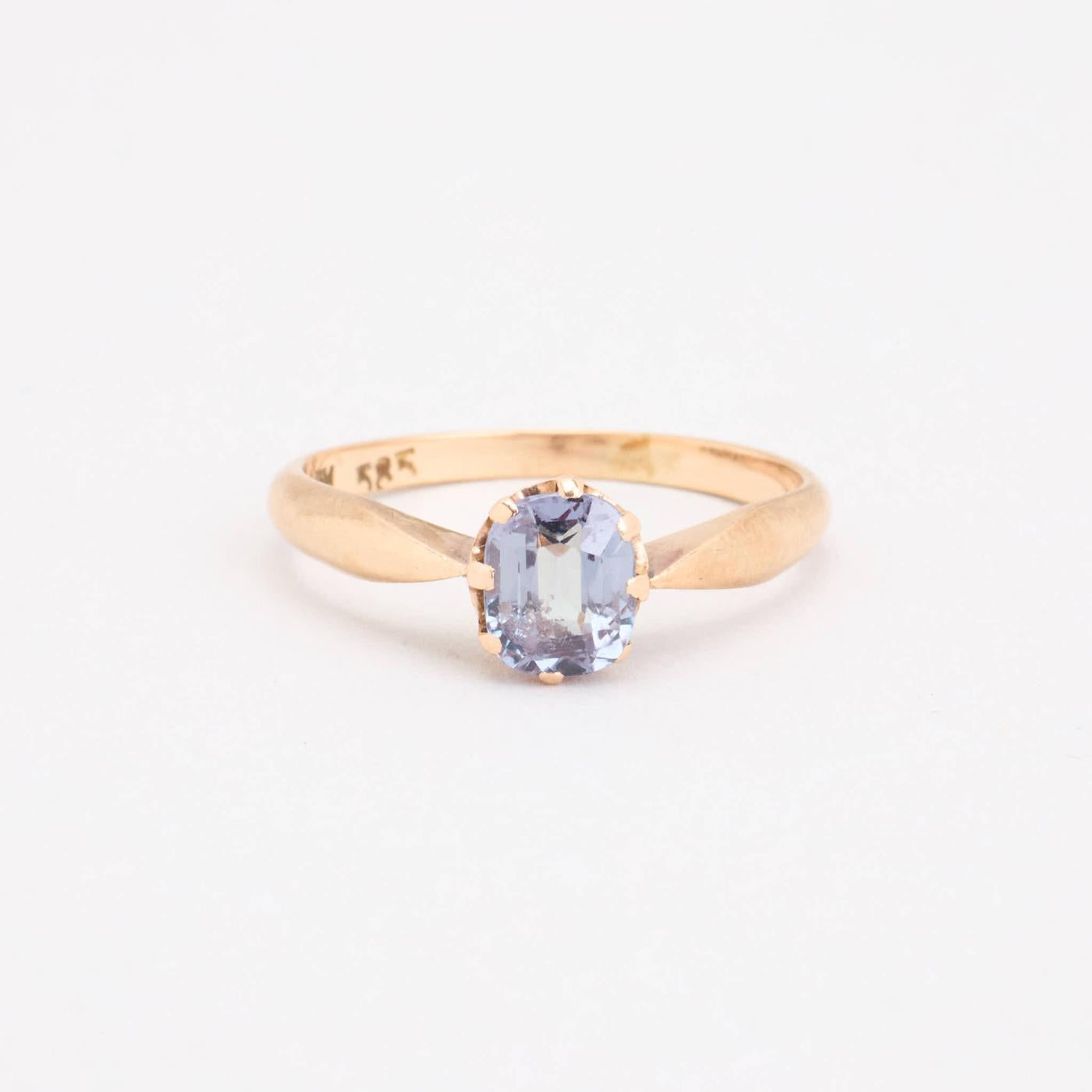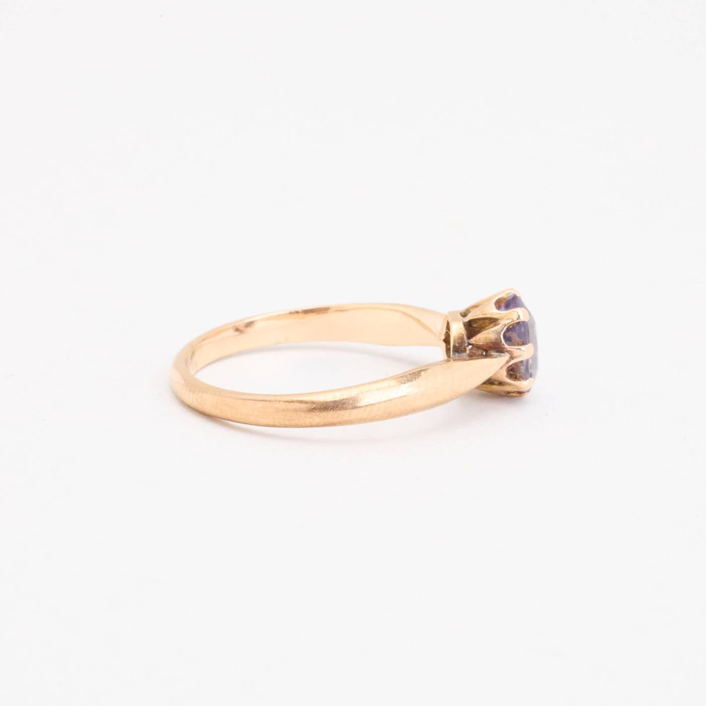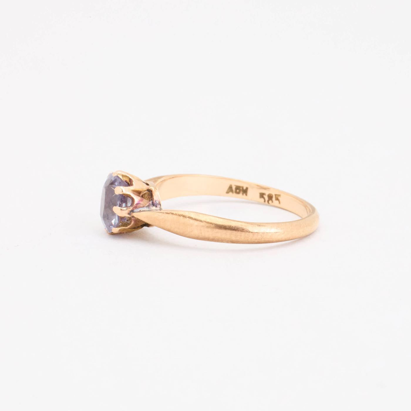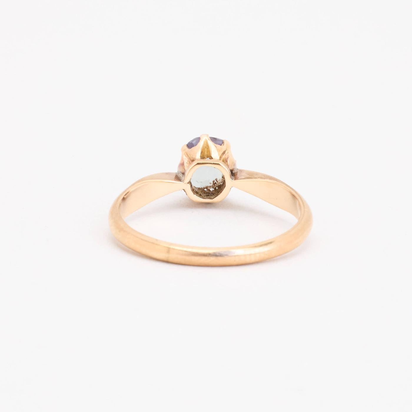 Solitairering i 14K guld med lilla sten, str. 54, 2.03 g