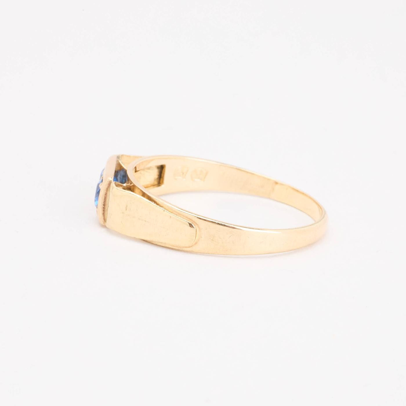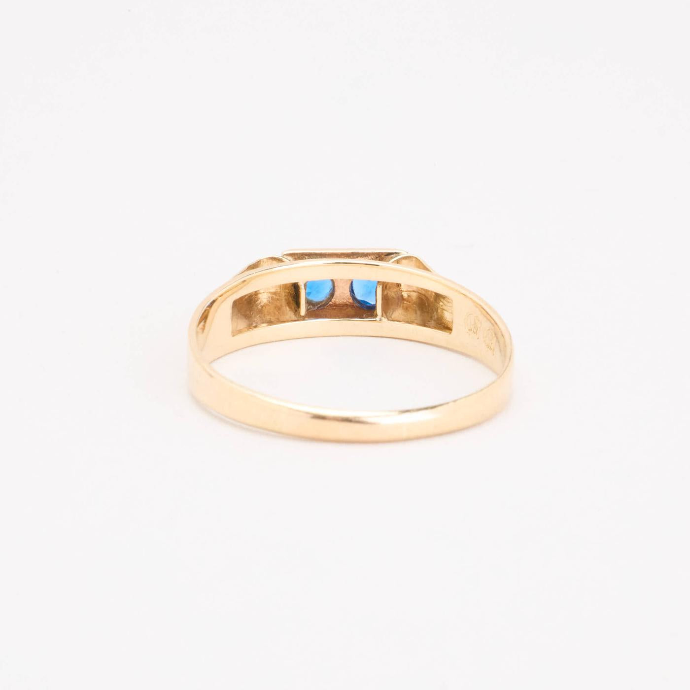 2-stensring i 8K guld med flere blå sten, Str. 57