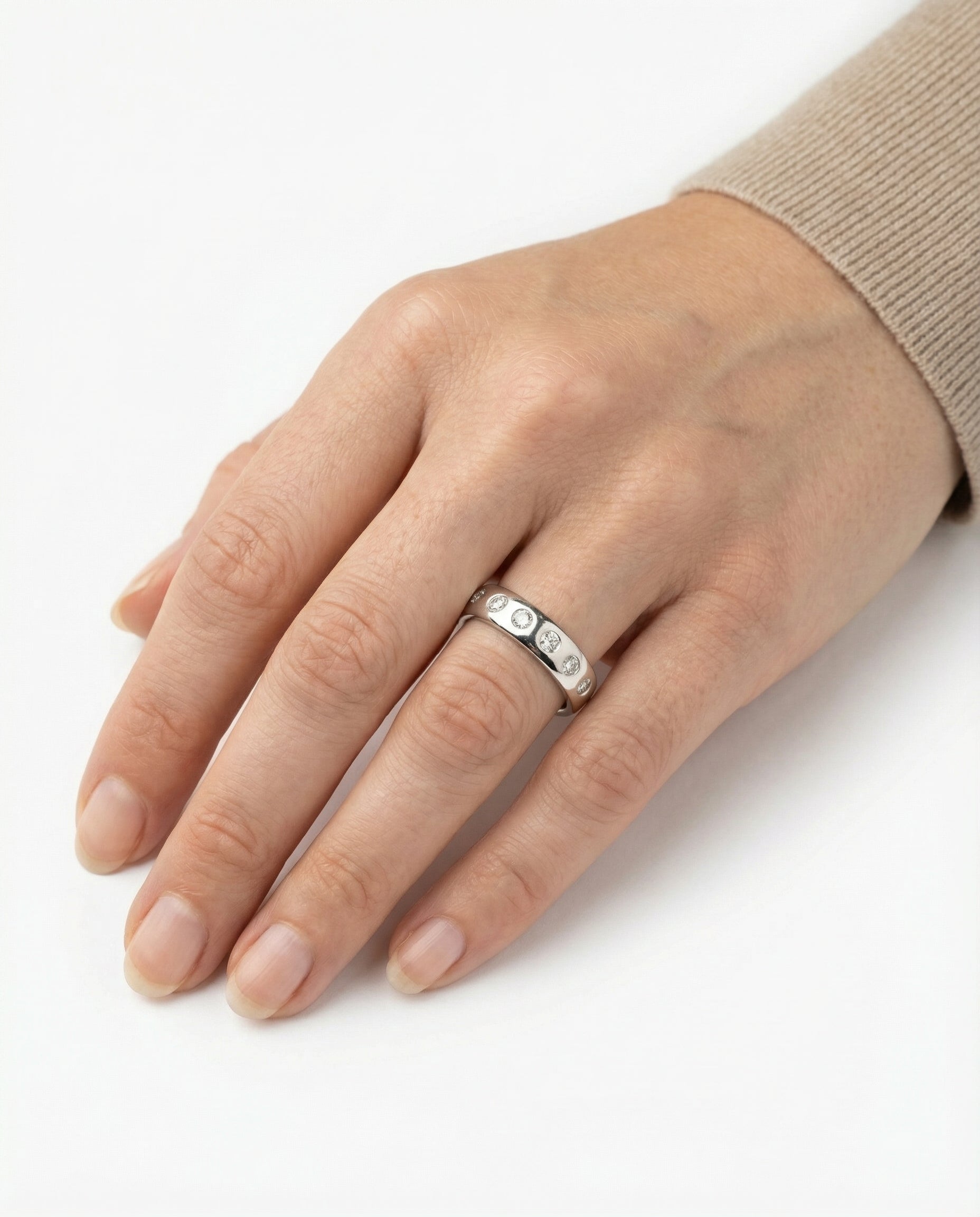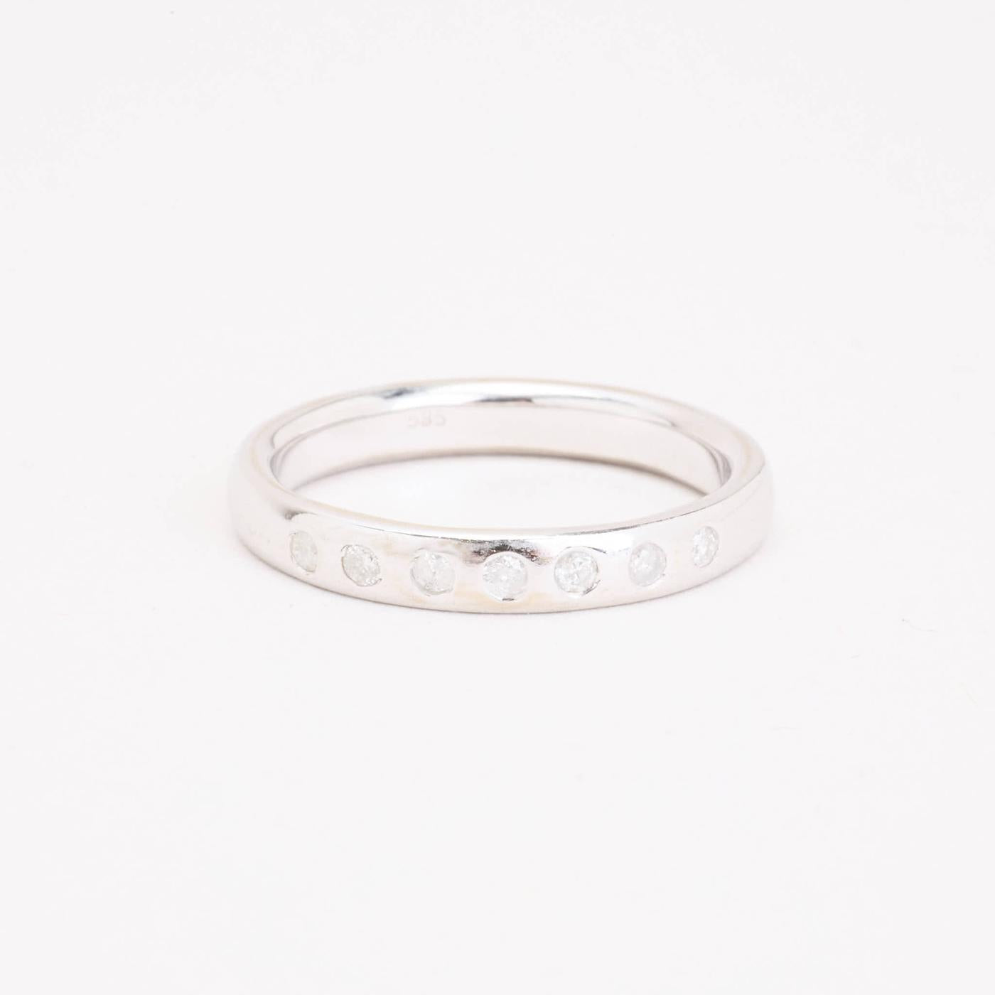 Bånd i 14K hvidguld med diamanter (0.07 ct), Str. 58, 4.2 g