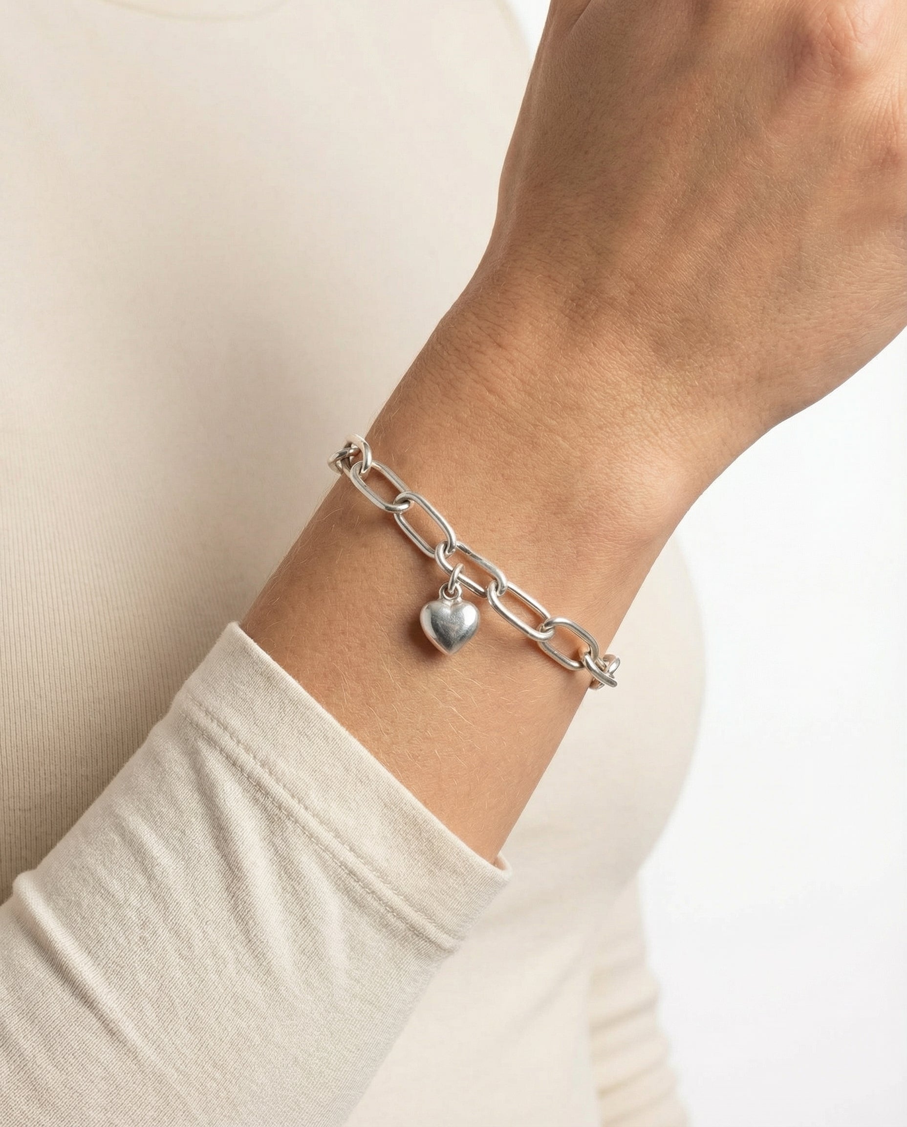Model: Heiring charm-armbånd i 14K hvidguld, 19 cm, 48.5 g