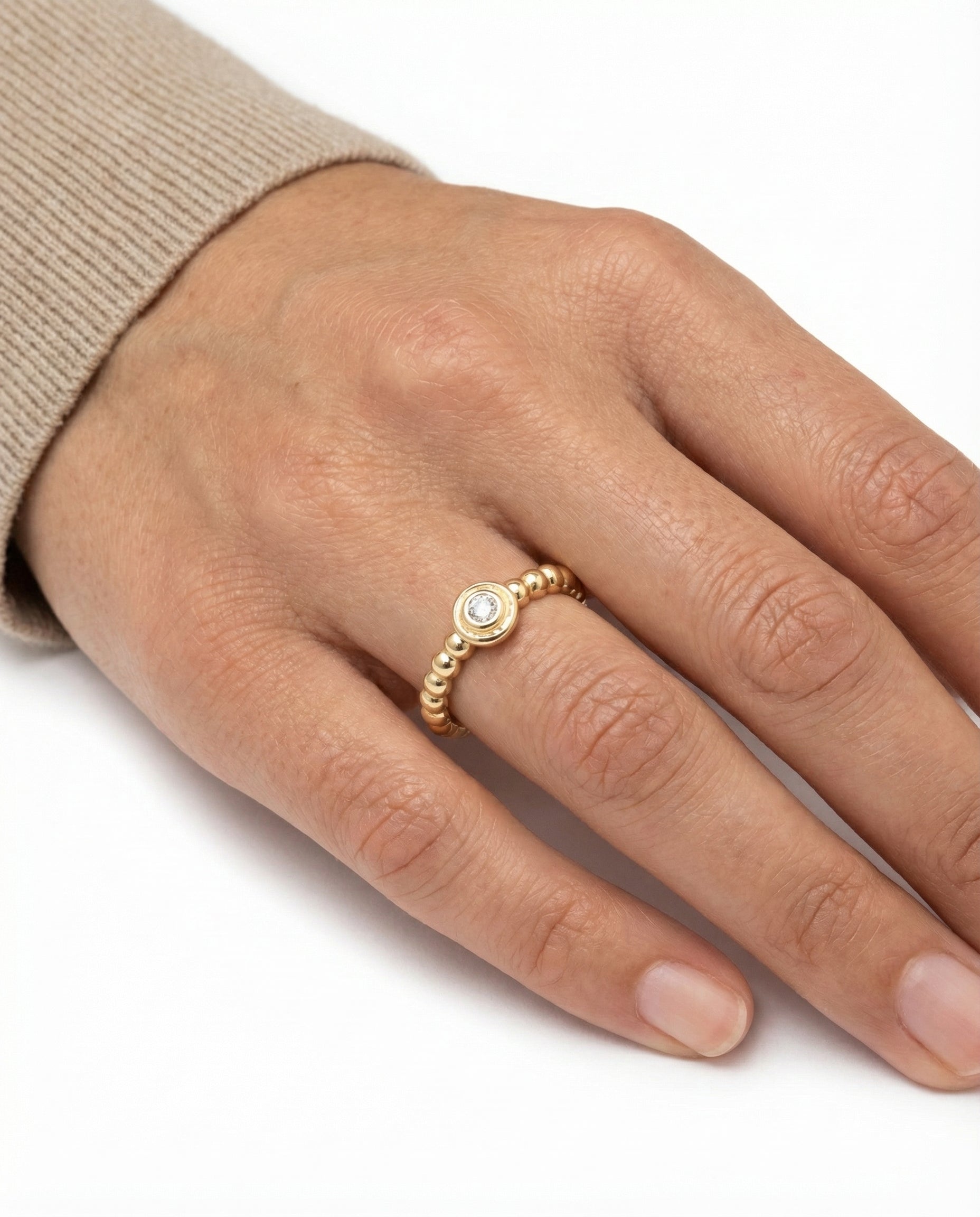Blomsterring i 14K guld med en diamant (0.05 ct), Str. 55