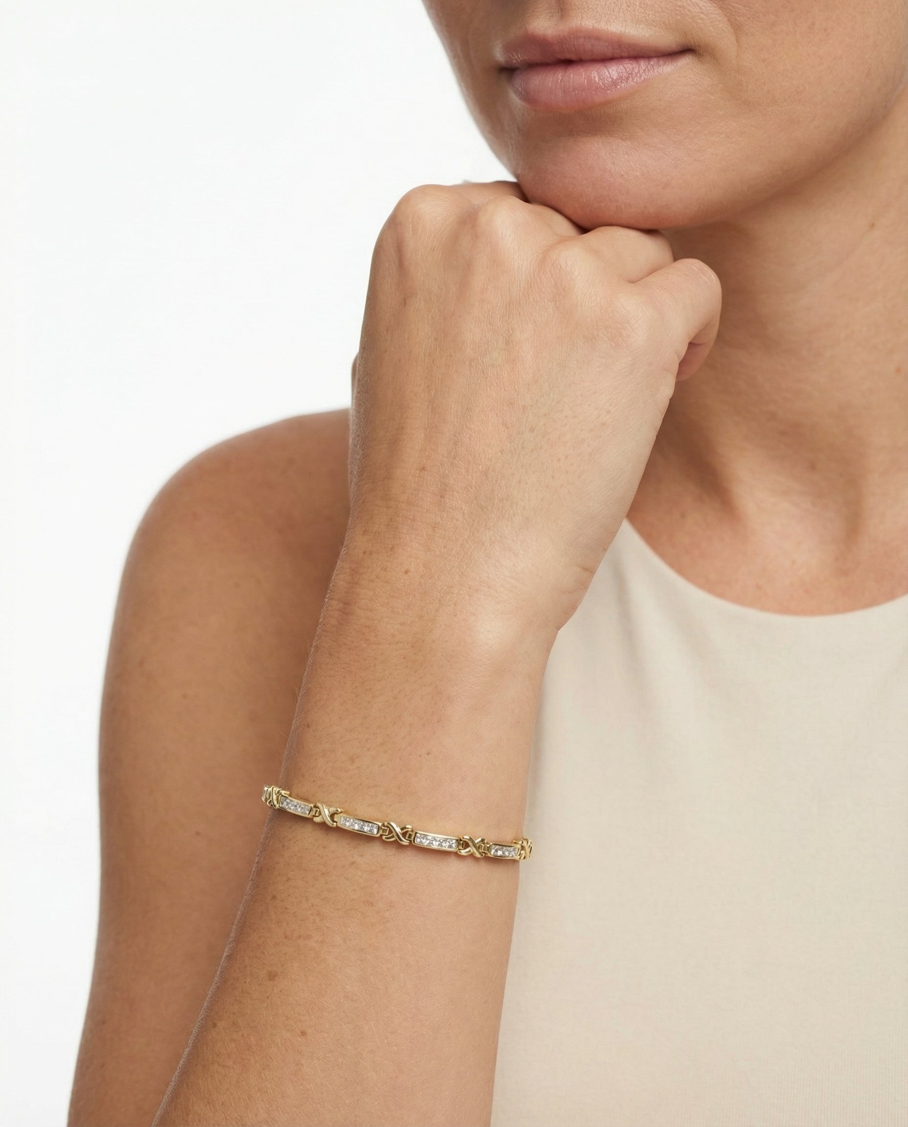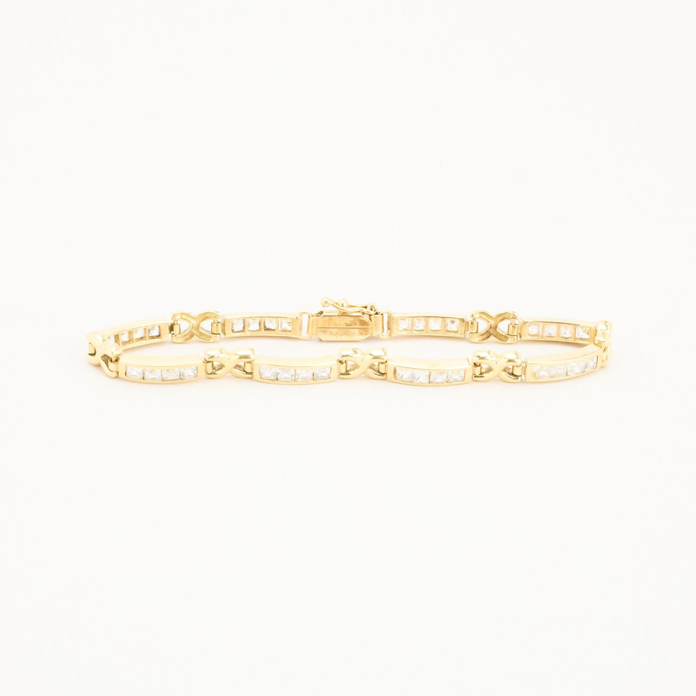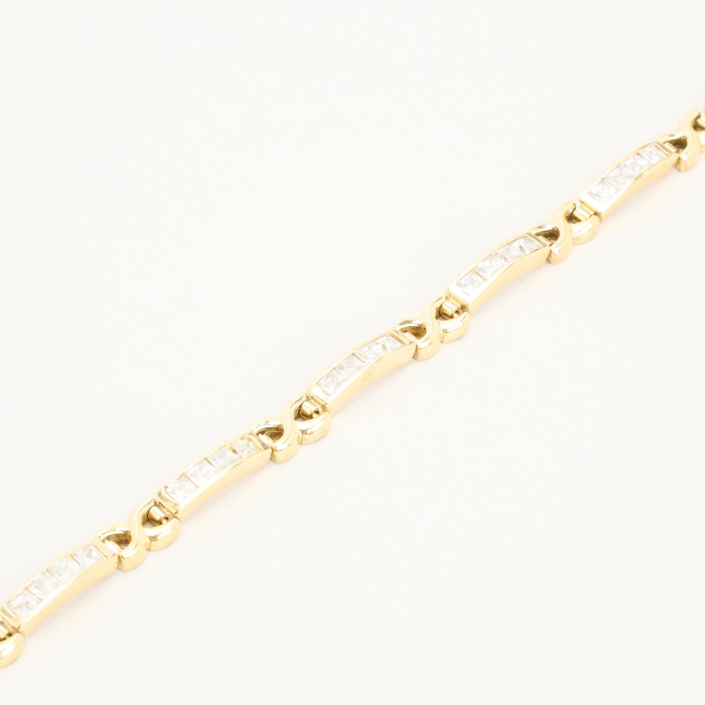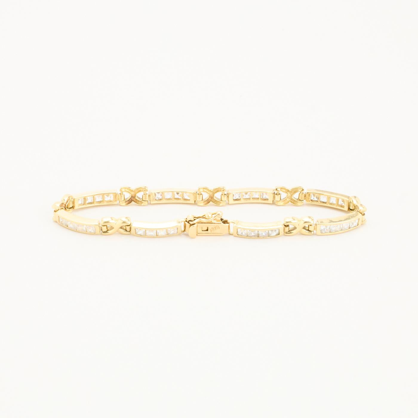 Tennisarmbånd i 14K guld med hvide sten, 17 cm, 10.66 g