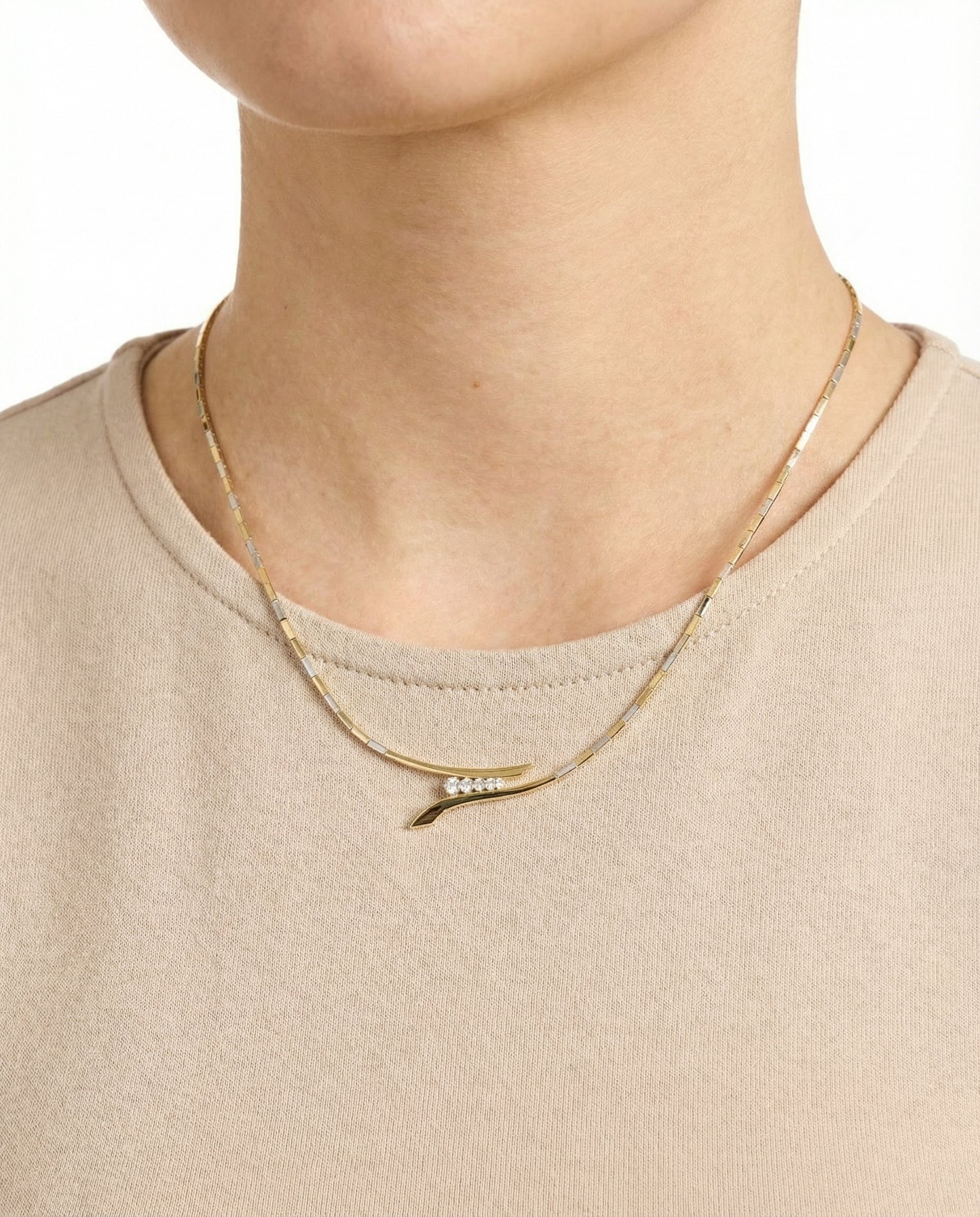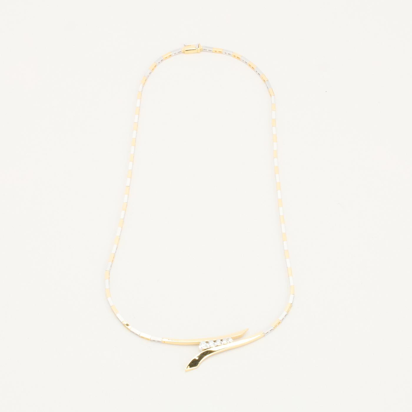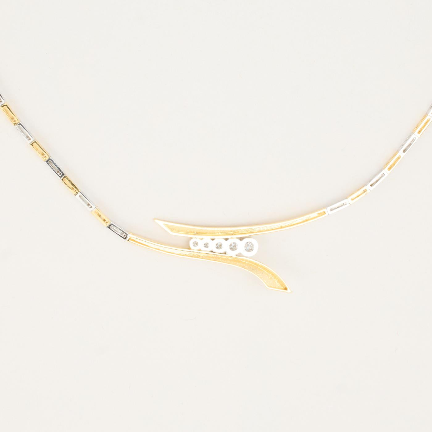 Collier i 14K guld og hvidguld med diamanter (0.2 ct), 44.5 cm