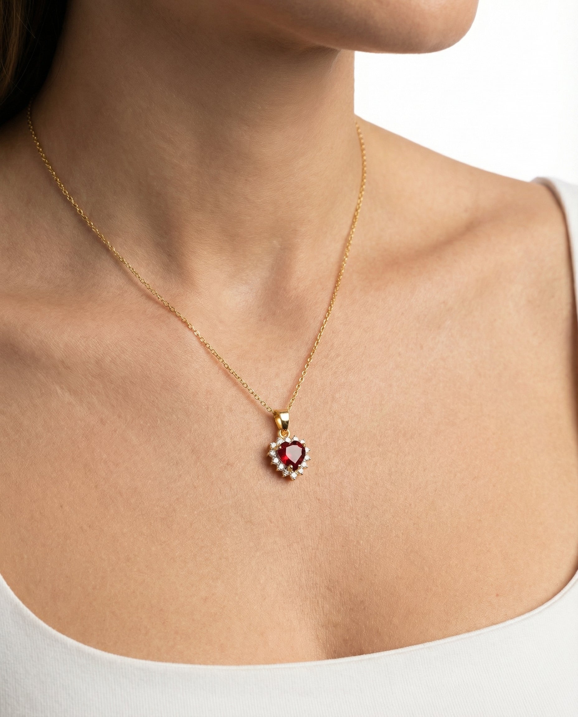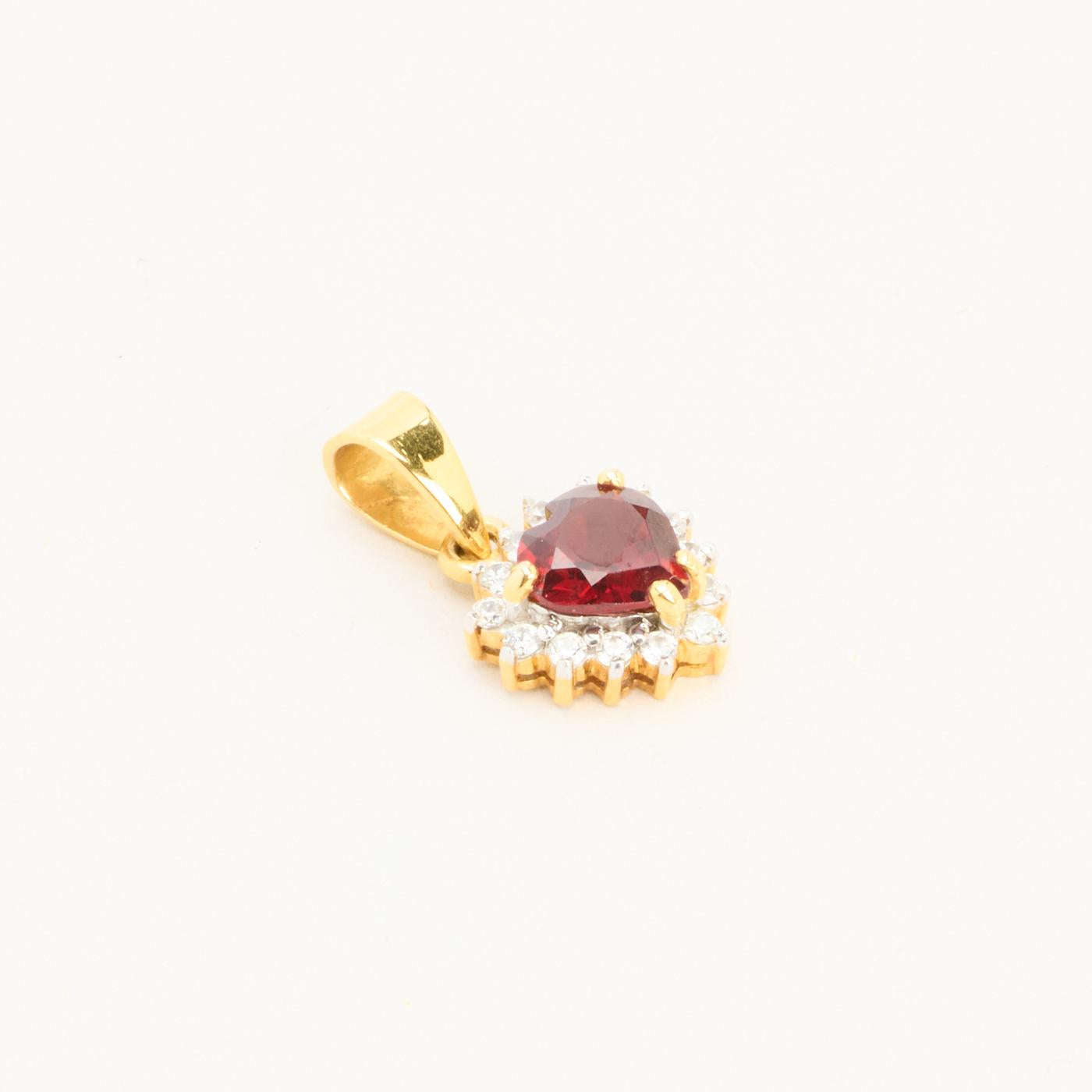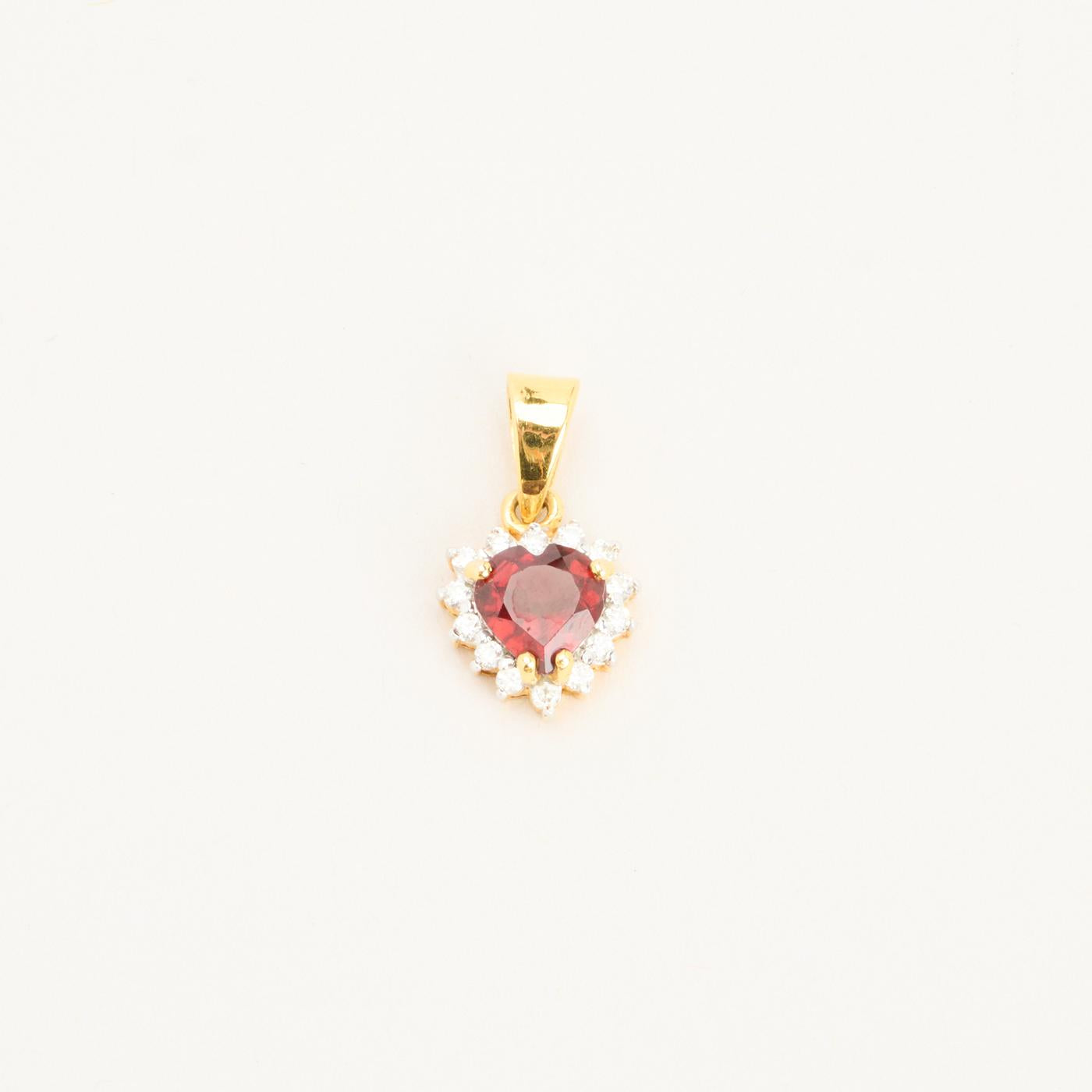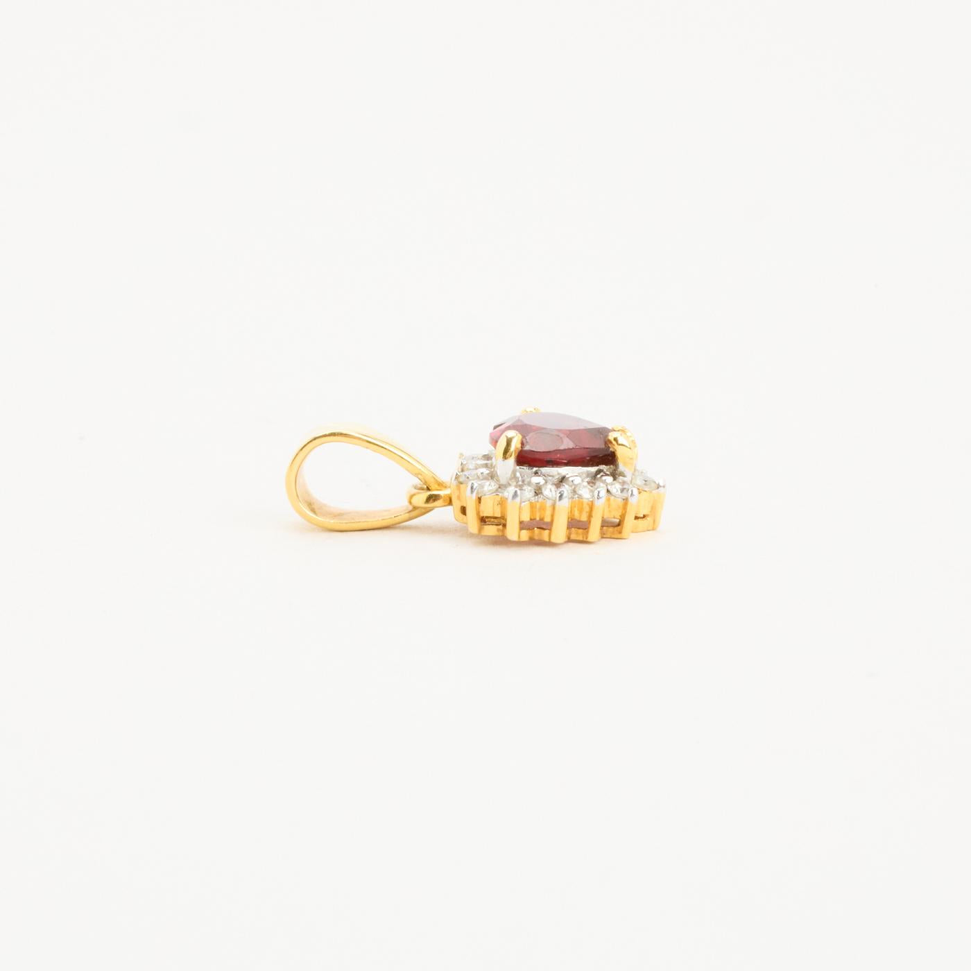 Roset vedhæng i 14 karat med røde og hvide sten, 1.8 cm