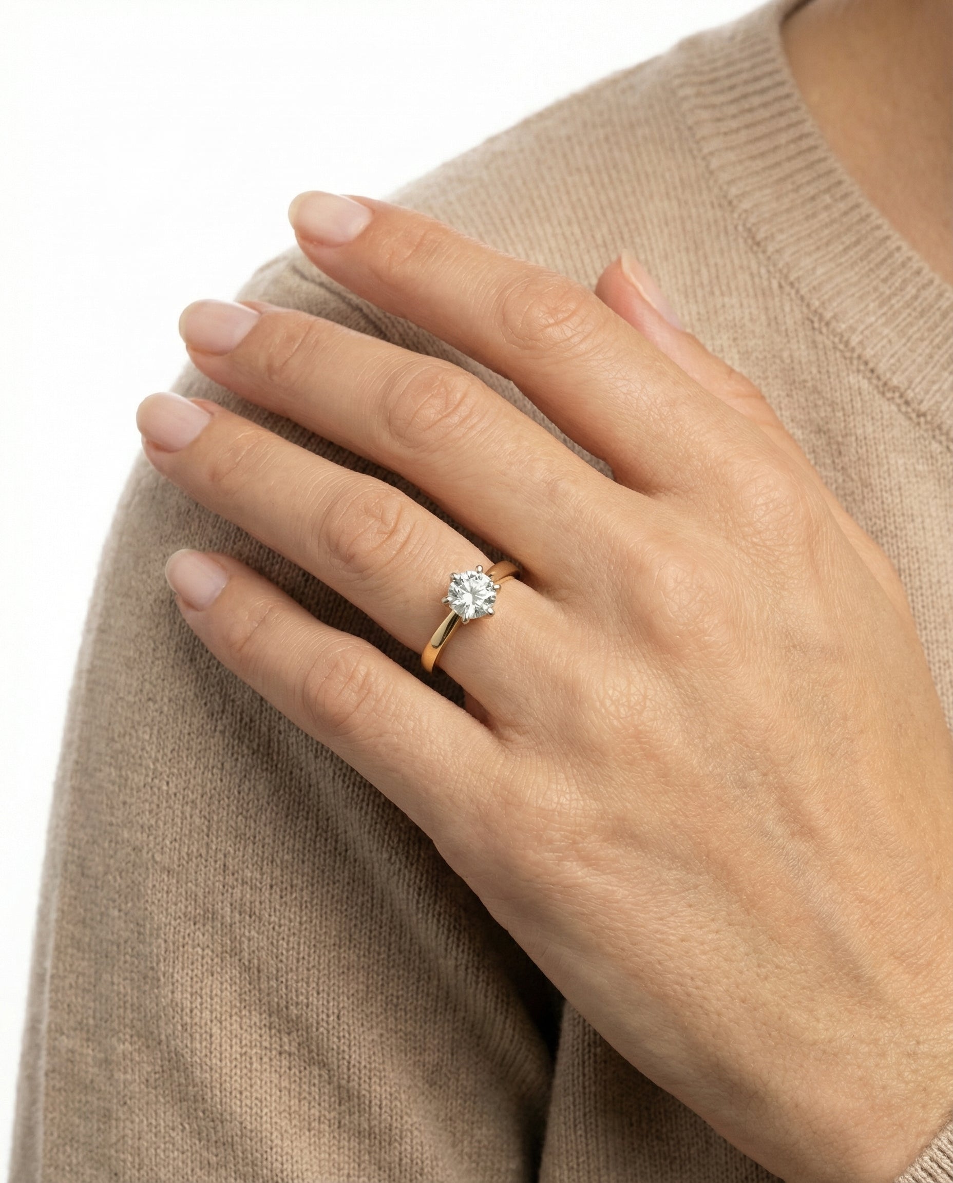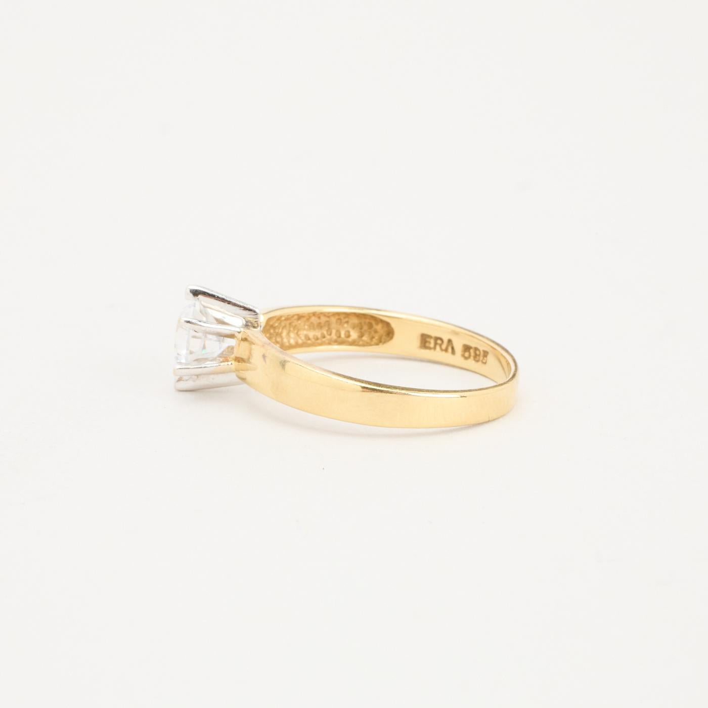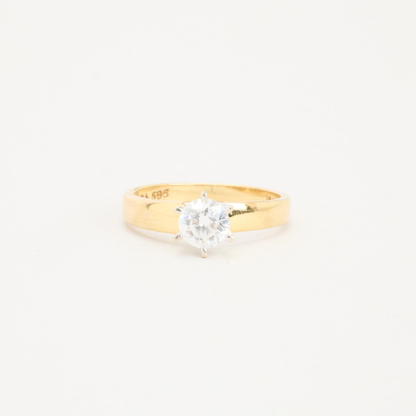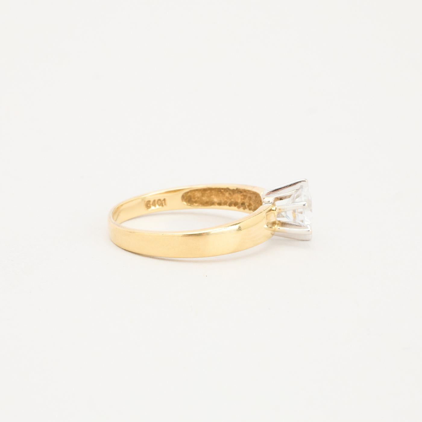 Solitairering i 14K guld og hvidguld med en zirkonia, Str. 55, 2 g
