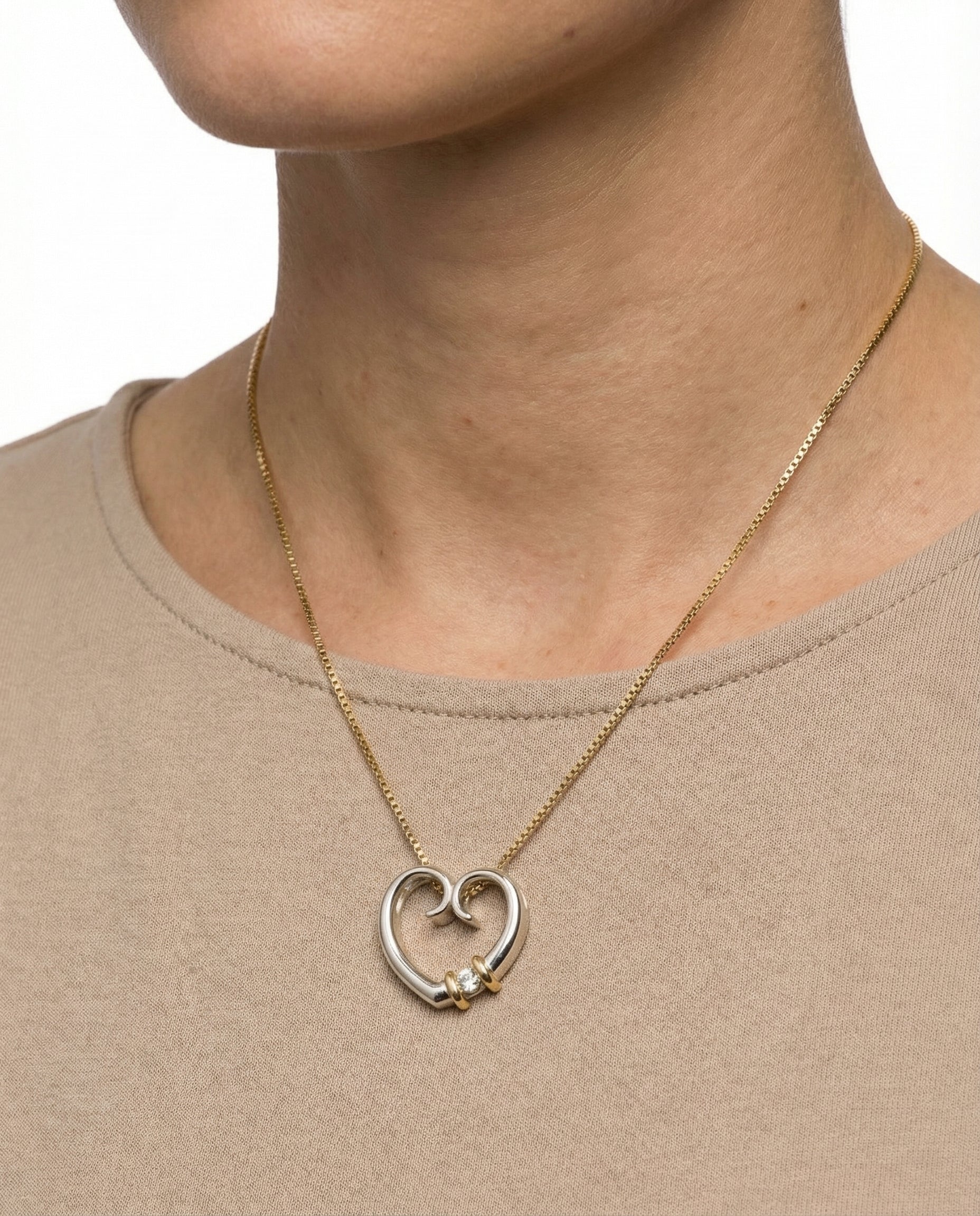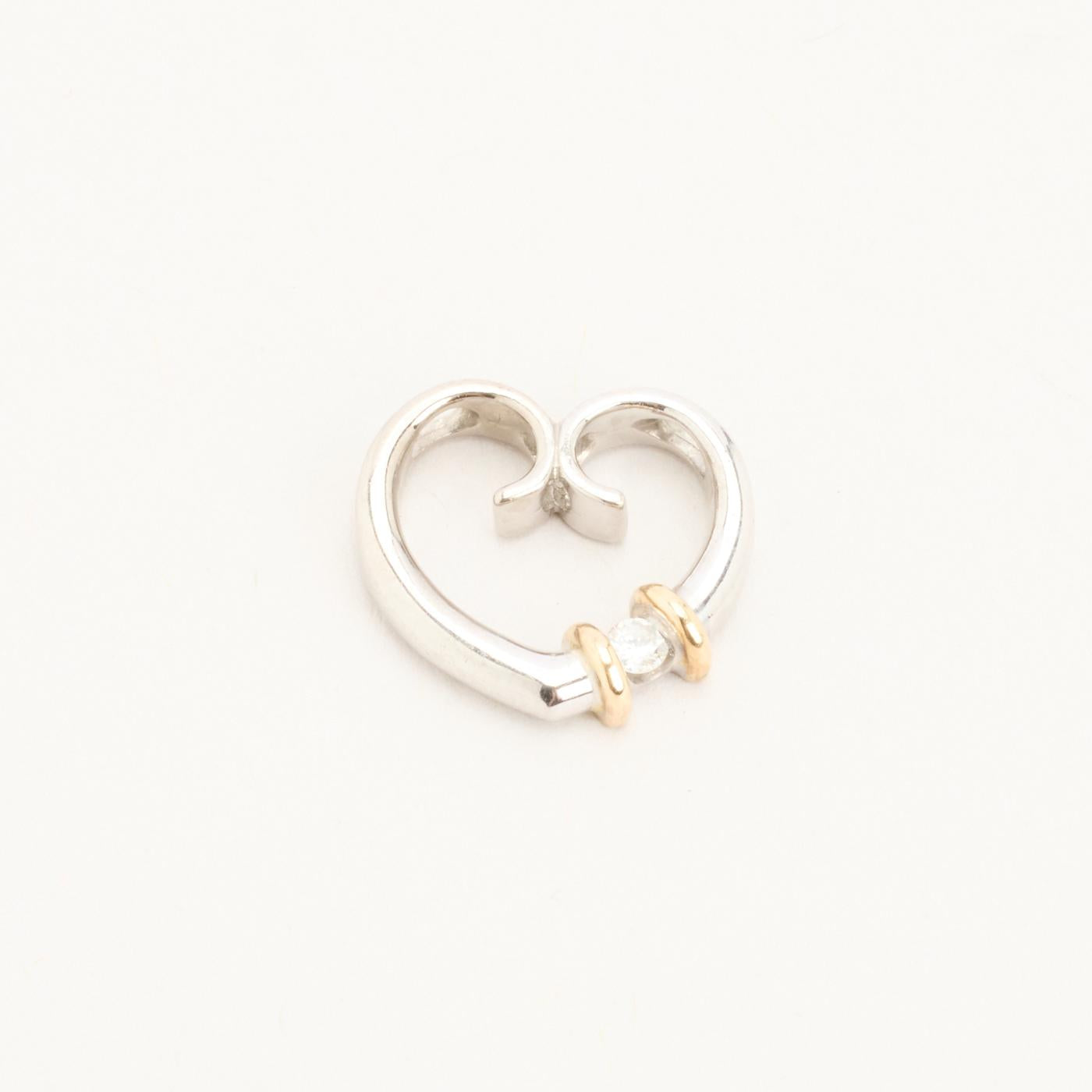 Hjerte vedhæng i 14K guld og hvidguld med en diamant (0.05 ct), 1.4 cm, 2.28 g