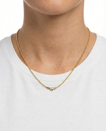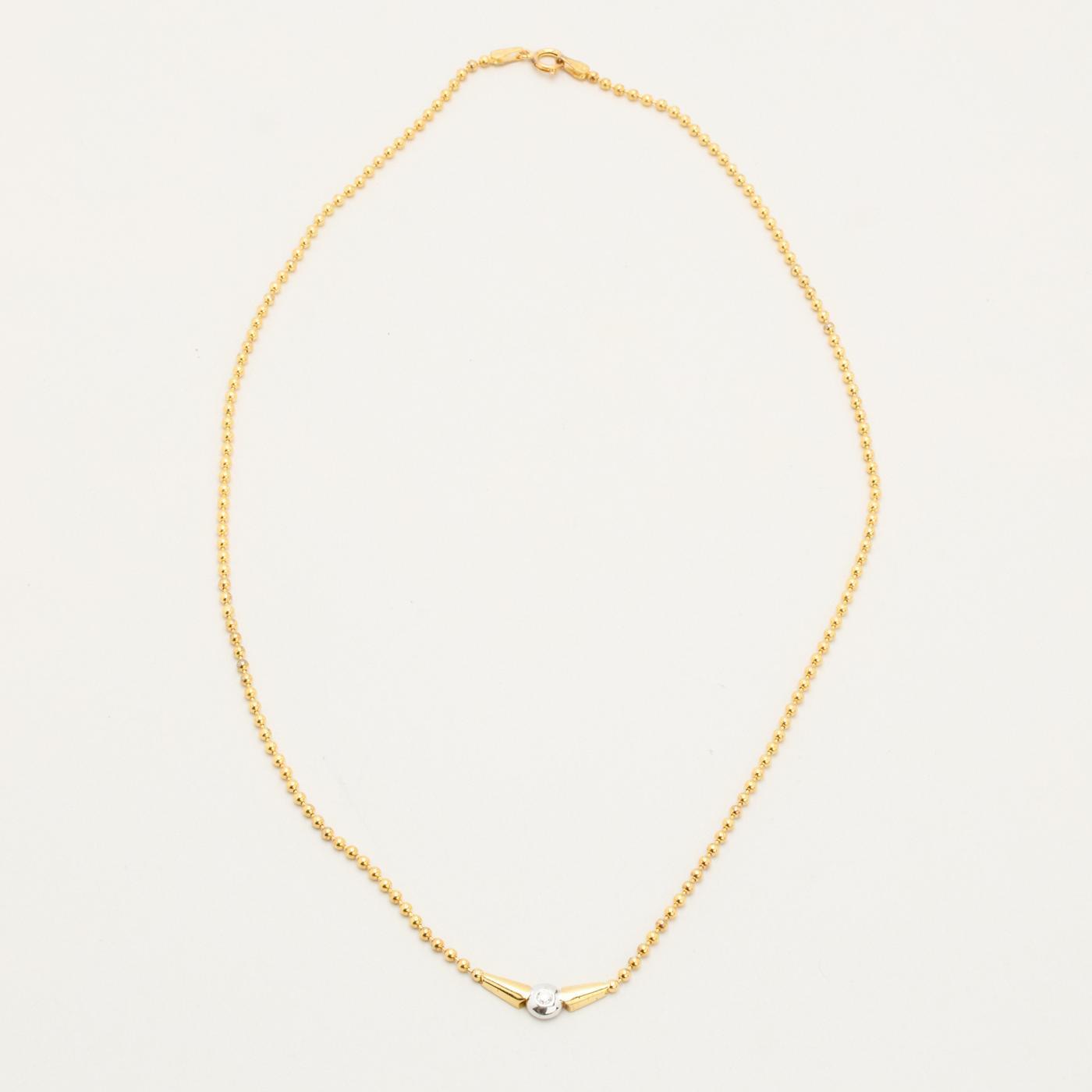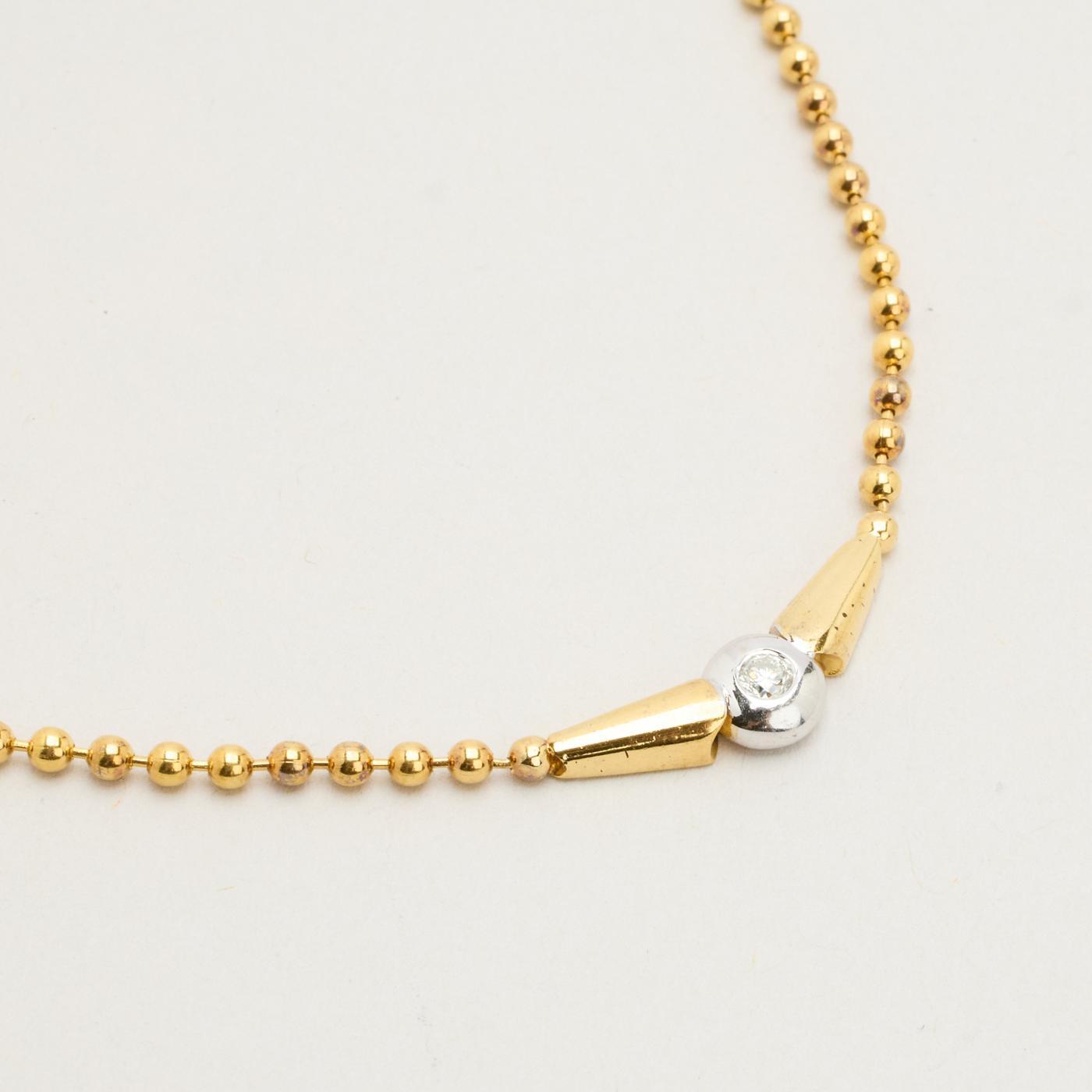 Kuglehalskæde i 18K guld og hvidguld med en diamant (0.03 ct), 44.5 cm, 8.21 g