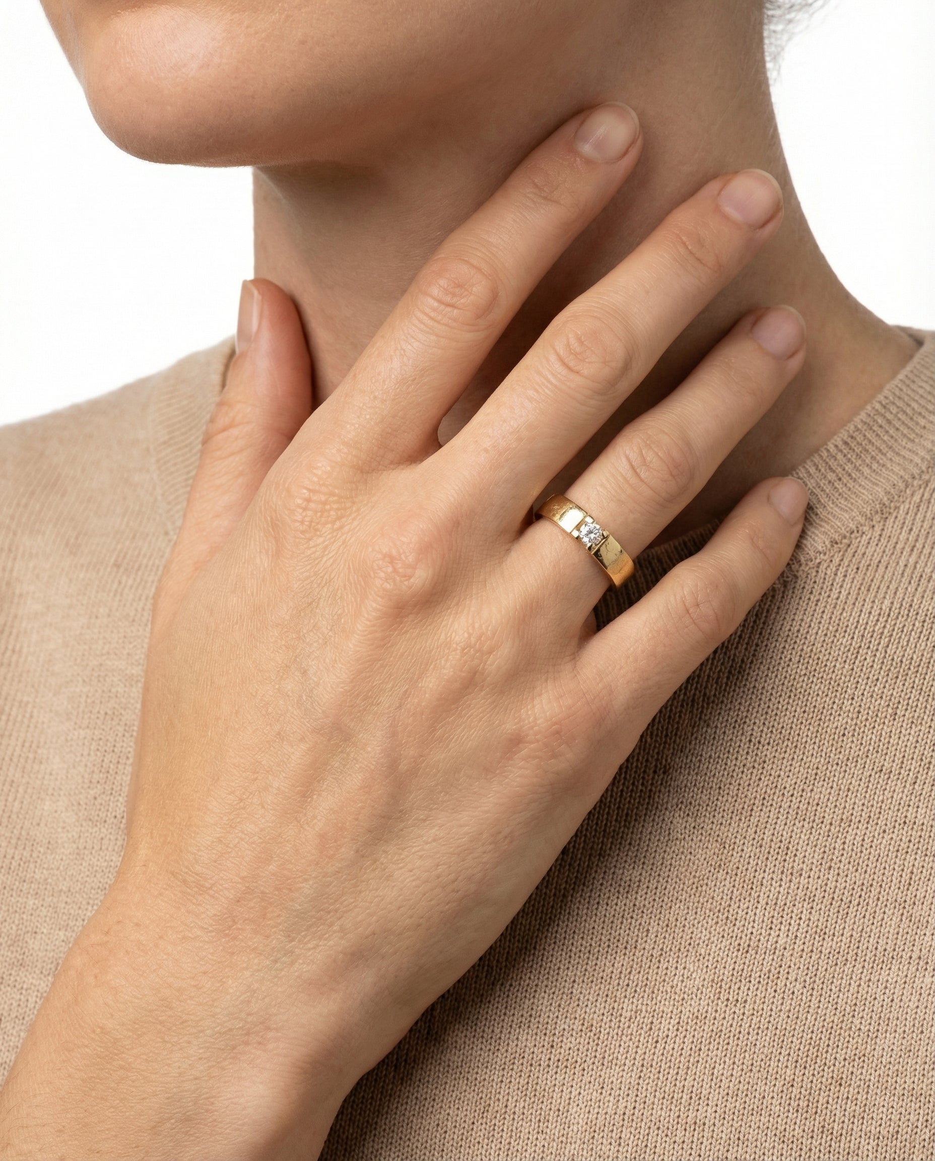 Alliancering i 14K guld med en diamant (0.16 ct), Str. 54, 6.93 g