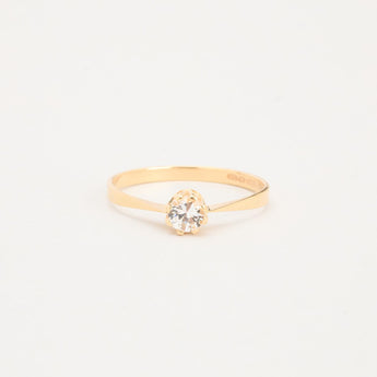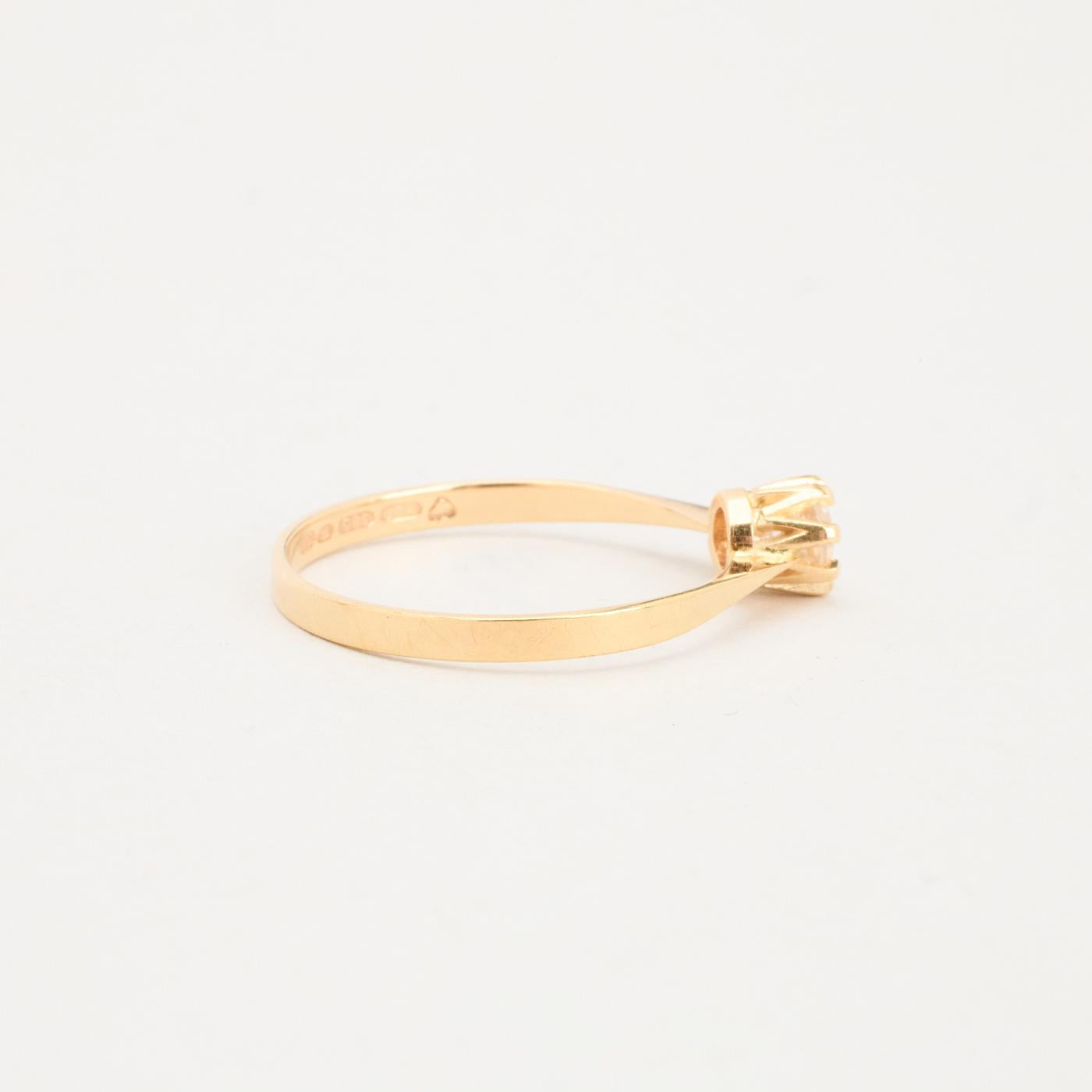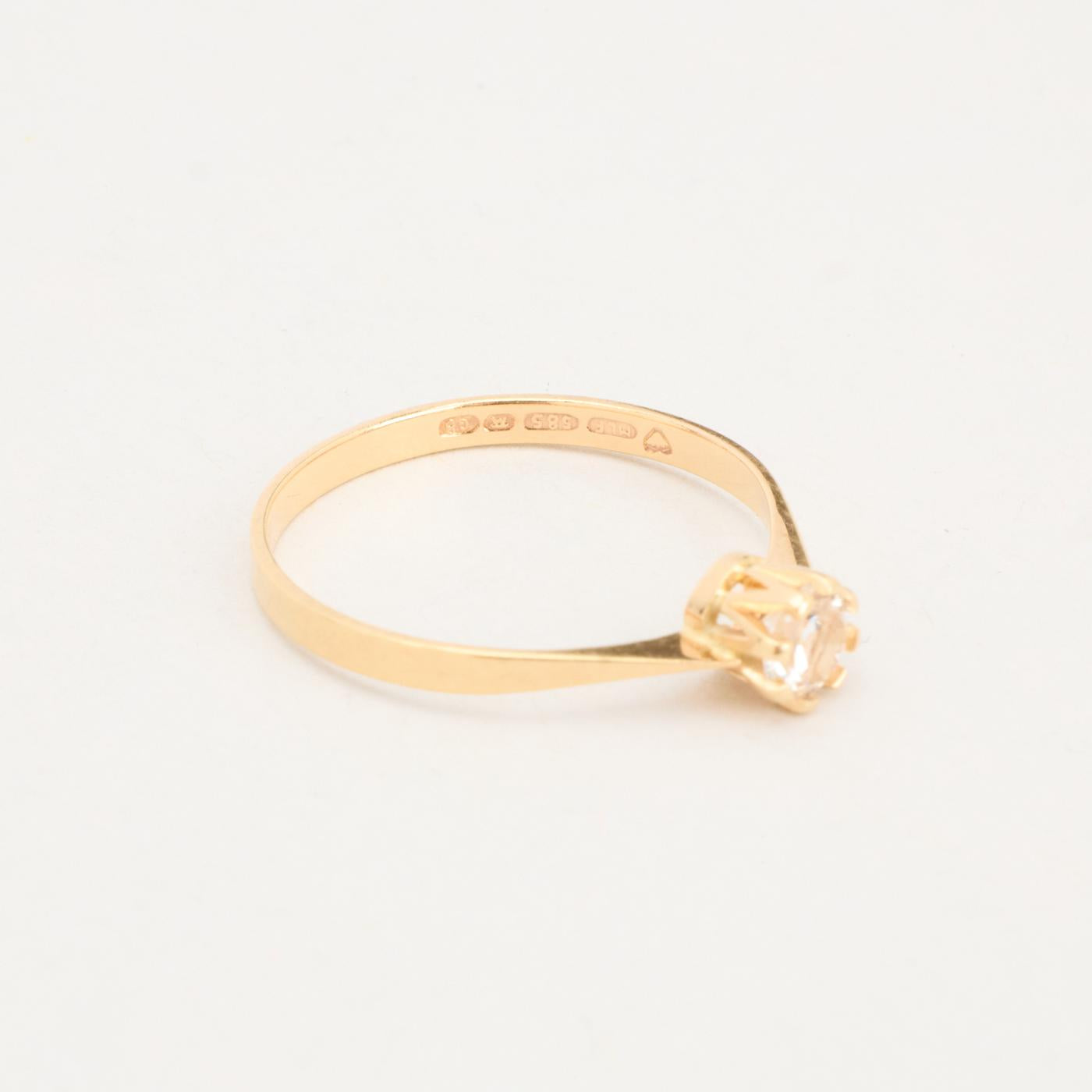 Solitairering i 14K guld med hvid sten, str. 53, 0.98 g