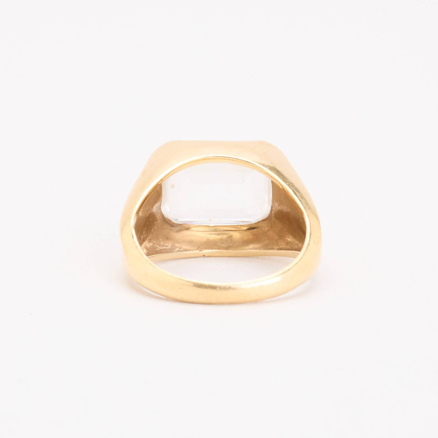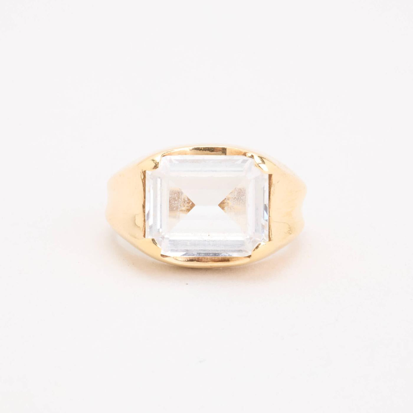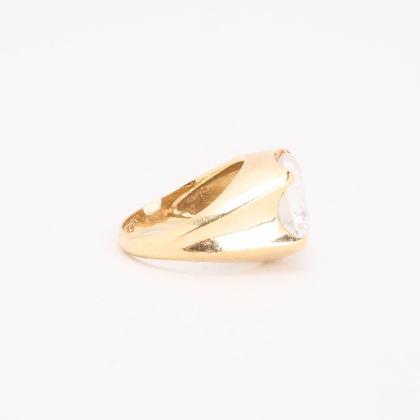 Signetring i 14K guld med en hvid sten, Str. 52, 6 g