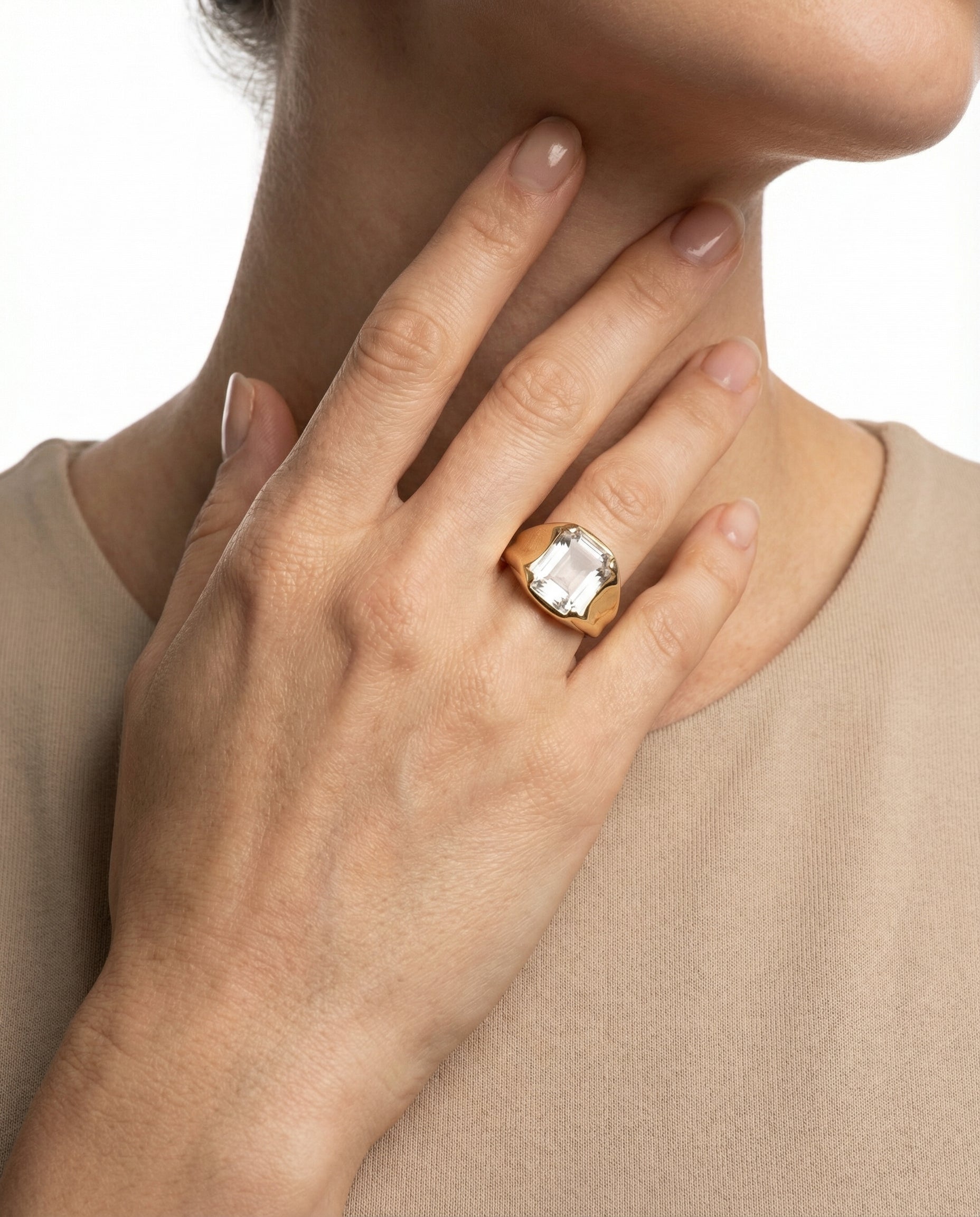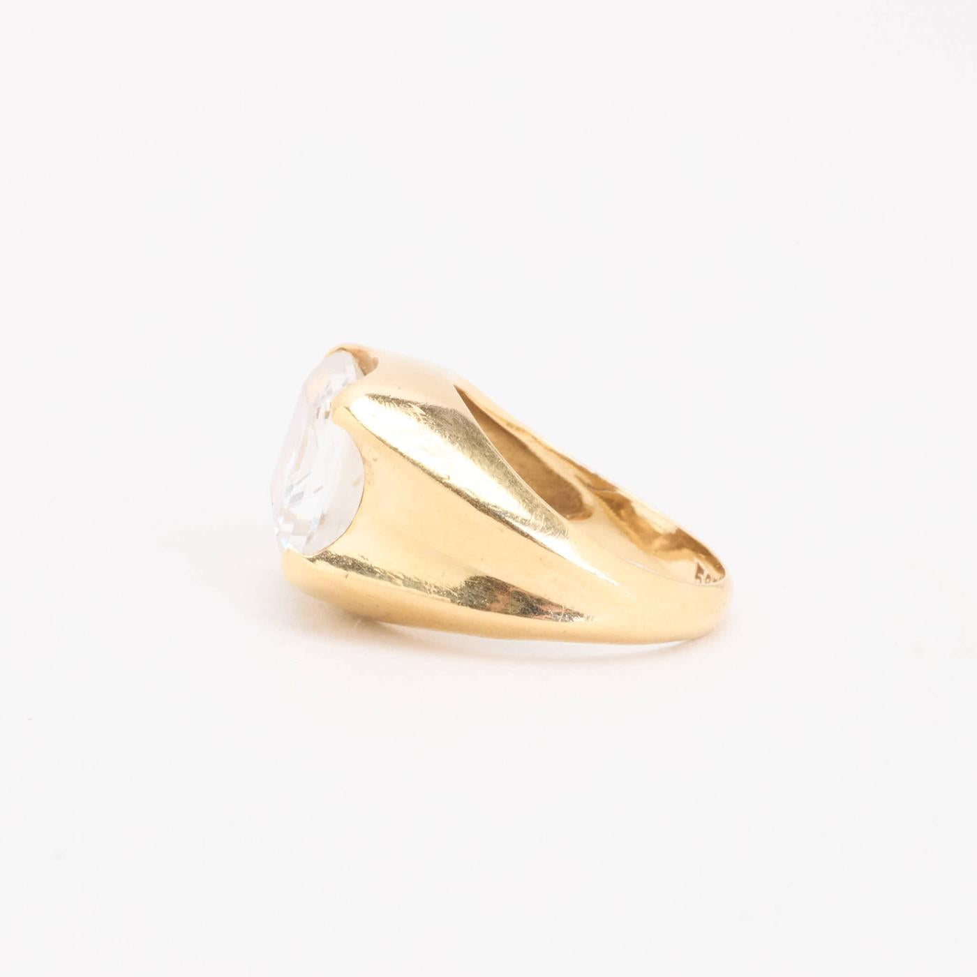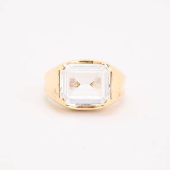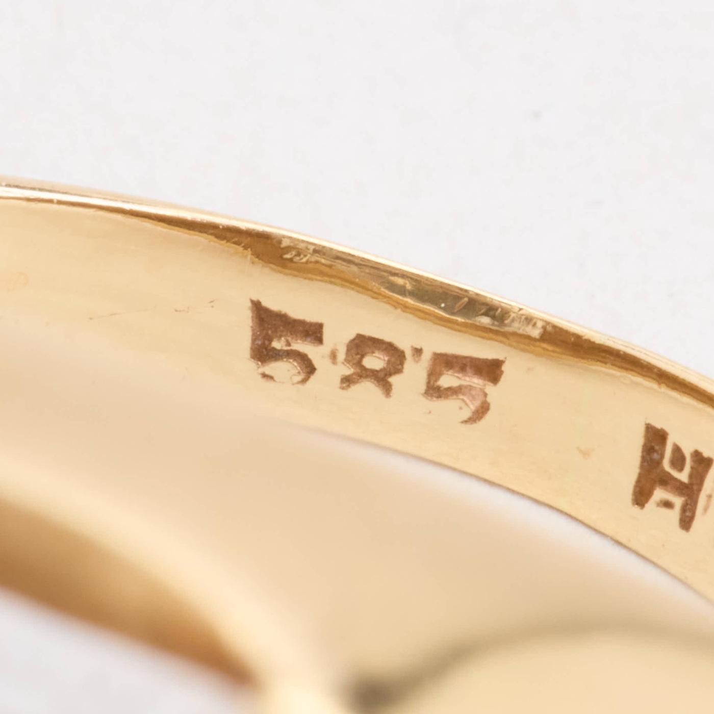 Signetring i 14K guld med en hvid sten, Str. 52, 6 g