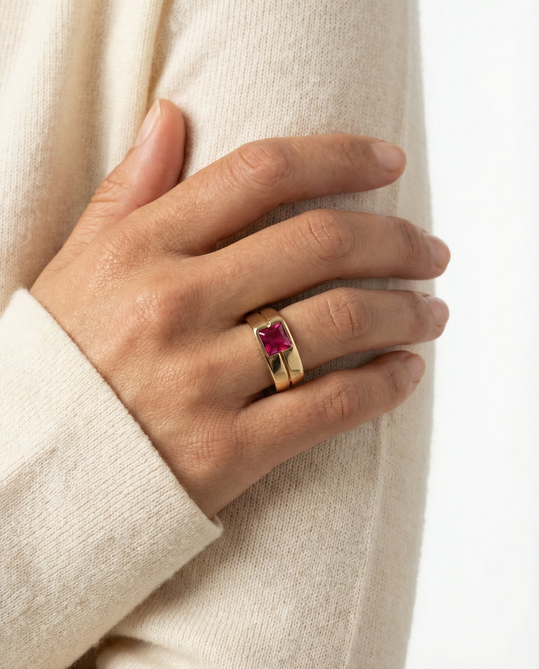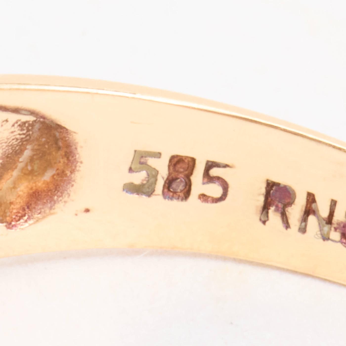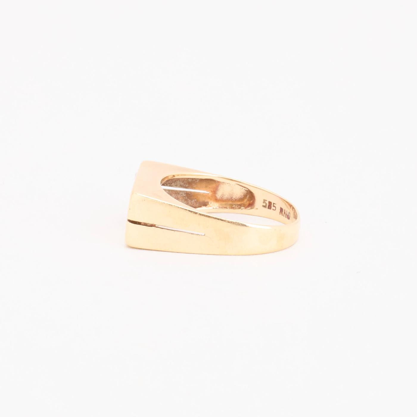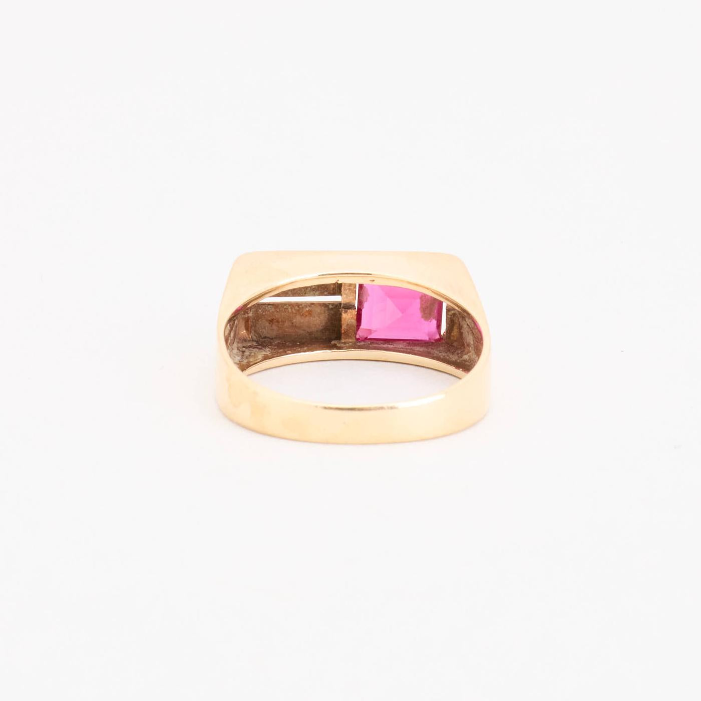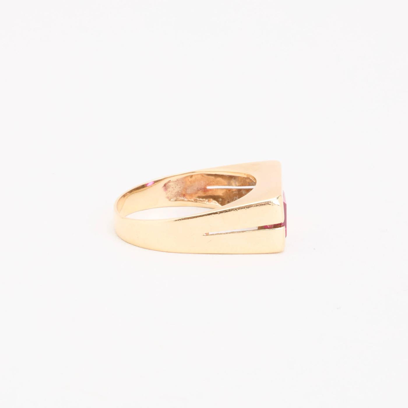 Signetring i 14K guld med røde sten, Str. 54, 3.2 g