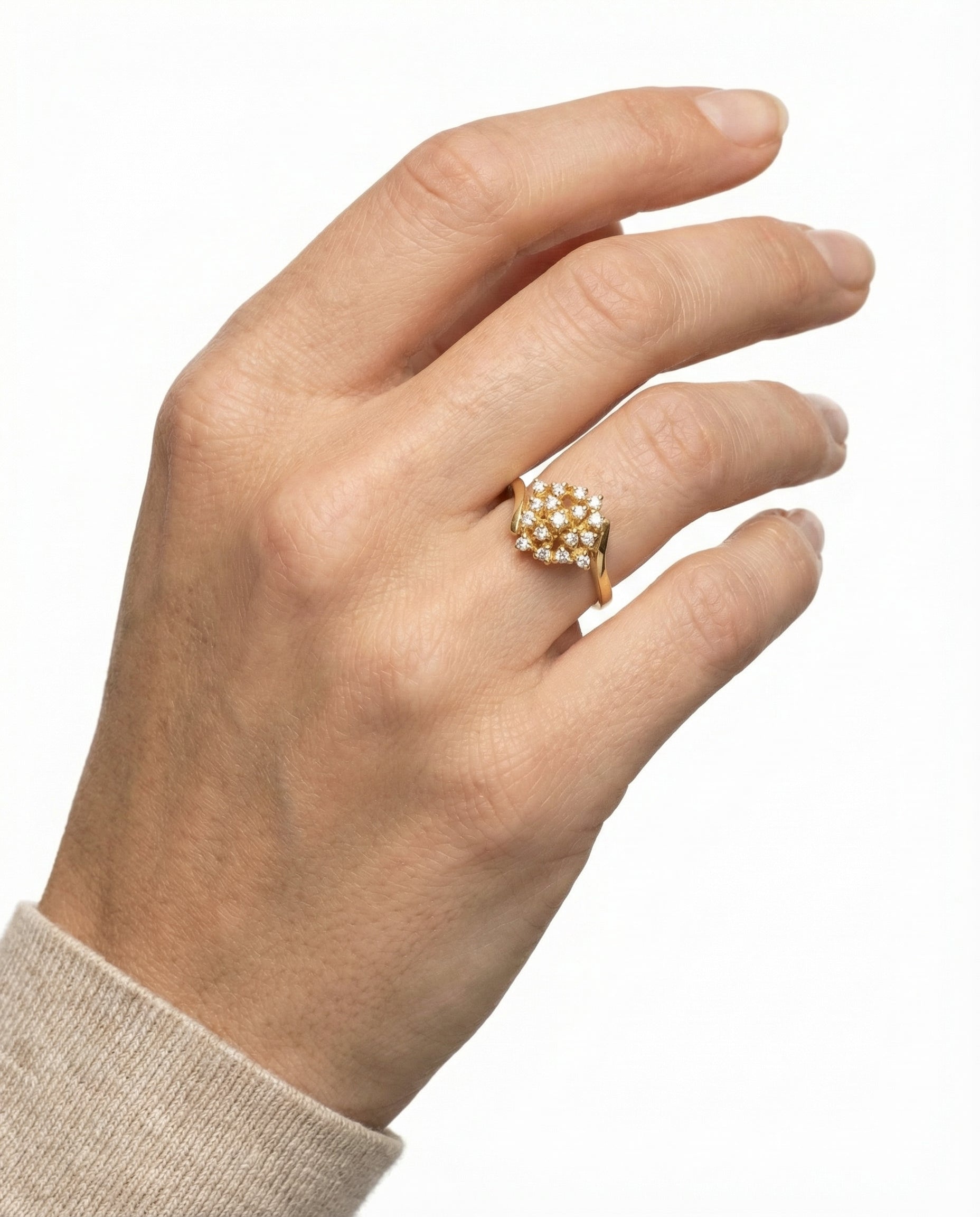 Pavéring i 18K guld med hvide sten, Str. 55, 3.2 g