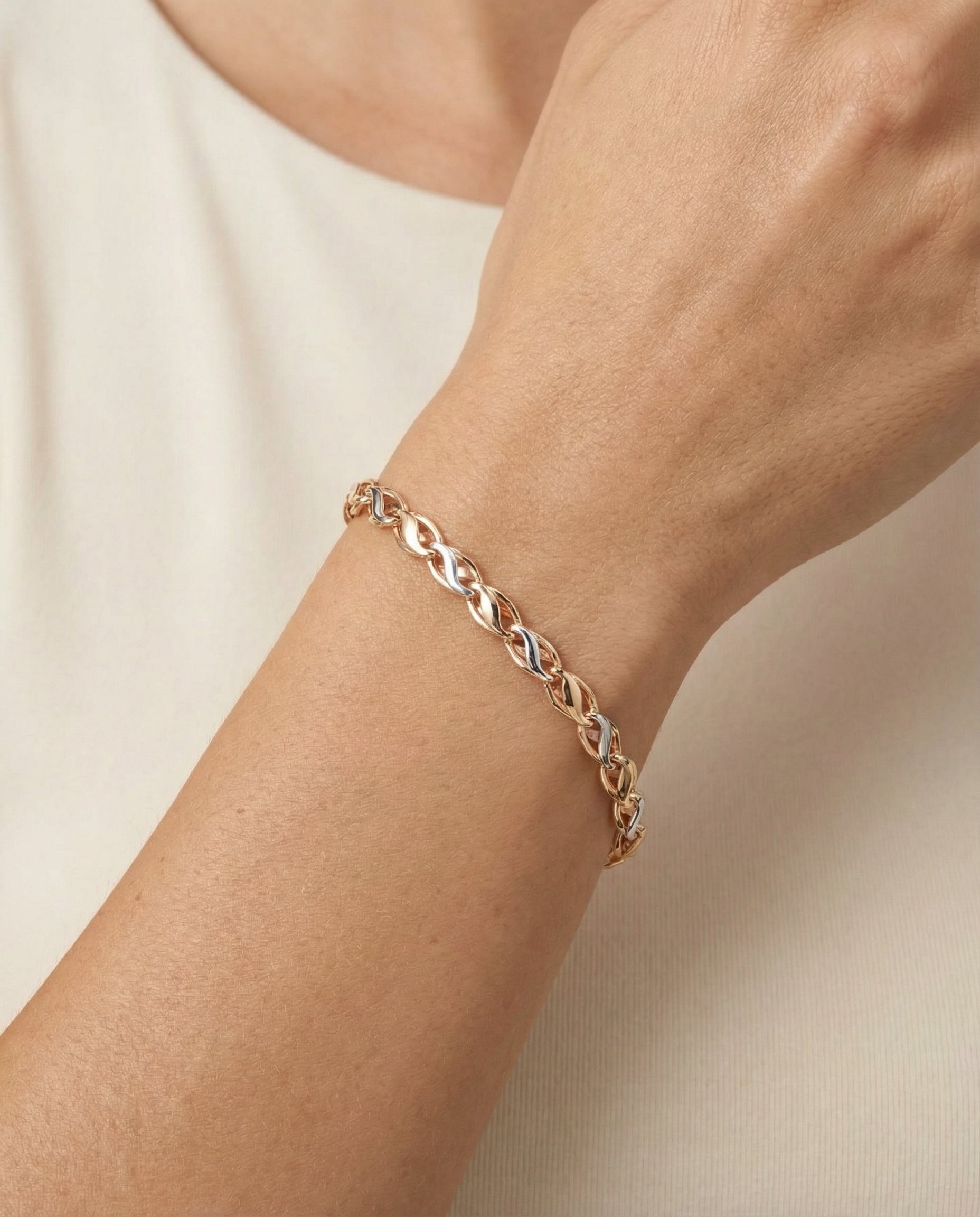 Armbånd i 14K hvidguld og rosaguld, 19 cm, 3.4 g